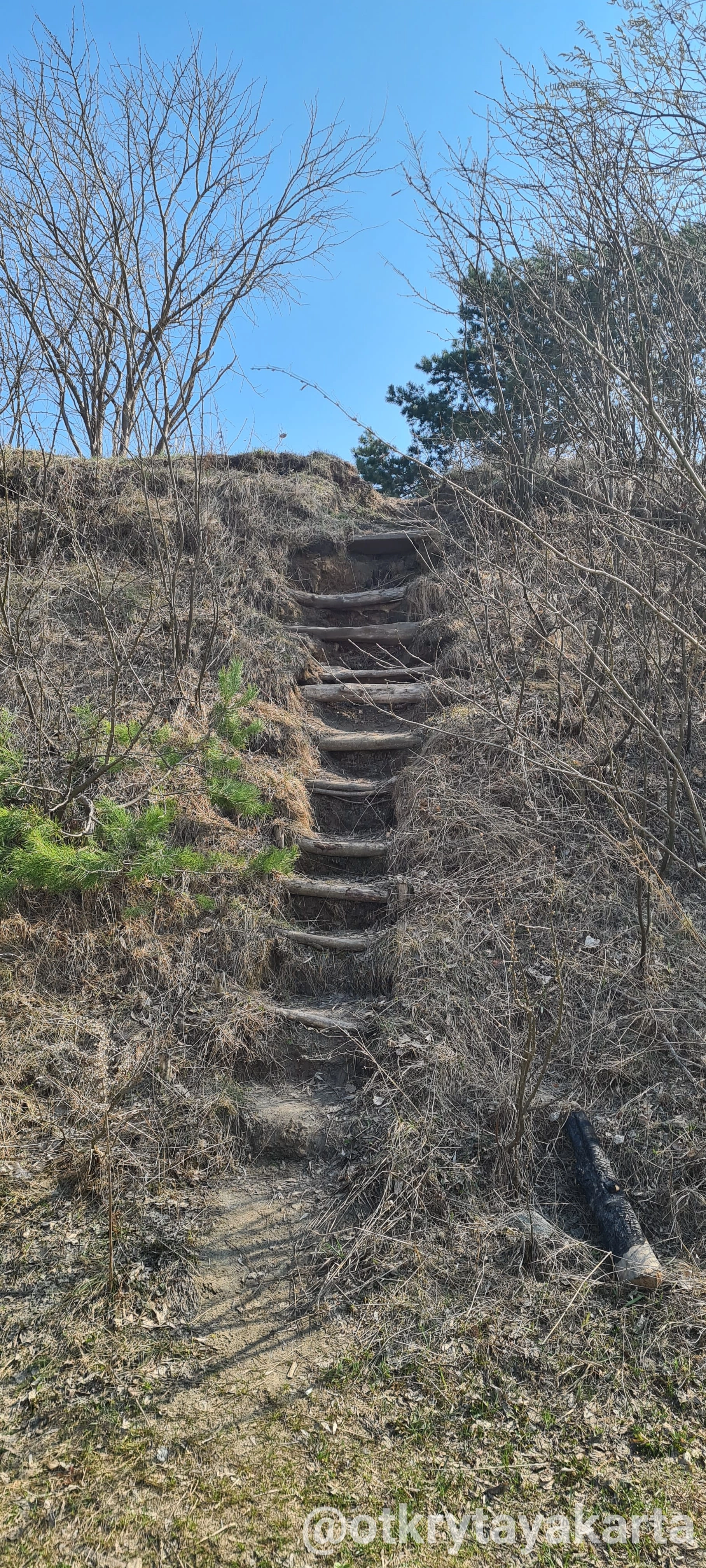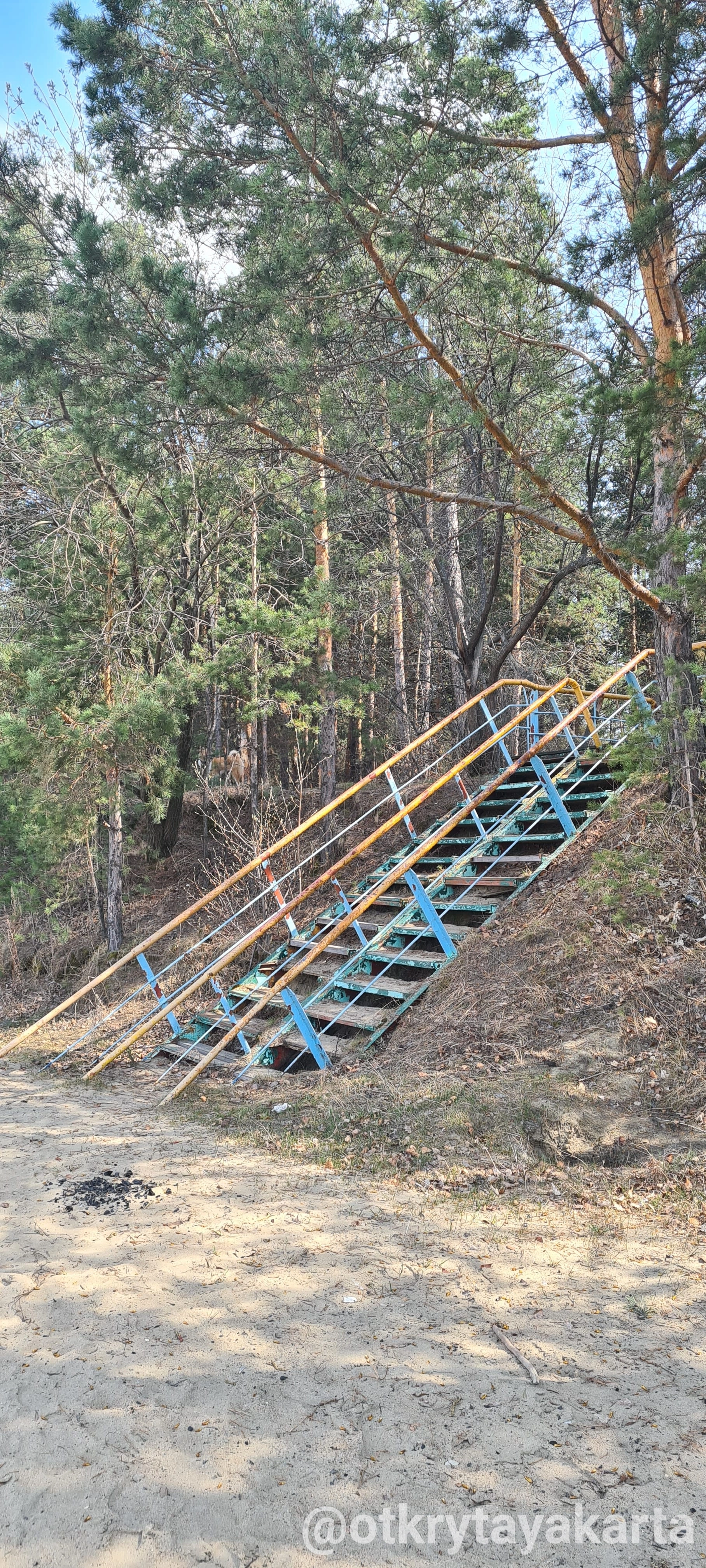 К воде ведут разные лестницы. Одна металлическая, остальные —самодельные ступени в почве. Судя по недавно установленному знаку, Бердская коса стала частью Обской тропы.