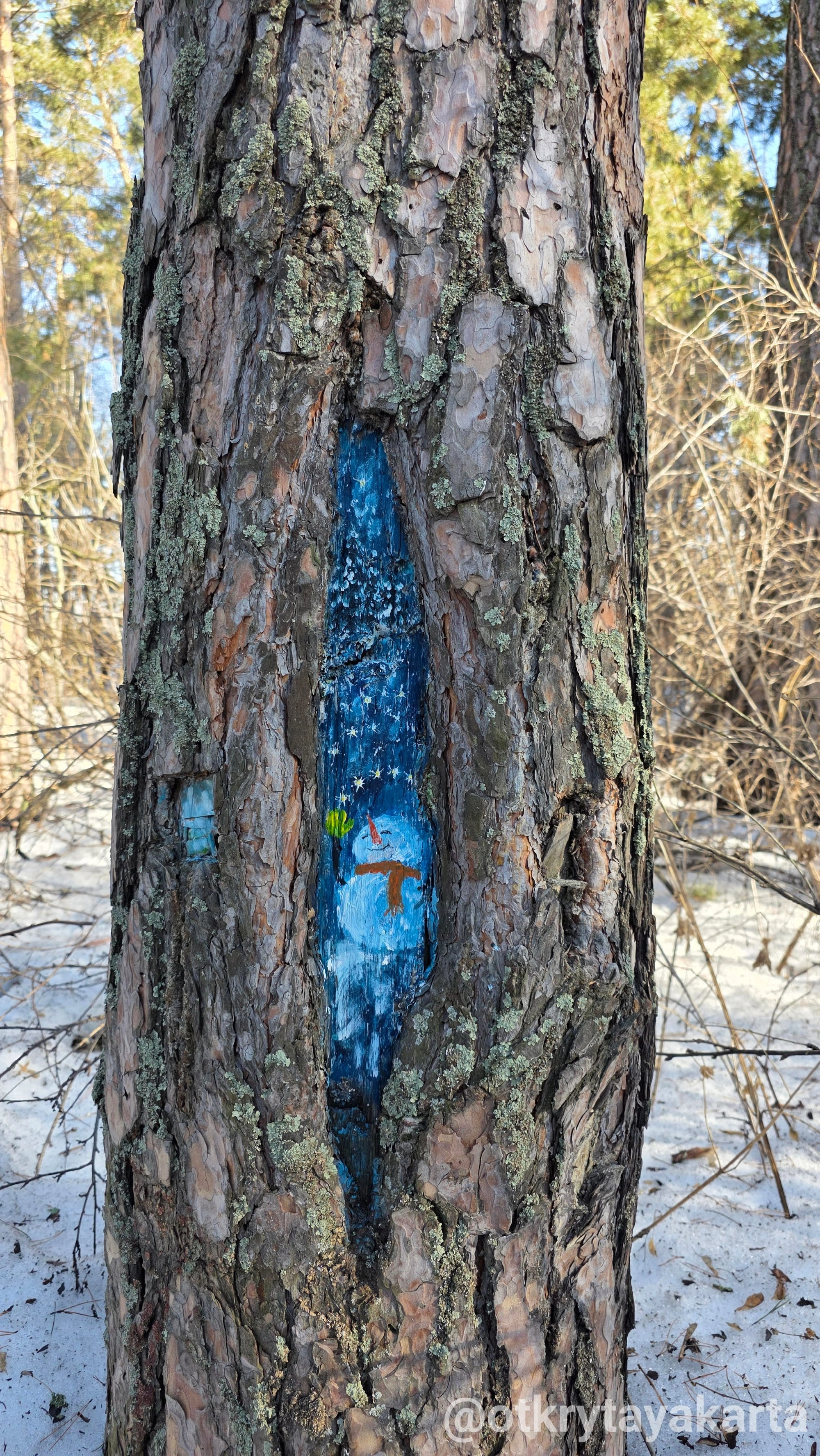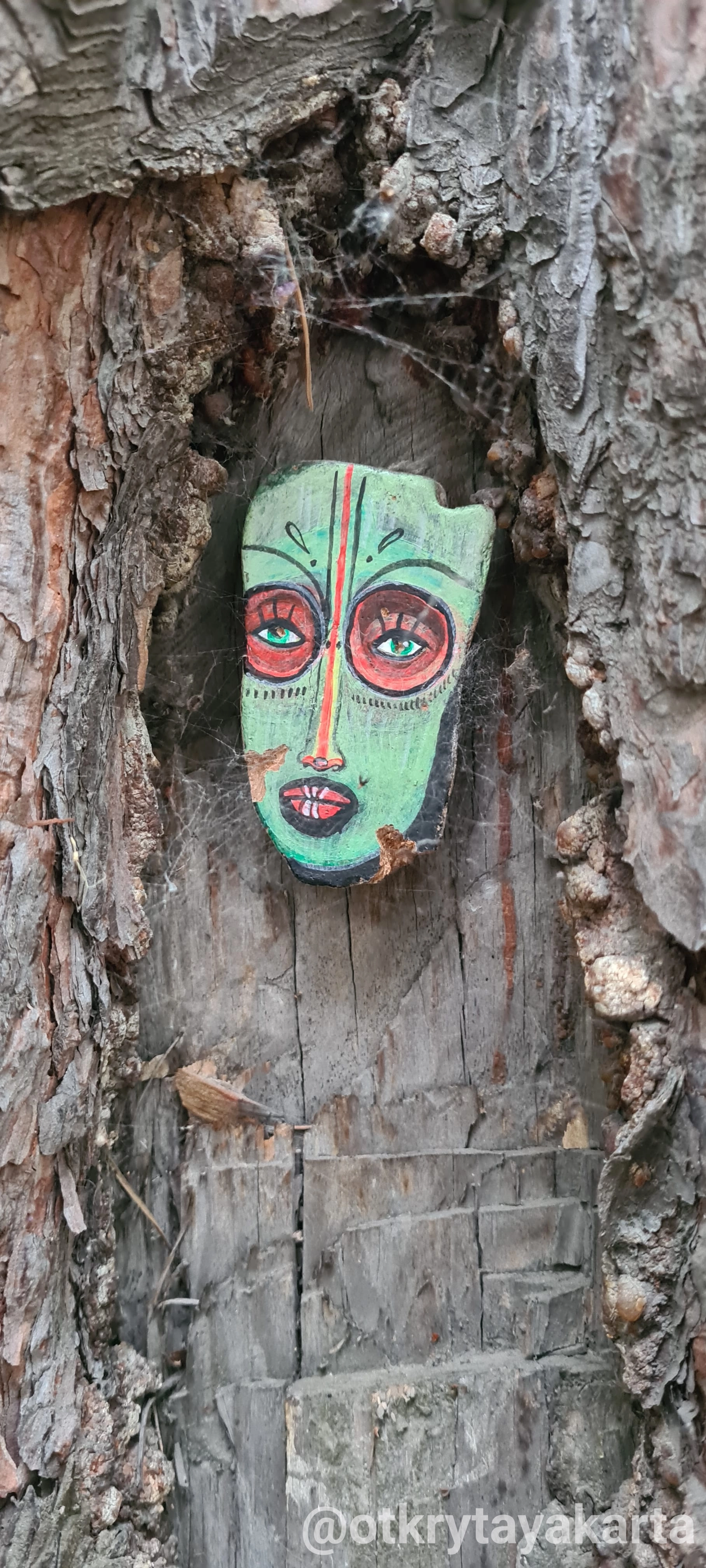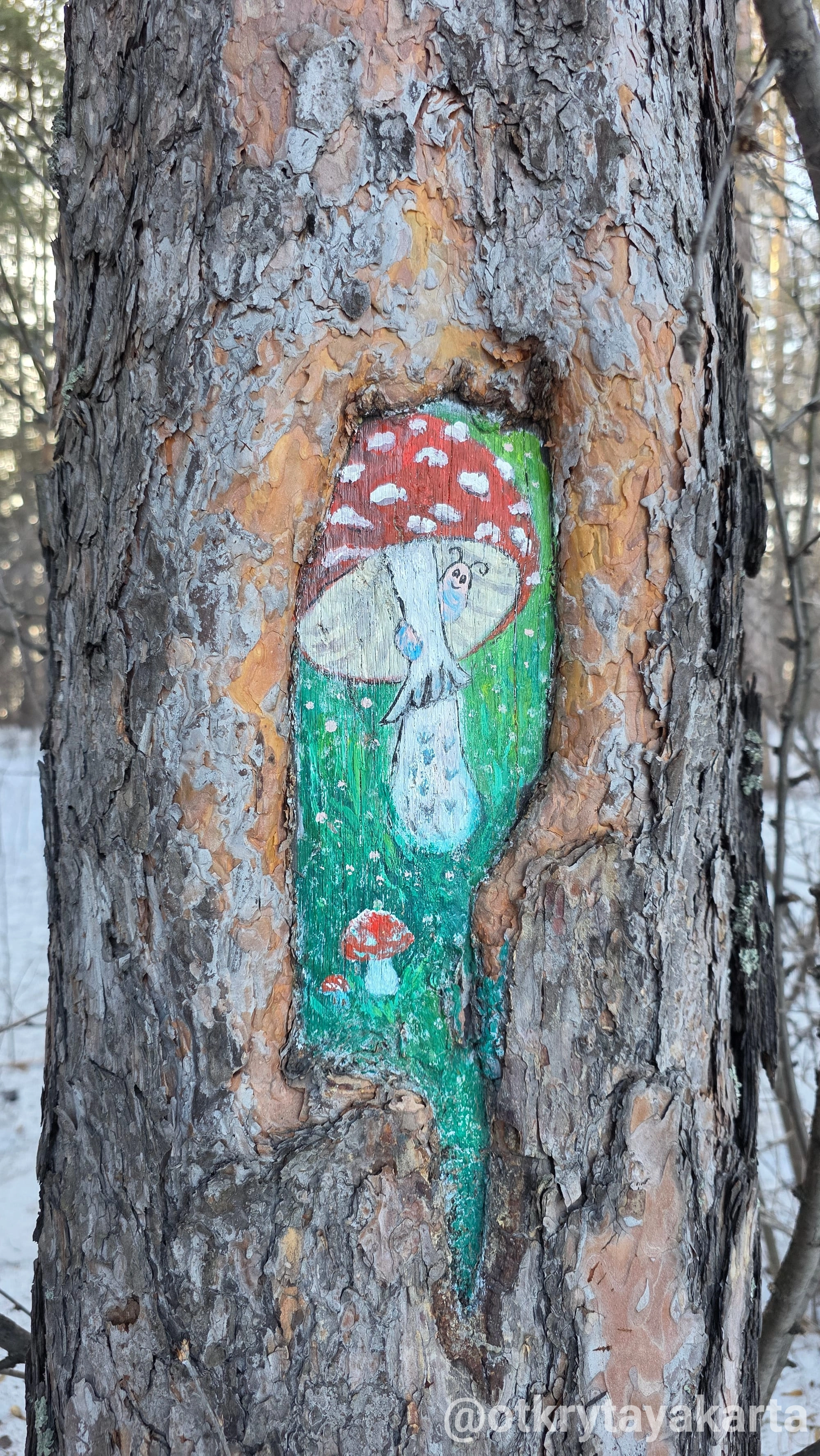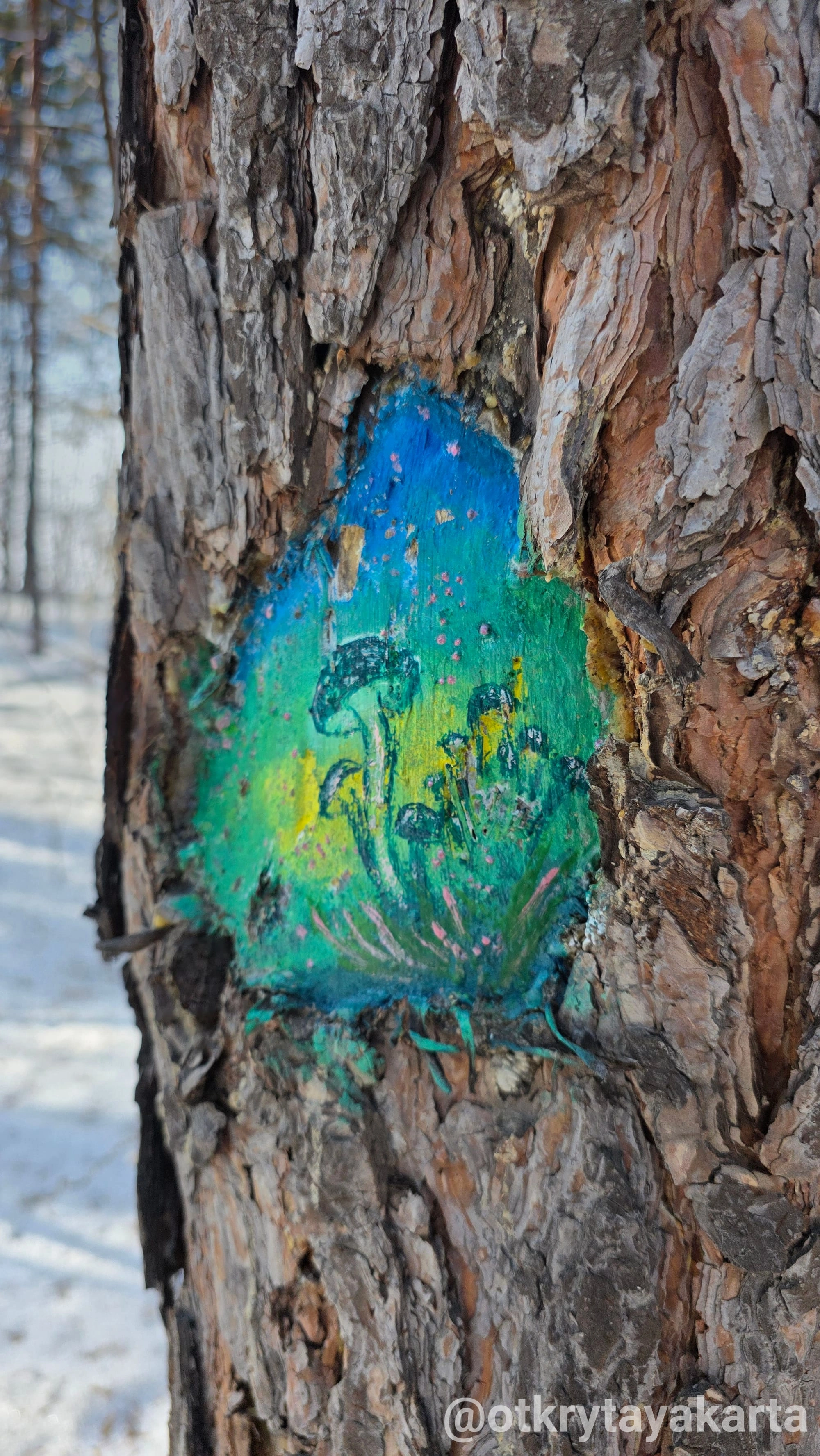Встречаются рисунки и поделки на деревьях. Много разных кормушек для птиц и белок.