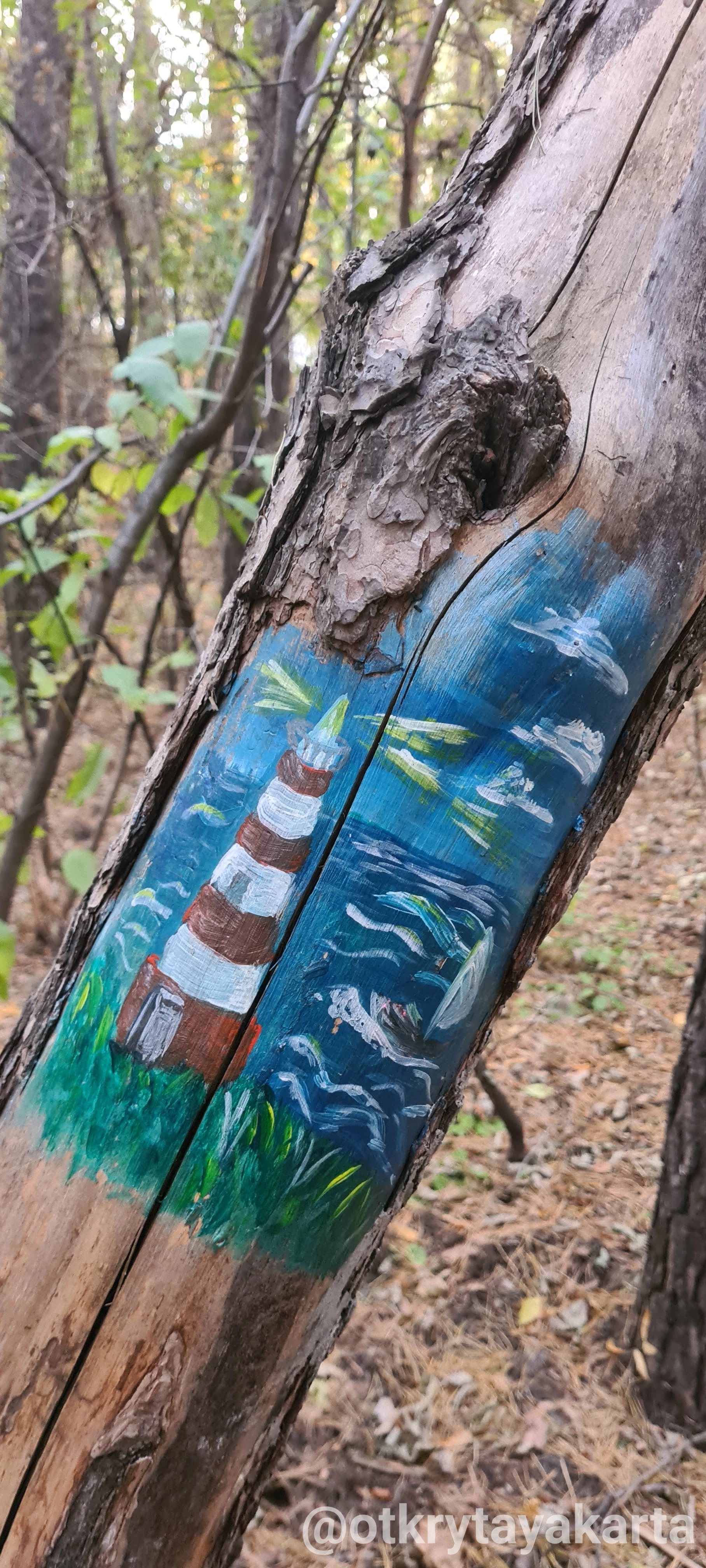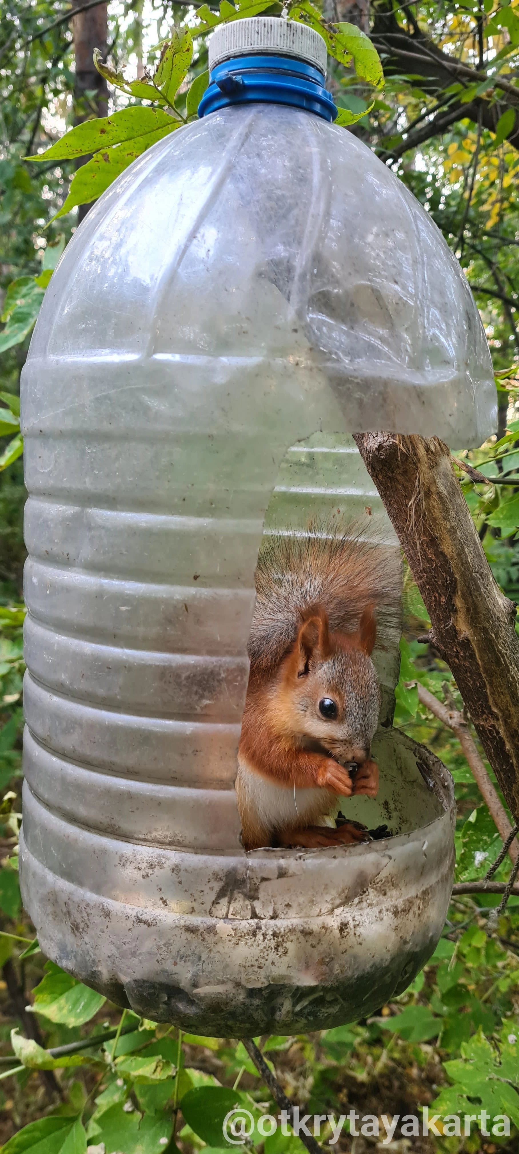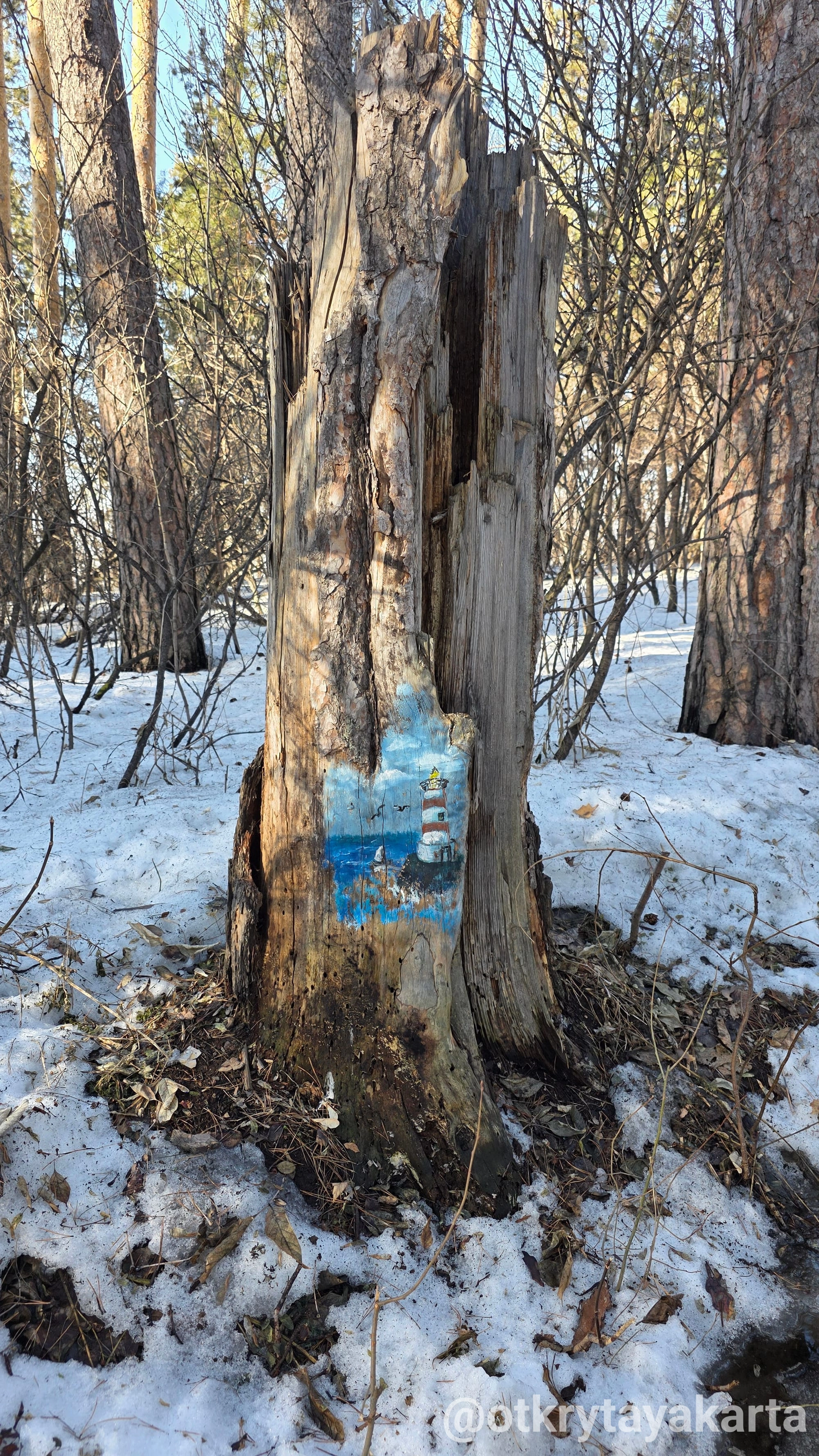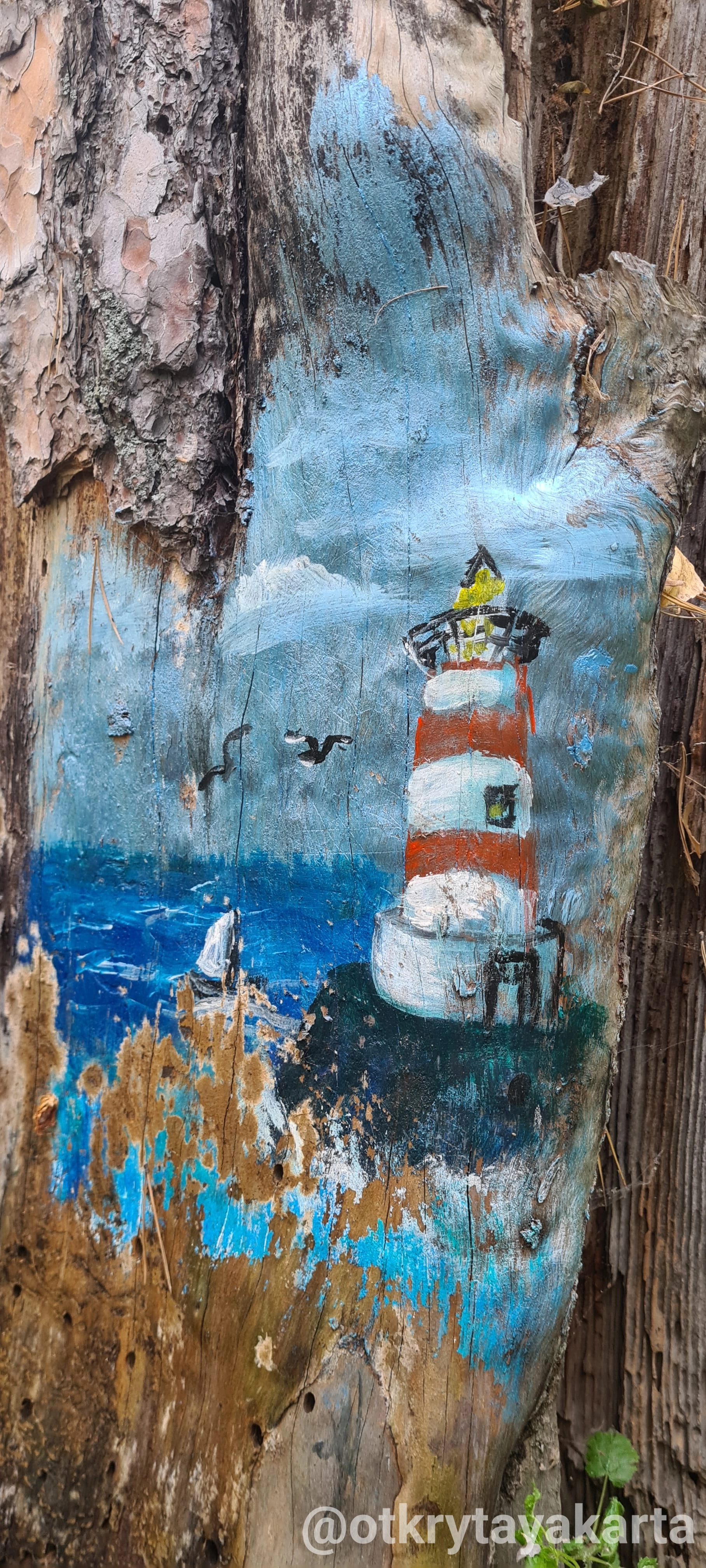 Встречаются рисунки и поделки на деревьях. Много разных кормушек для птиц и белок.