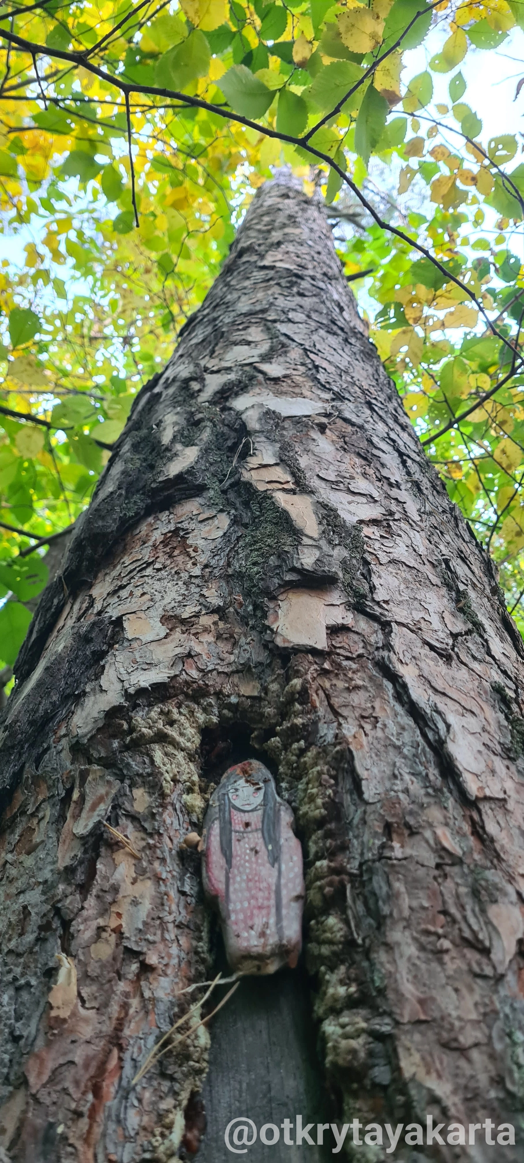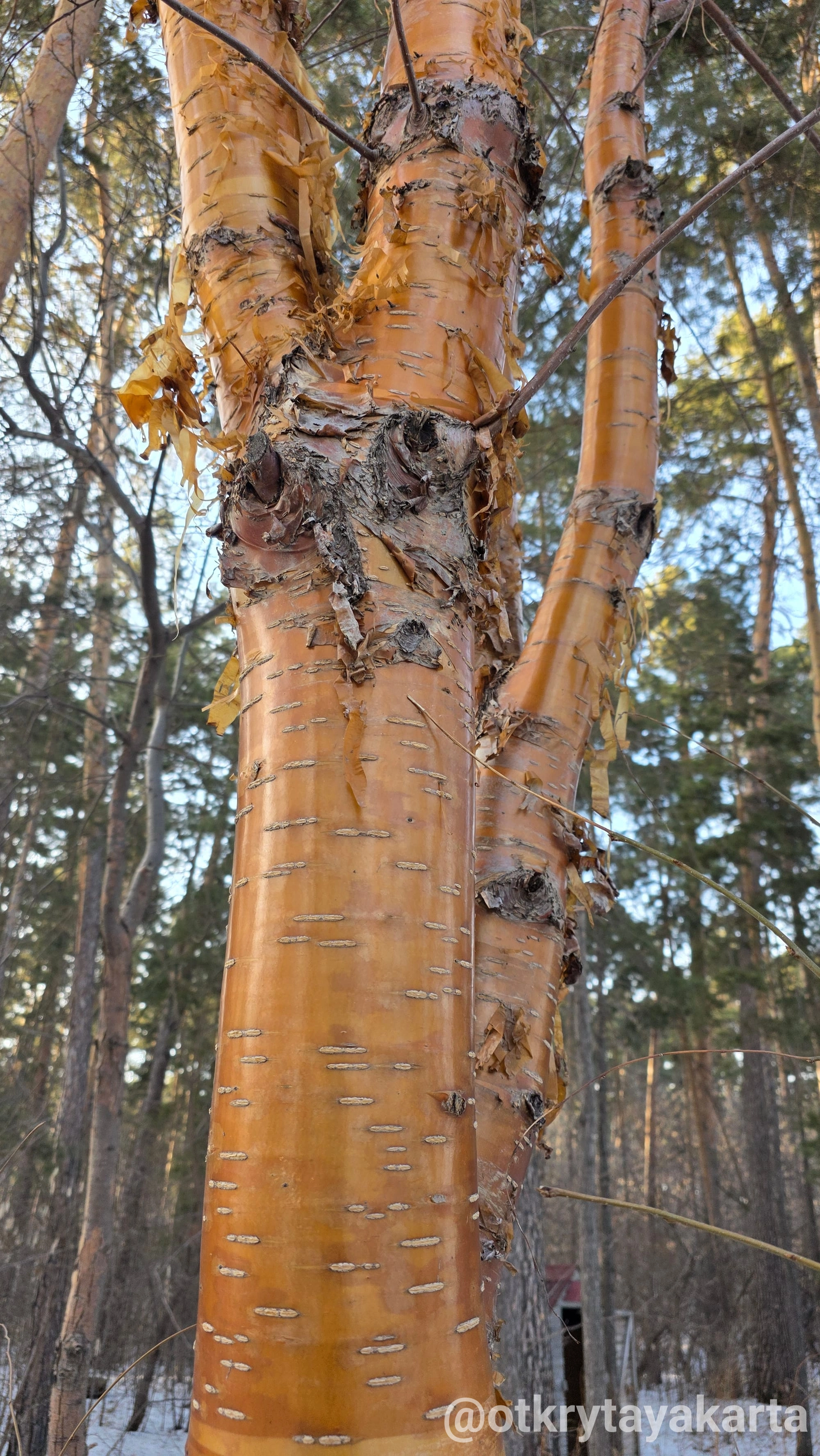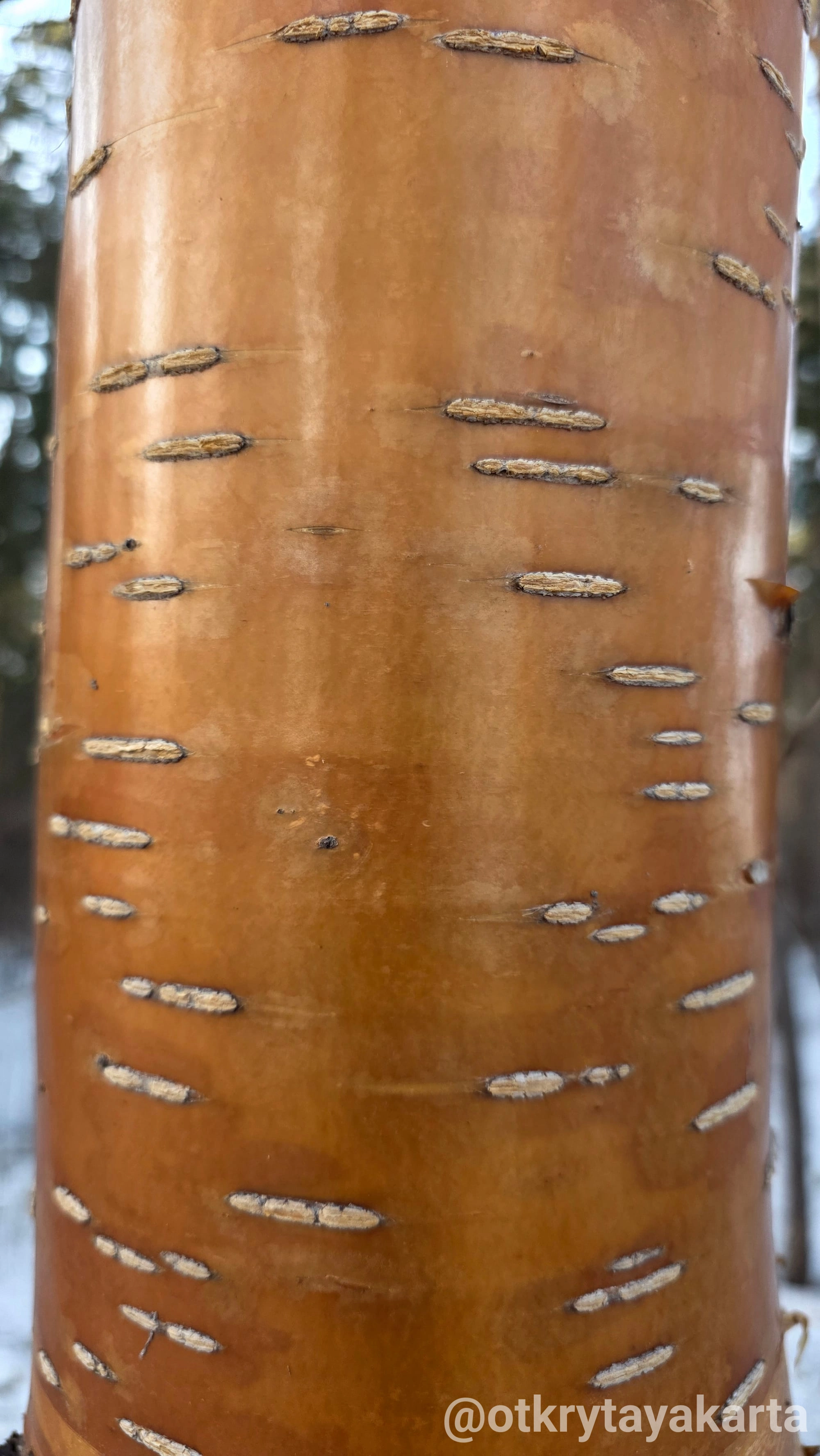 Возле места, где когда-то располагалась будка охранника, растёт вот такая чудесная берёза, золотая. На ощупь она совсем не как дерево.