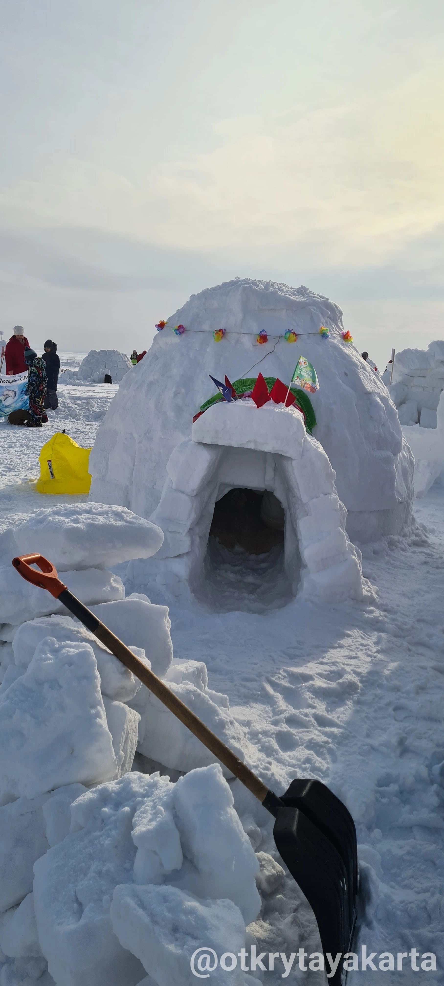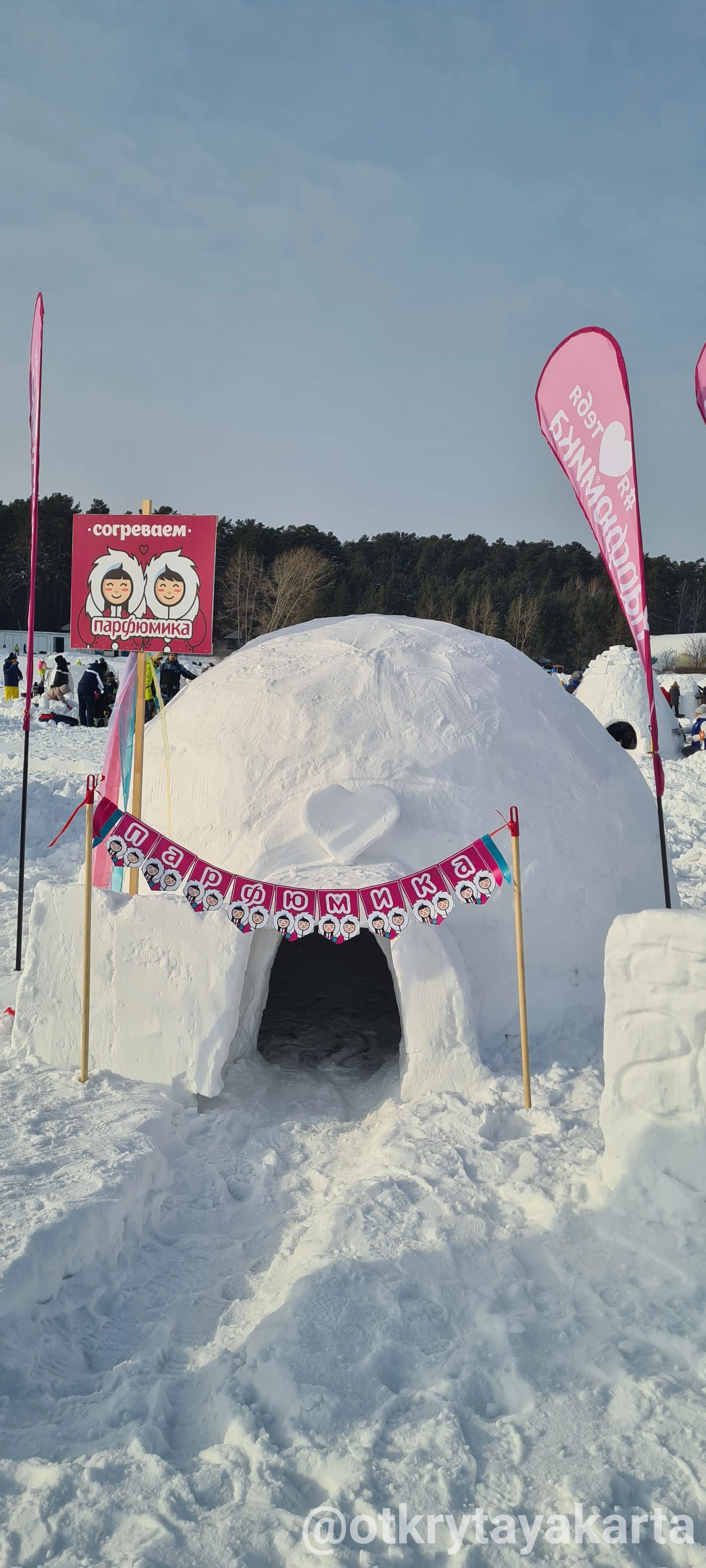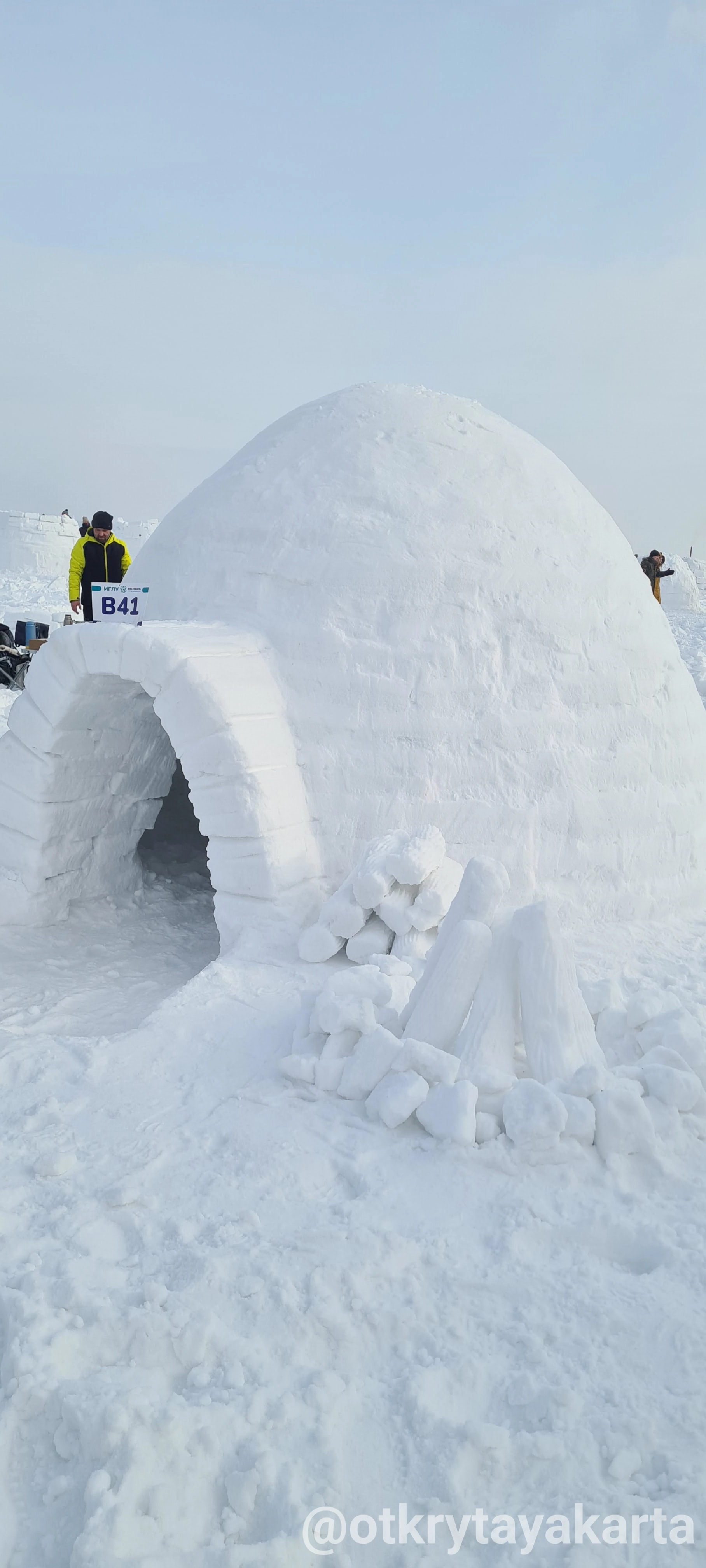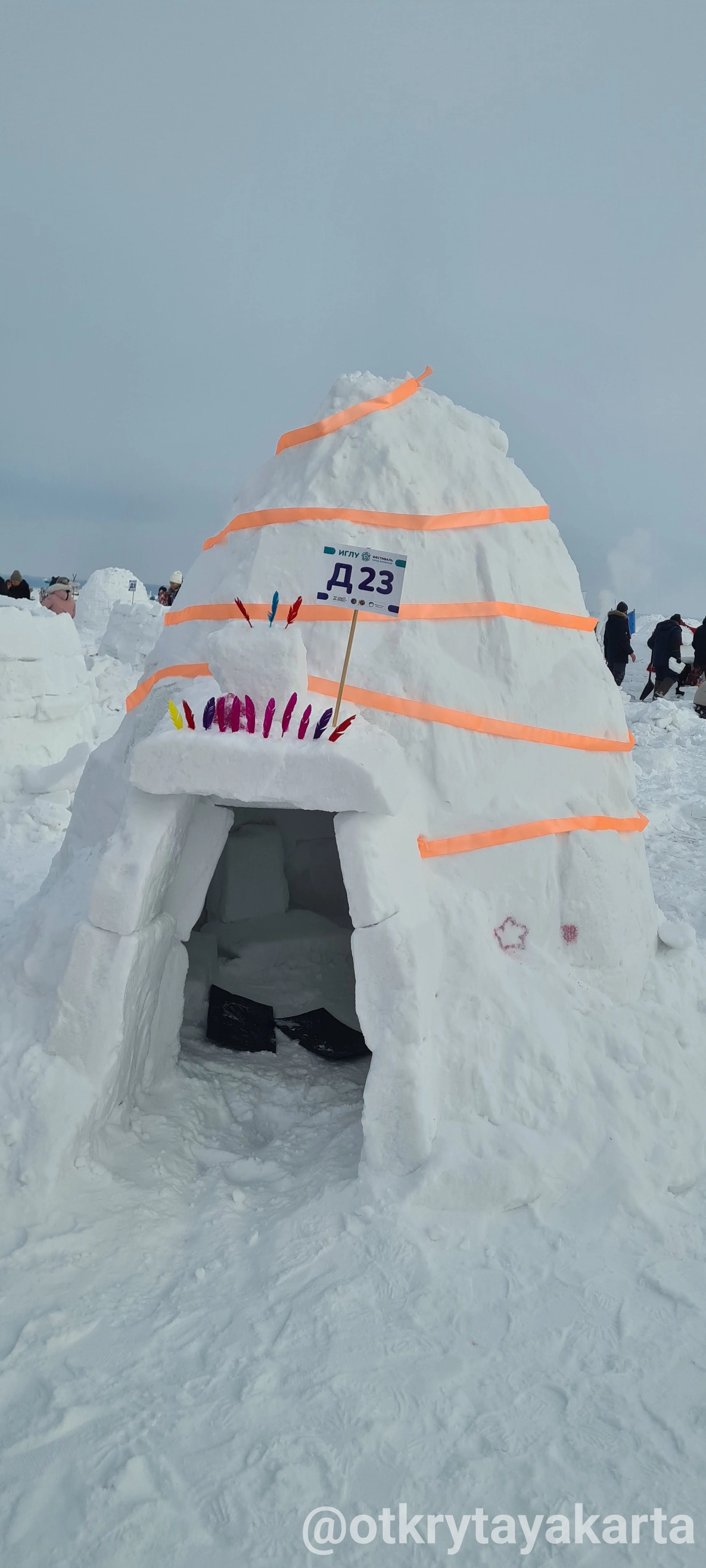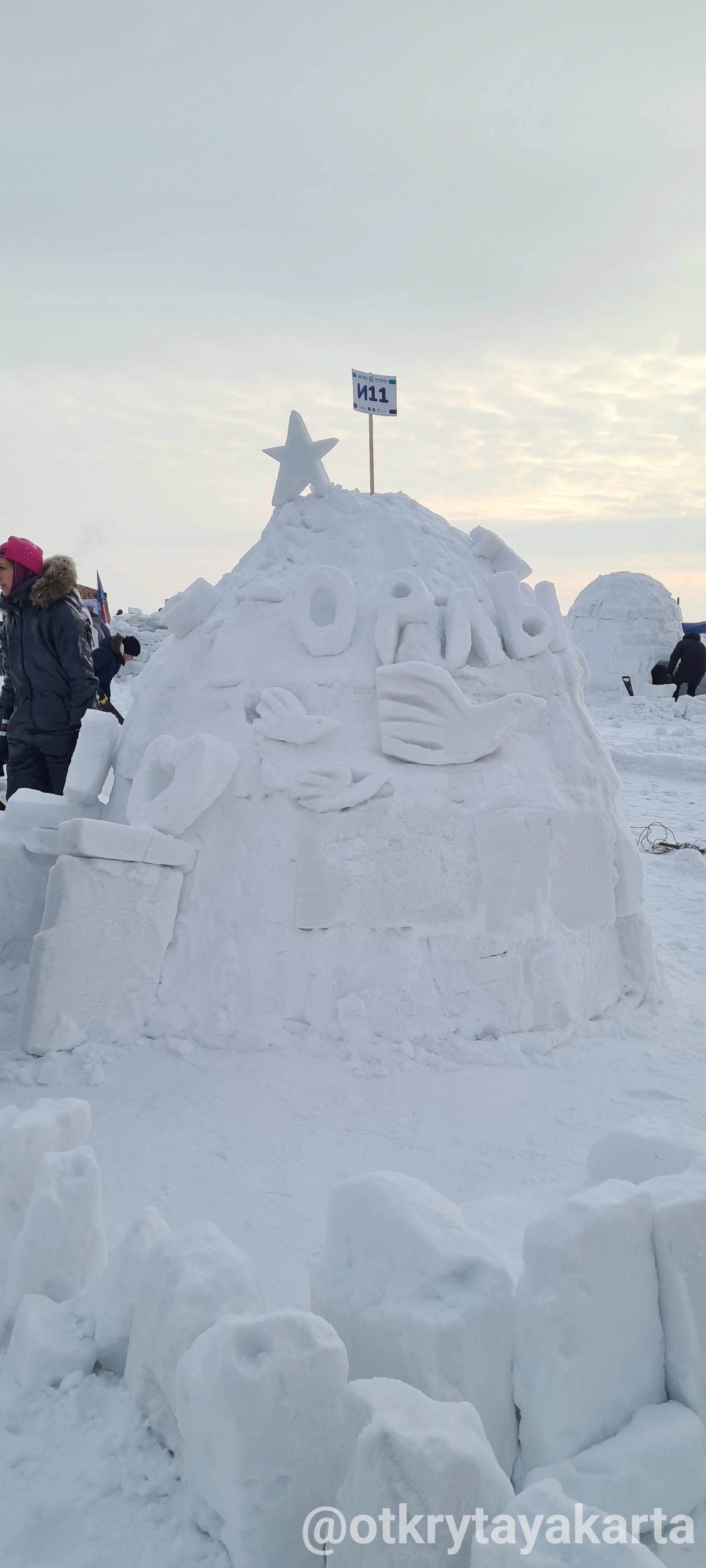 В 2024 году было очень холодно и ветрено, многие участники ( и мы в том числе) отказались от участия в снежной стройке. Но как не приехать и не посмотреть на смельчаков и их творения?