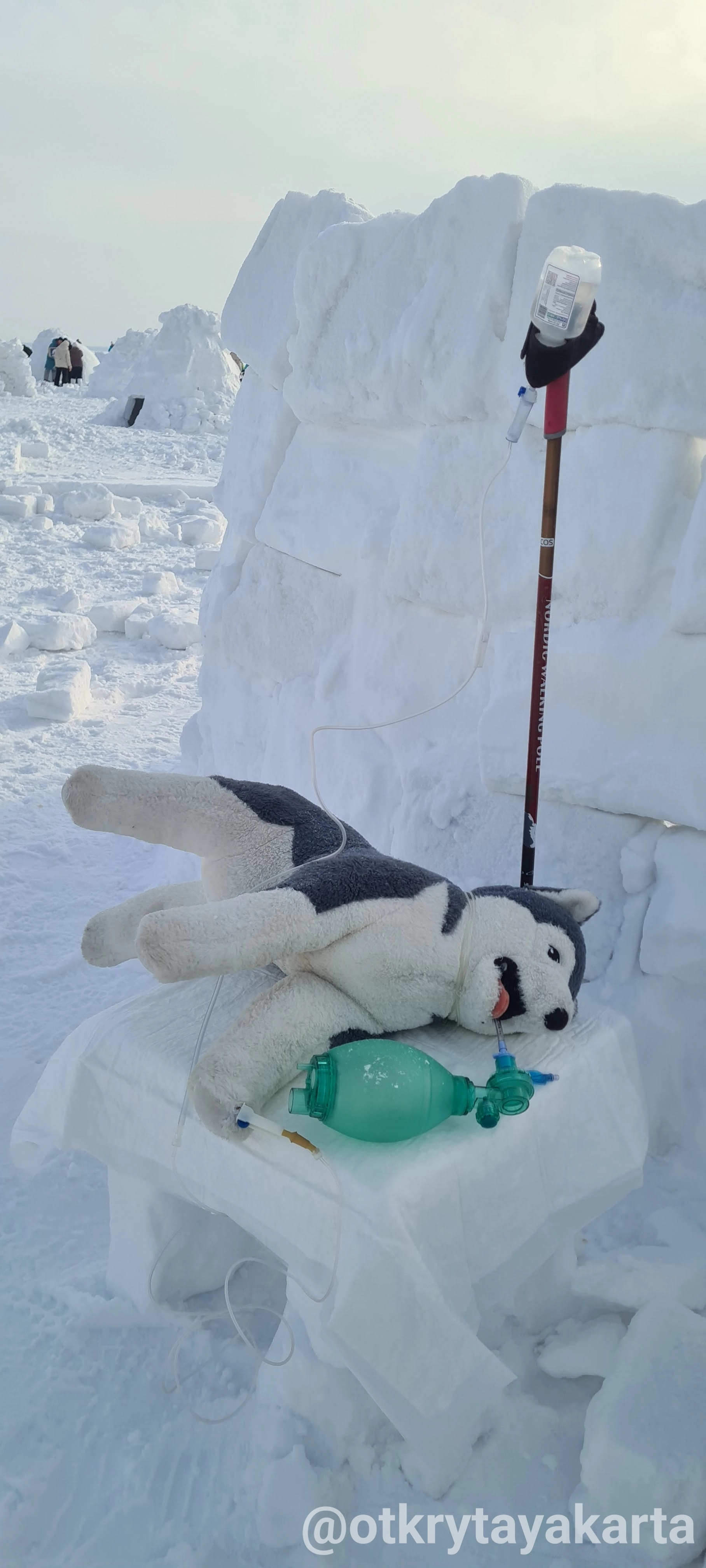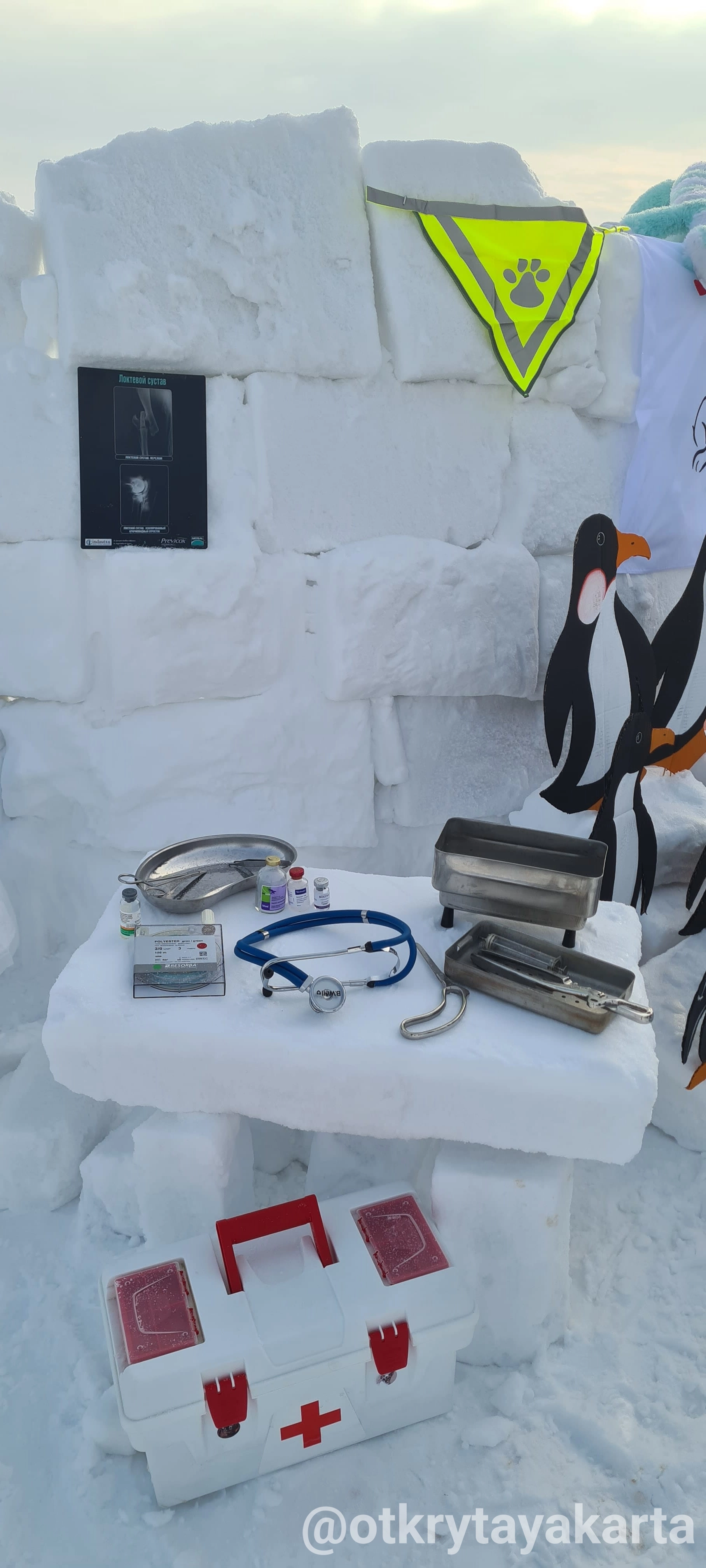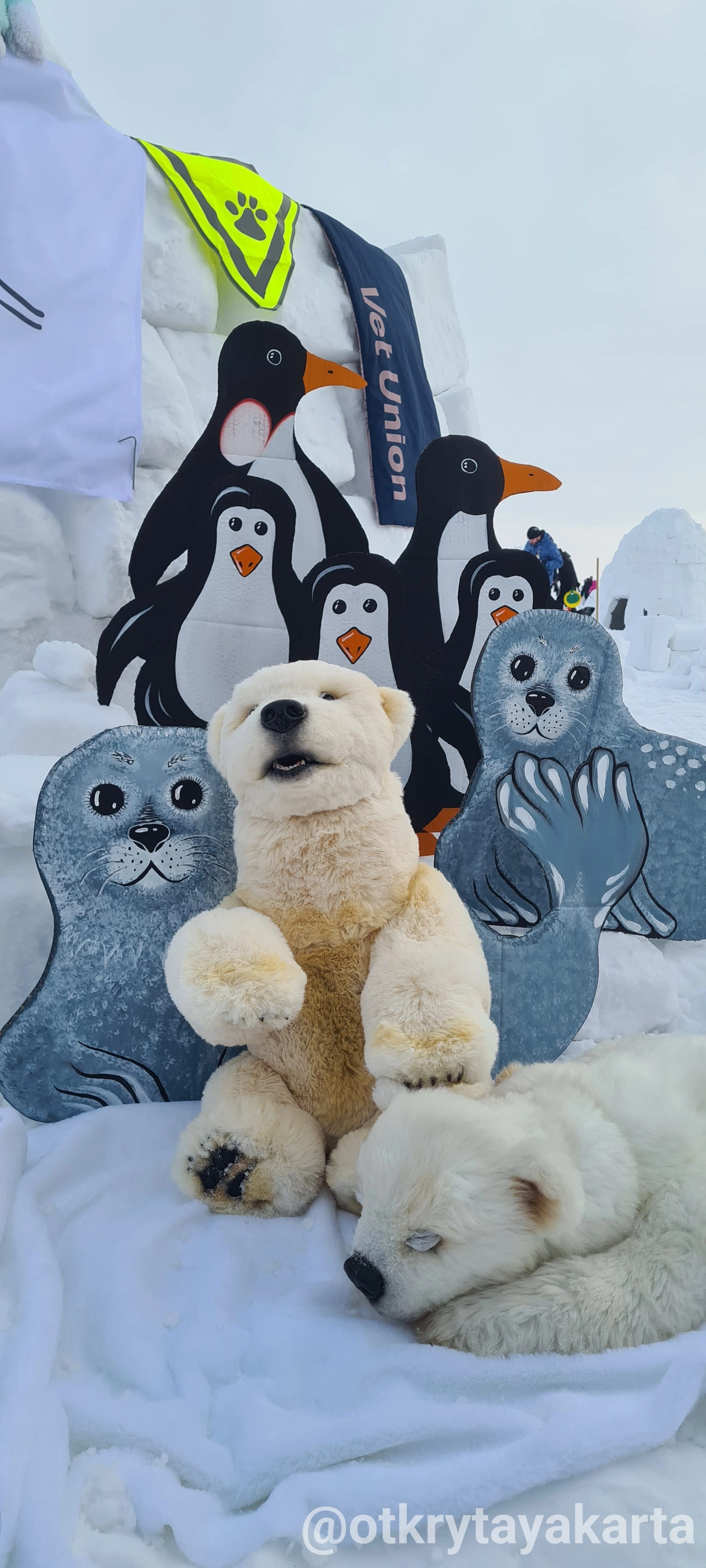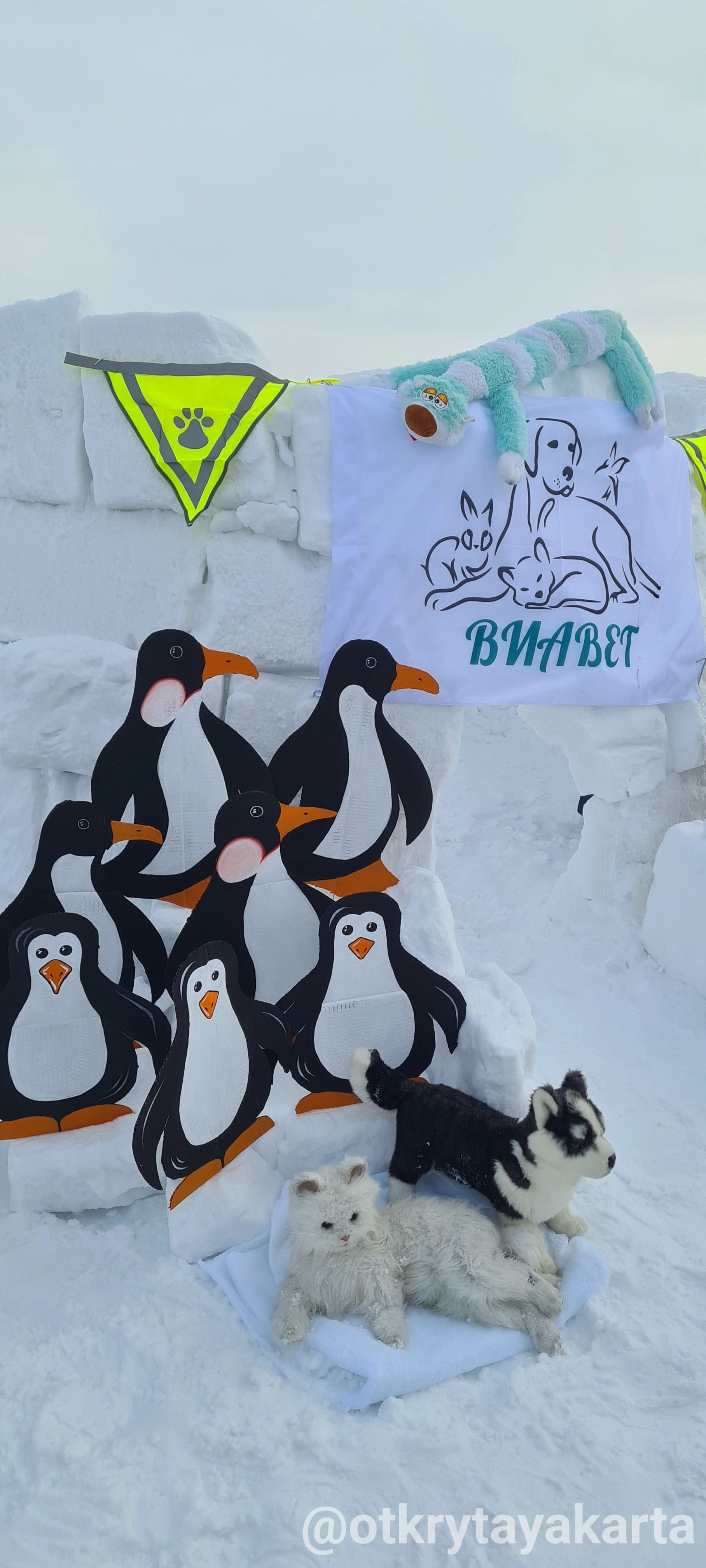 Очень понравилось оформление иглу у ветеринарной клиники. У них ещё был игрушечный кот, который периодически шевелился сам по себе.