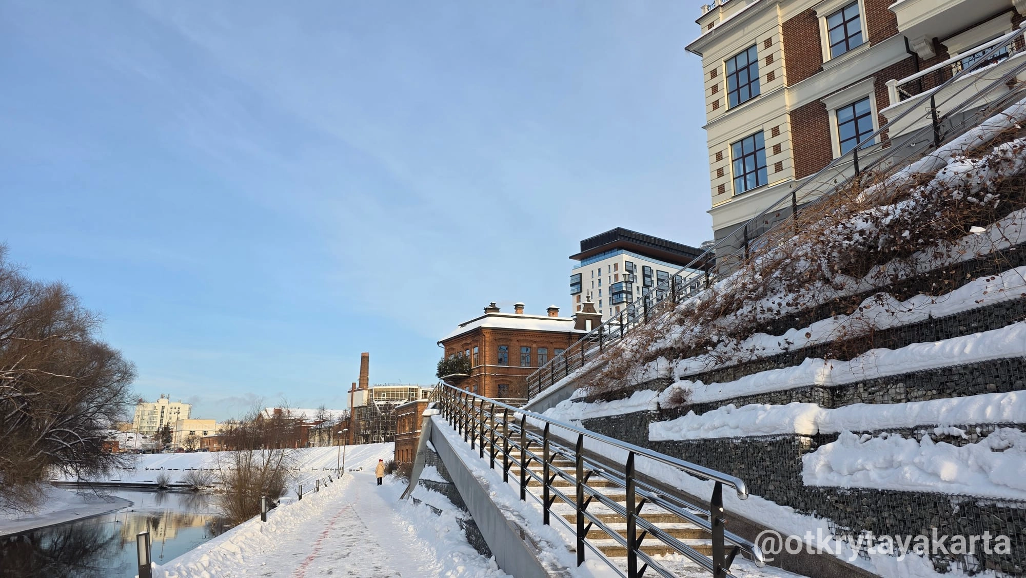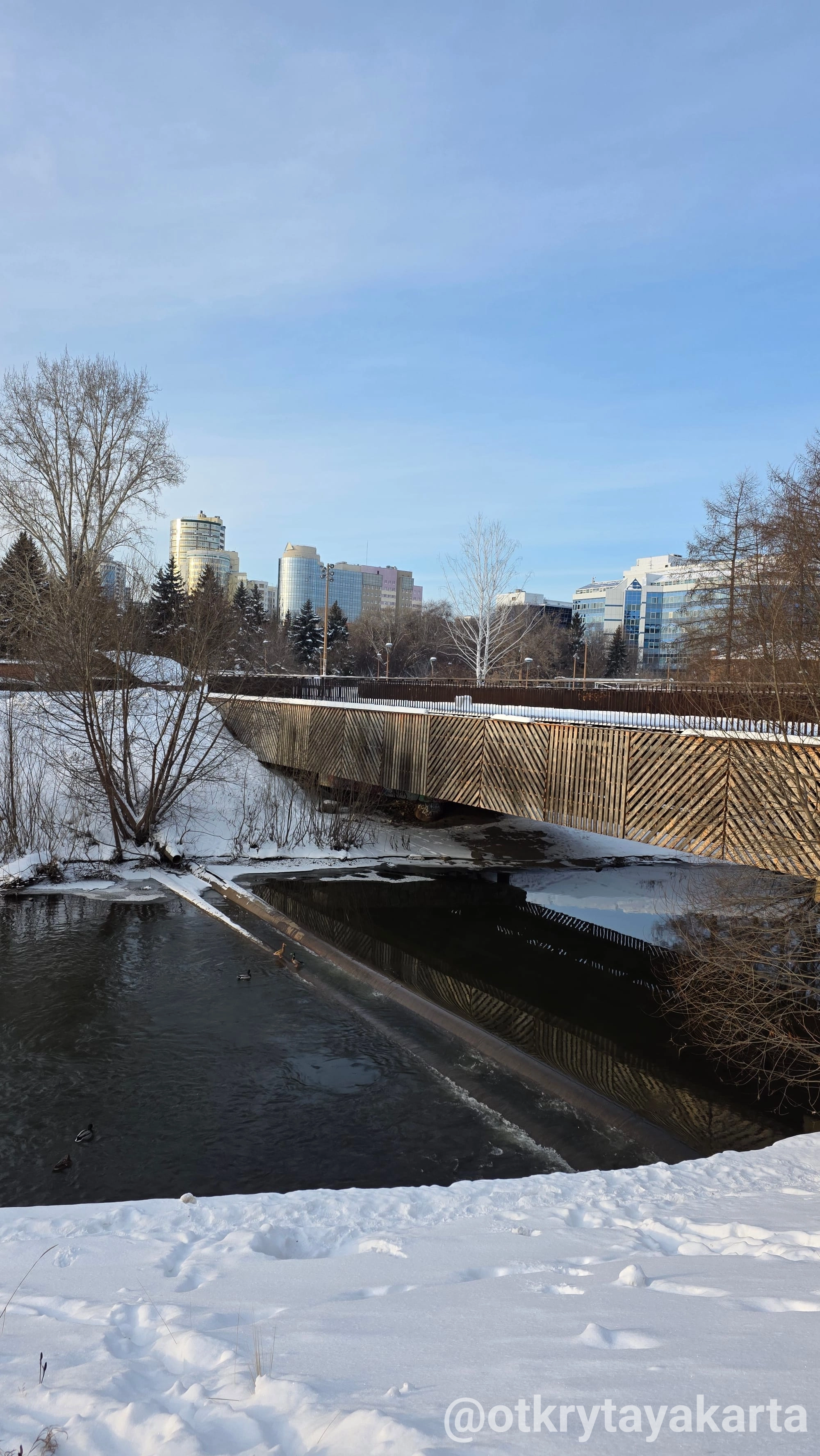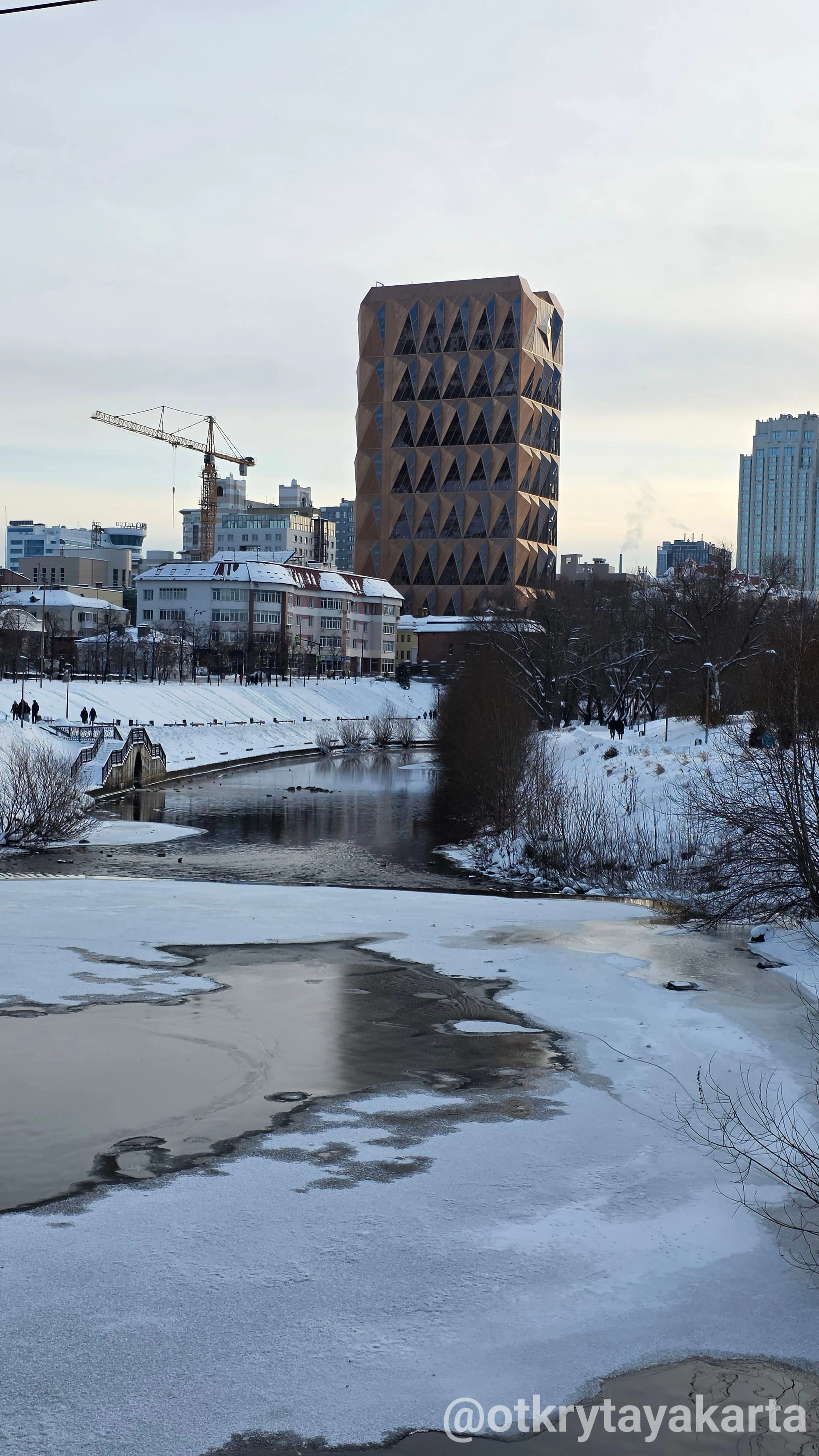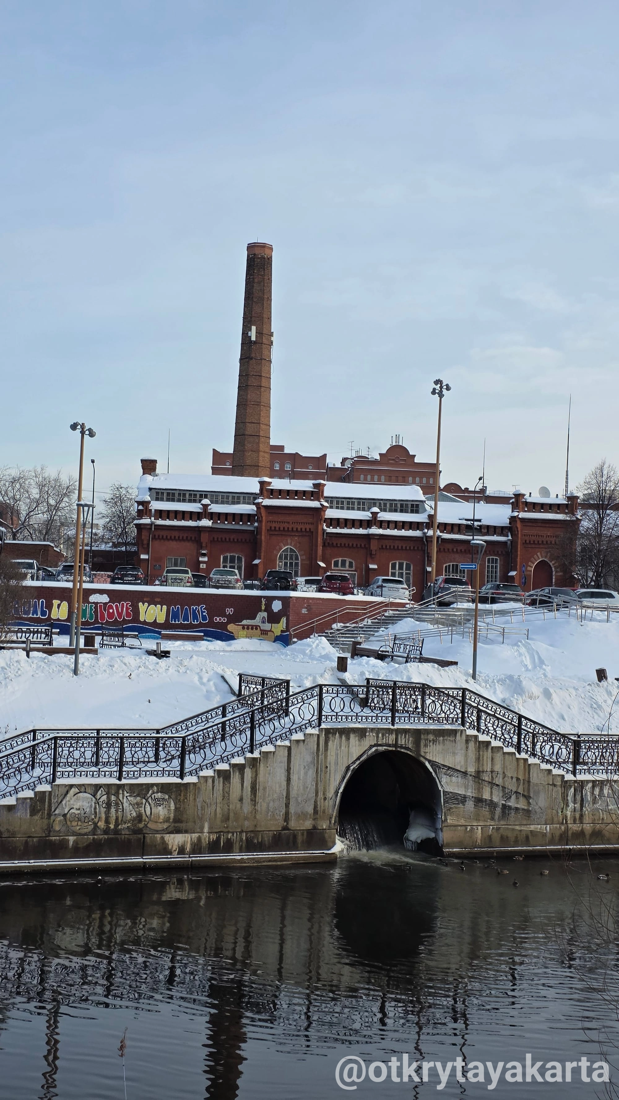 Архитектура вдоль реки очень разнообразная. Памятник клавиатуре лучше изучать летом. Для фото пришлось его откапывать😅
