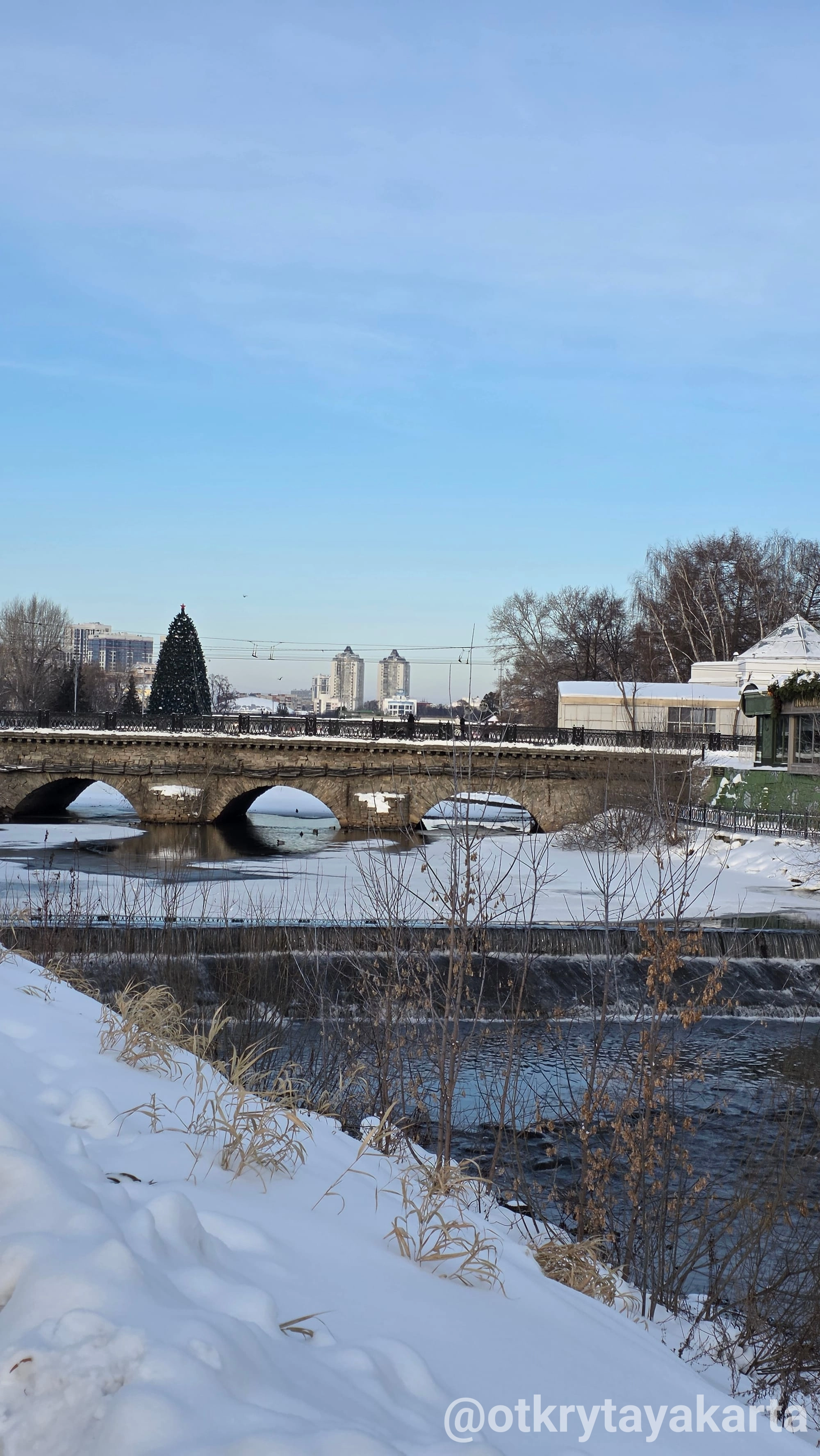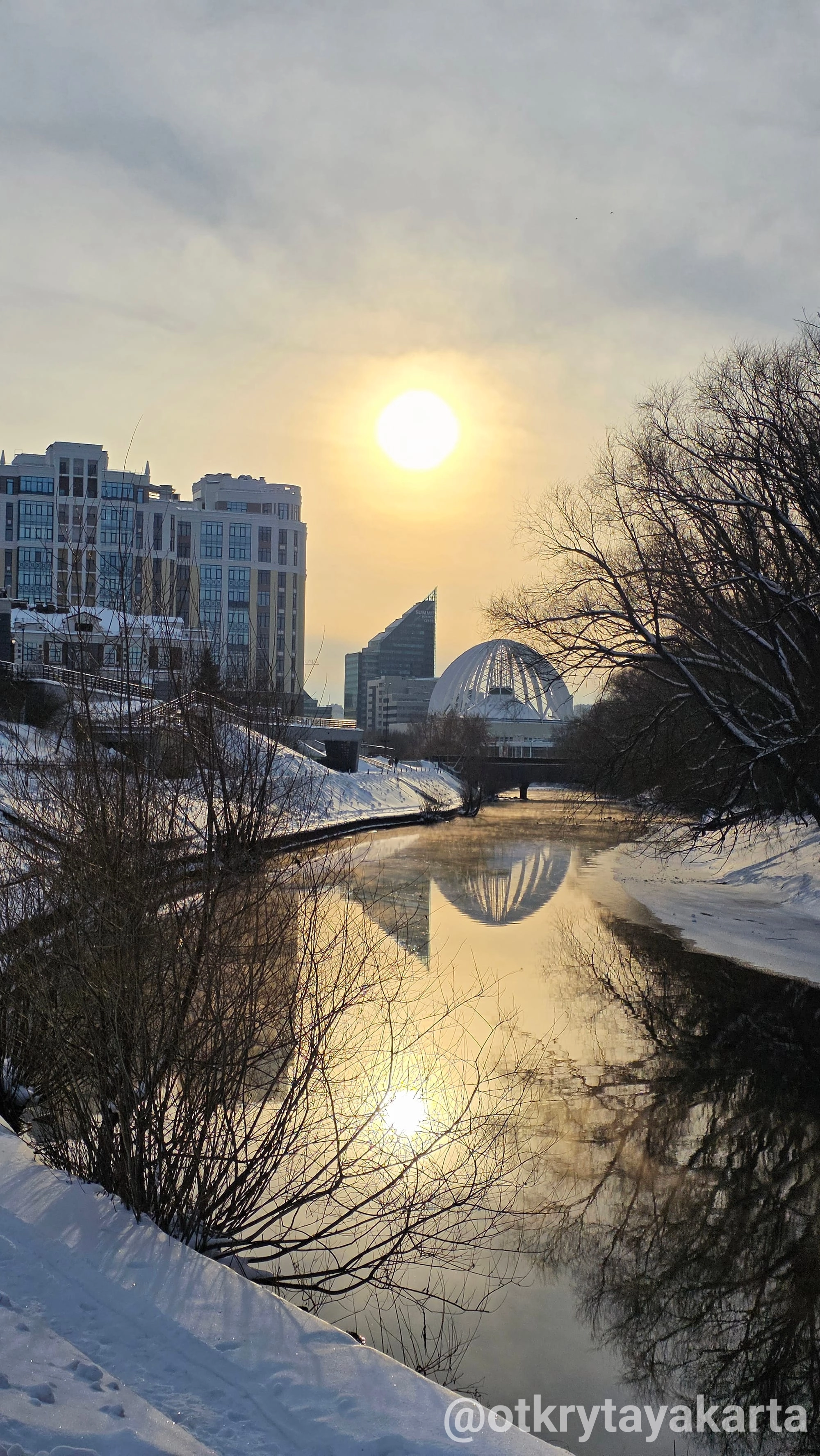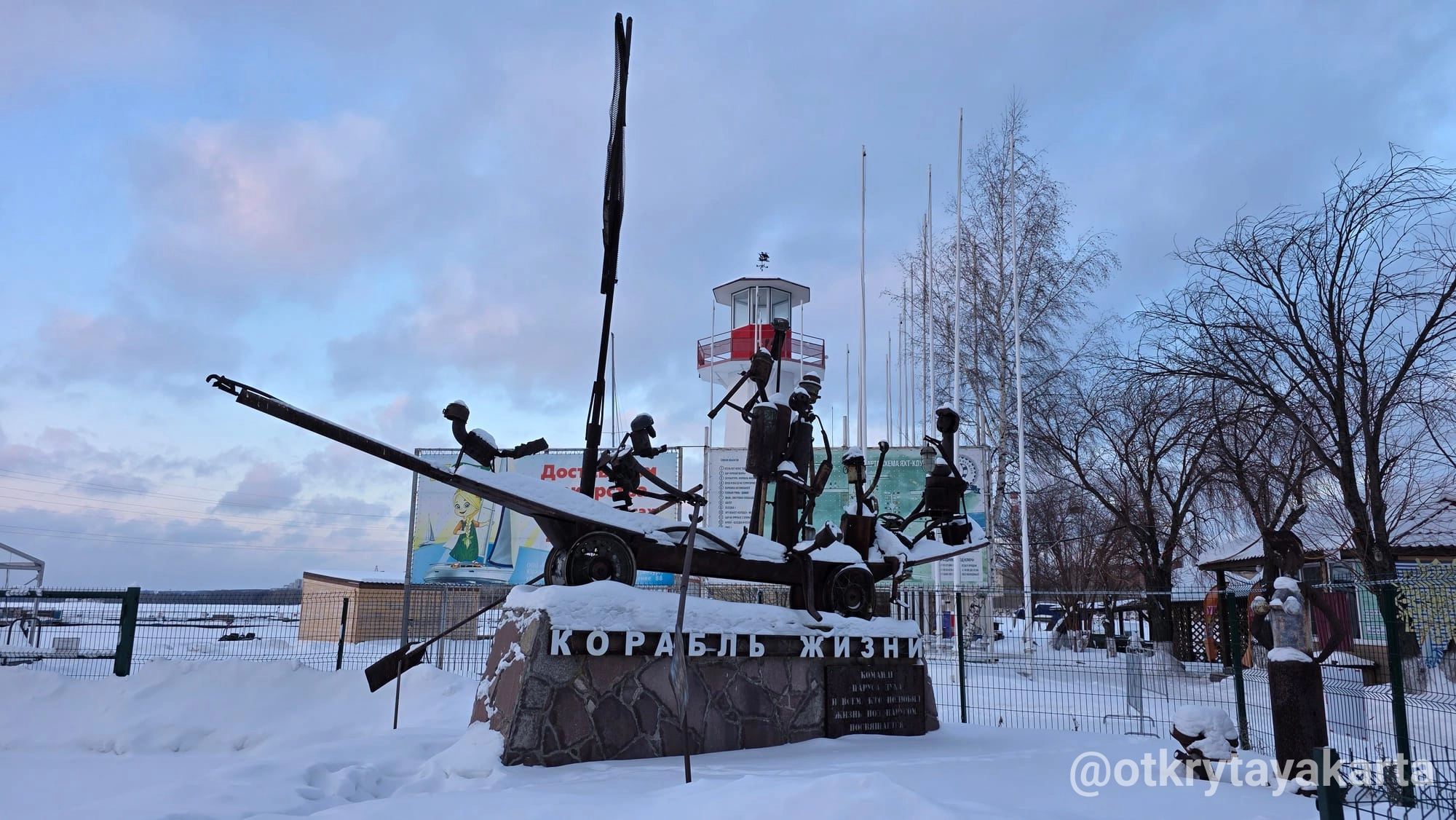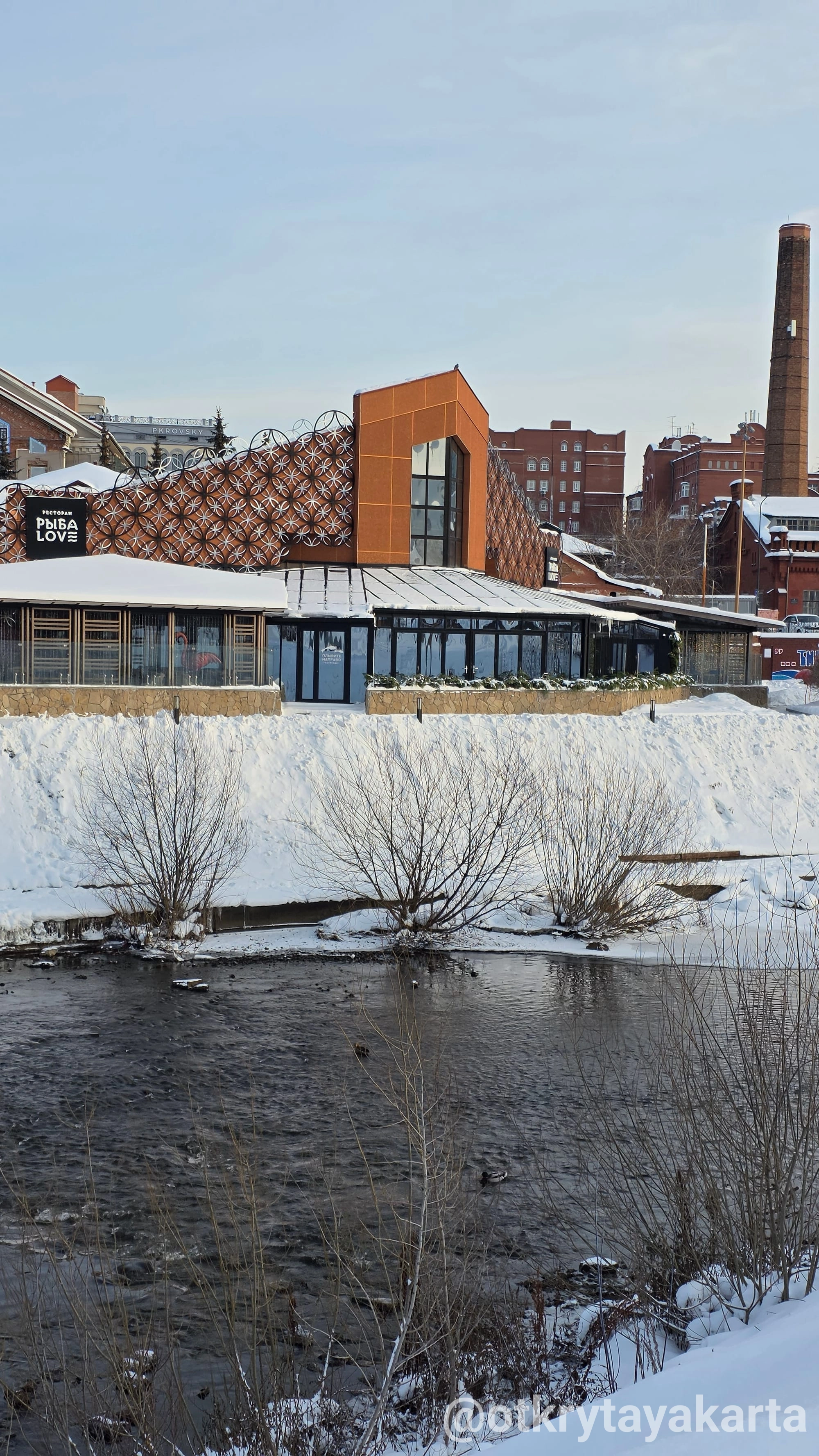 Архитектура вдоль реки очень разнообразная. Памятник клавиатуре лучше изучать летом. Для фото пришлось его откапывать😅