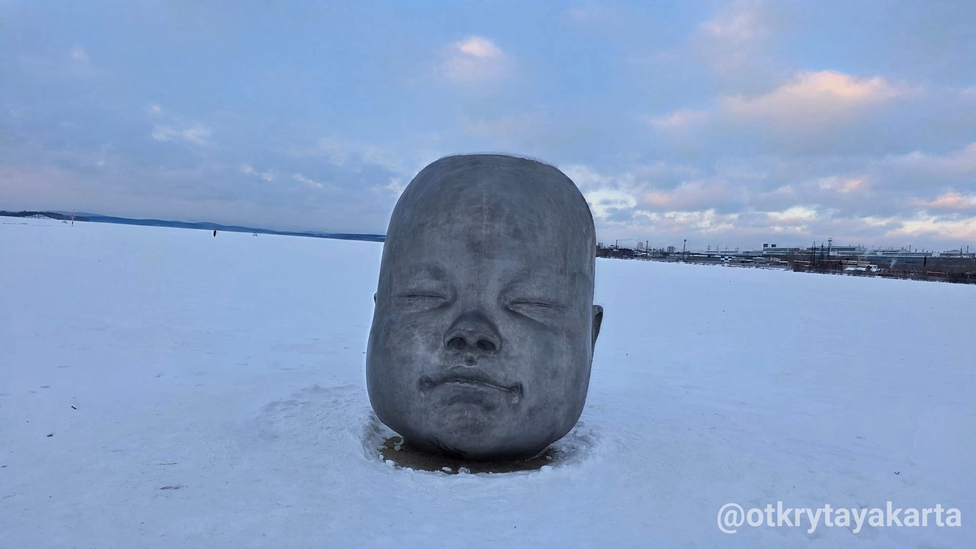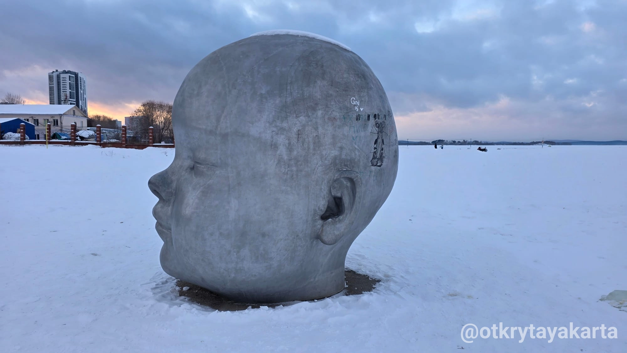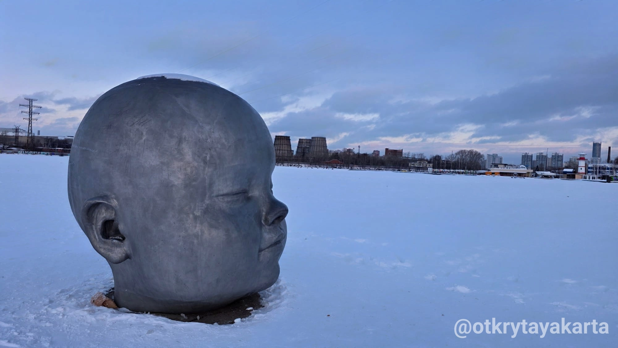 Рядом с яхт-клубом спит гигантский ребёнок — один из самых необычных и философских арт-объектов Екатеринбурга. «Индустриальный младенец», созданный художницами арт-группы LKKL Людмилой Калиниченко и Ксенией Лариной, — это трёхметровая голова, отлитая из переплавленного алюминия.