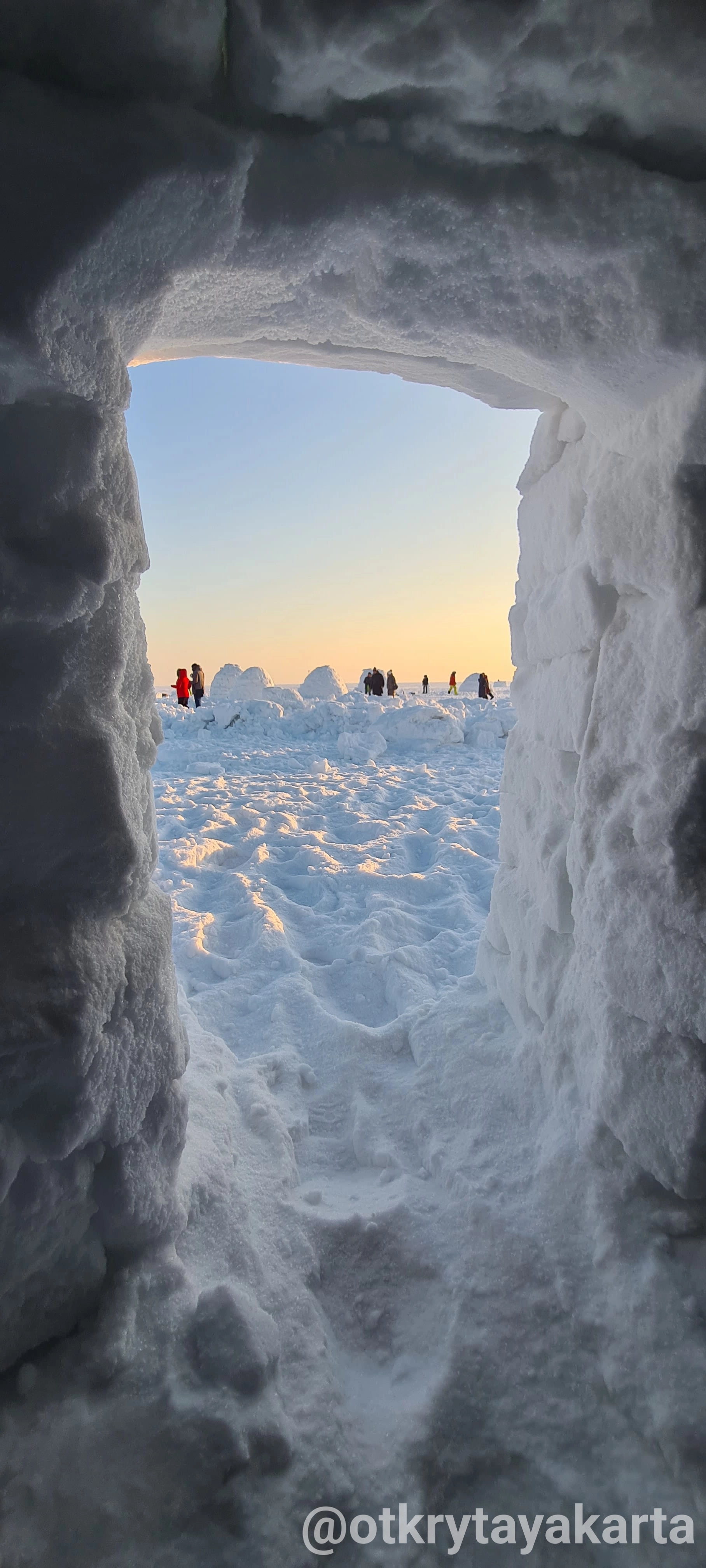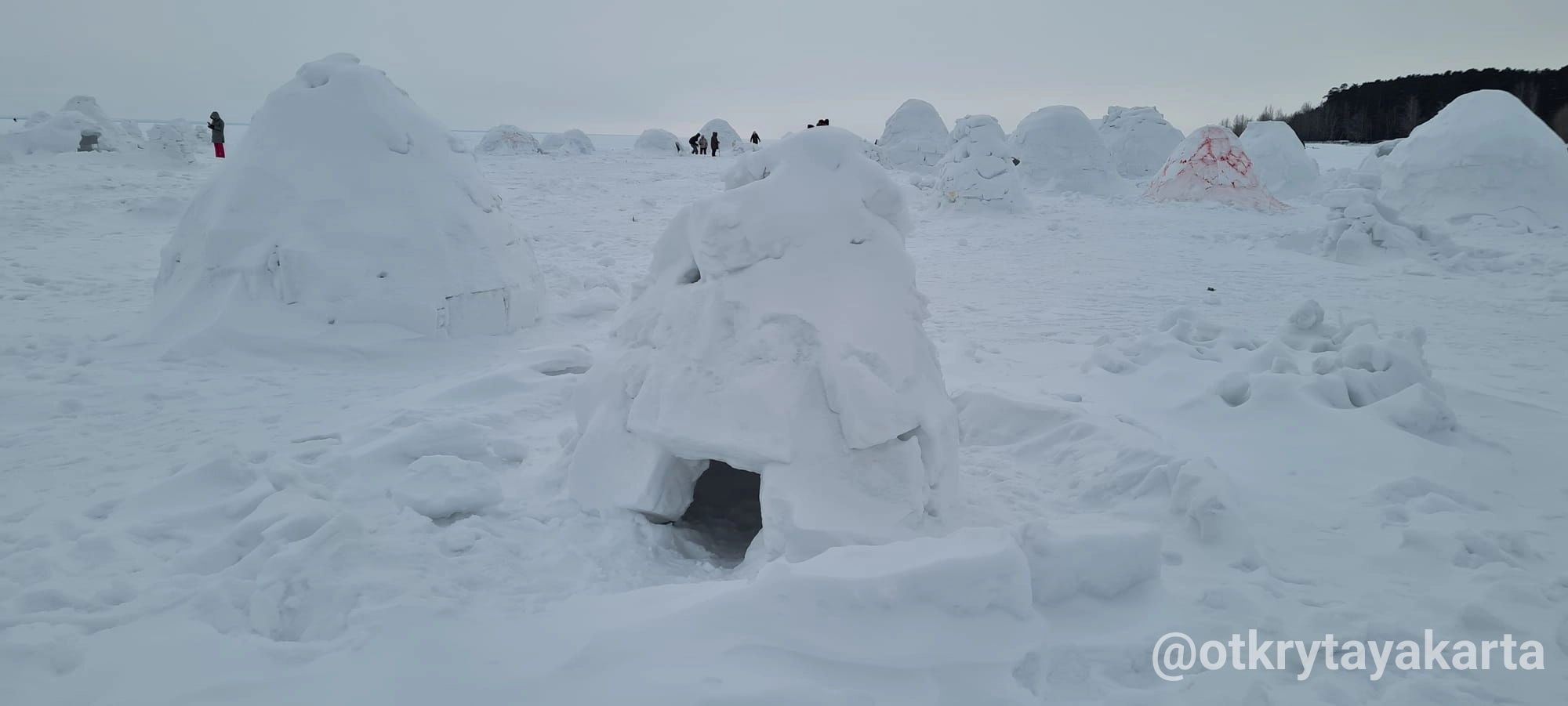 В 2021 году мы случайно приехали посмотреть, что за праздник такой был на льду водохранилища и как иглу выглядят. Декора уже не было, но интерес ледяной городок вызвал.