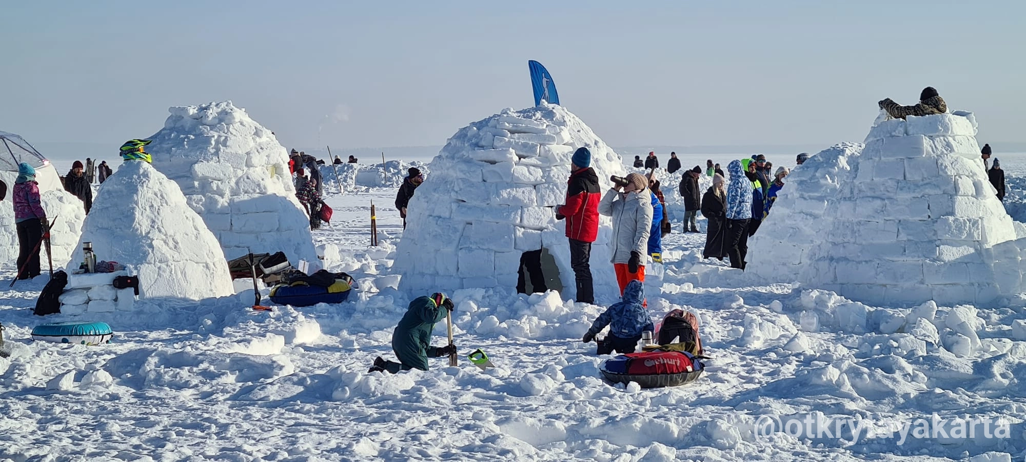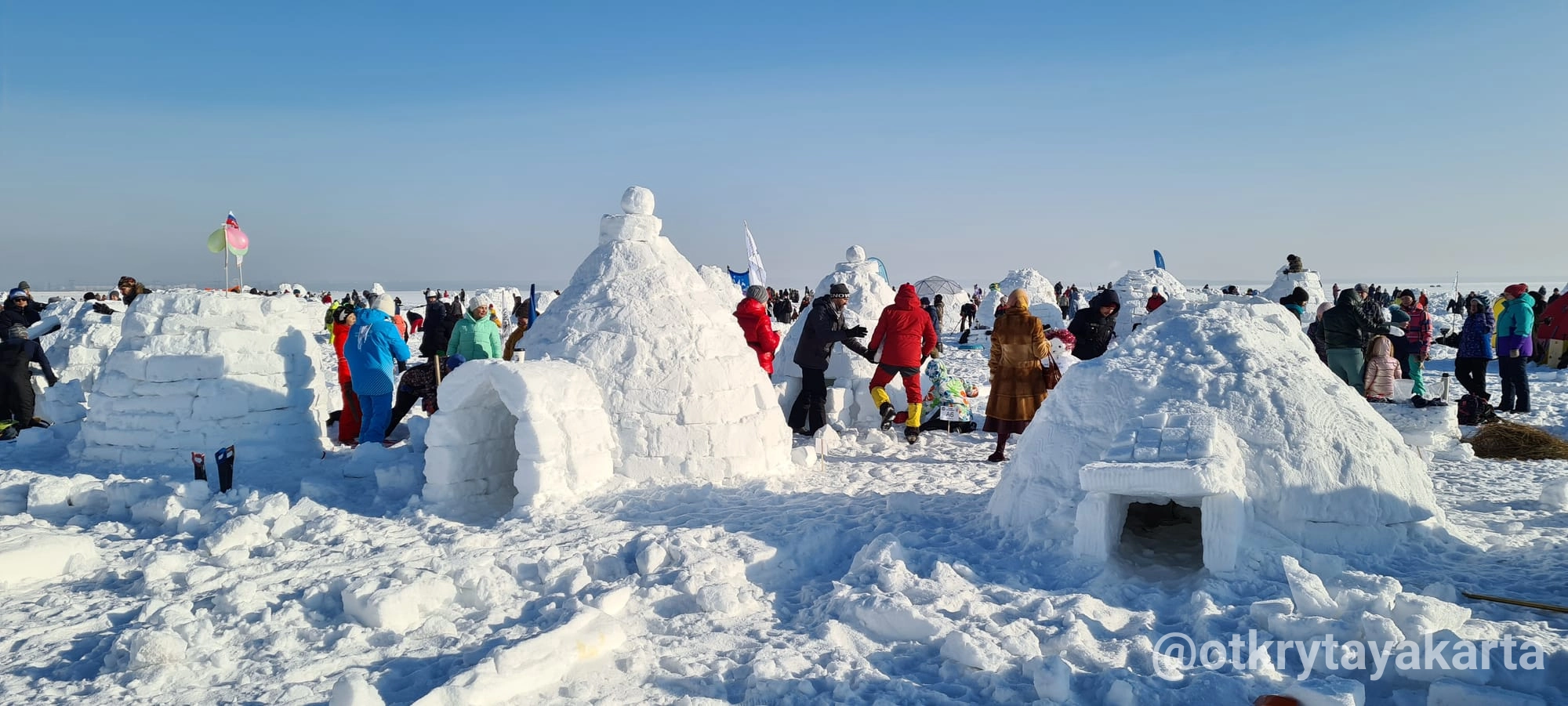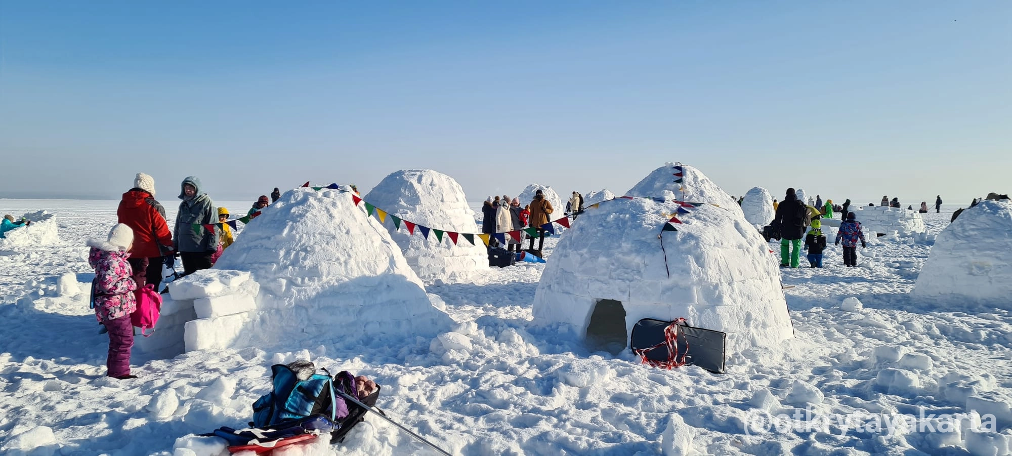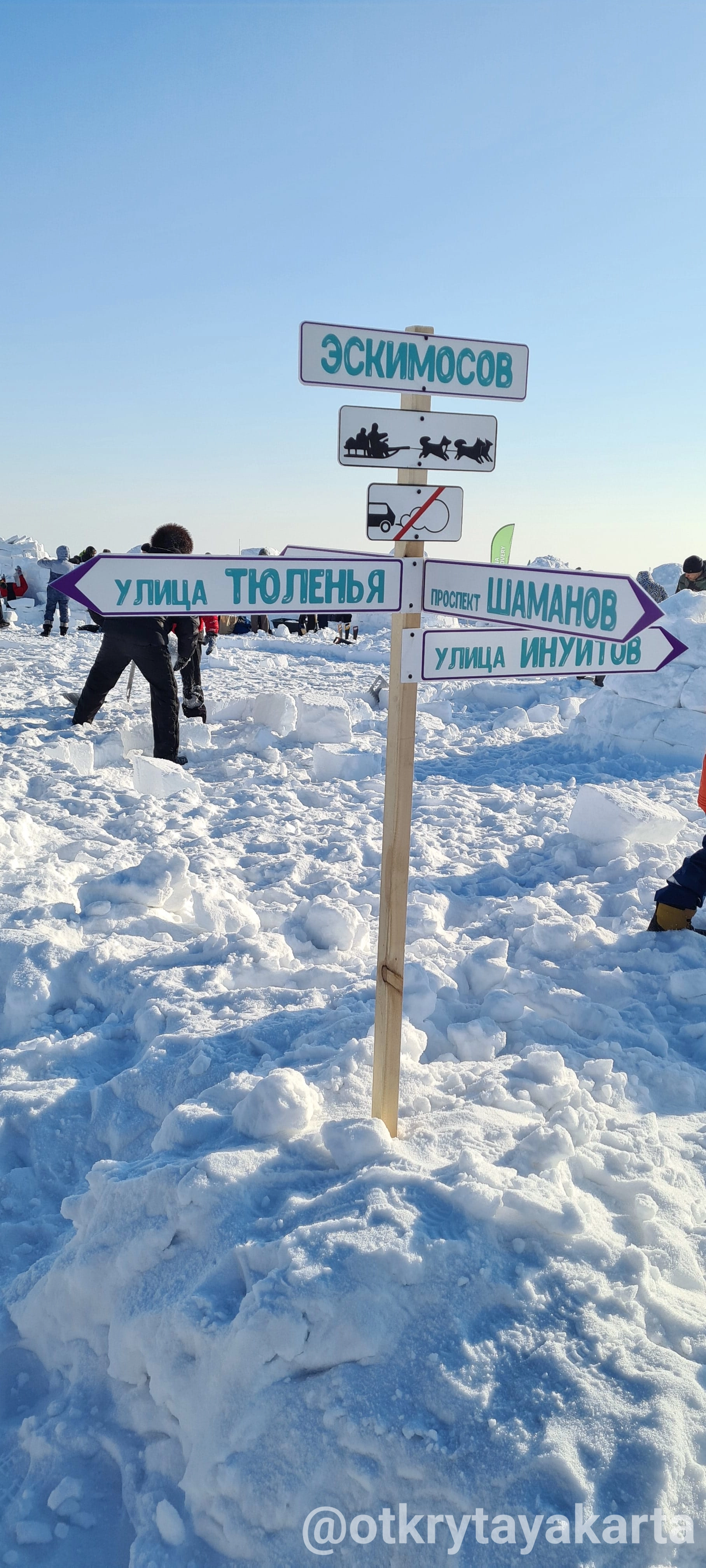 Ездовые собаки уже катали всех желающих. В украшениях иглу использовались кости и черепа животных, замороженная рыба. Сами строители в своих креативных костюмах и их питомцы северных пород так же украшали своим присутствием всё вокруг.