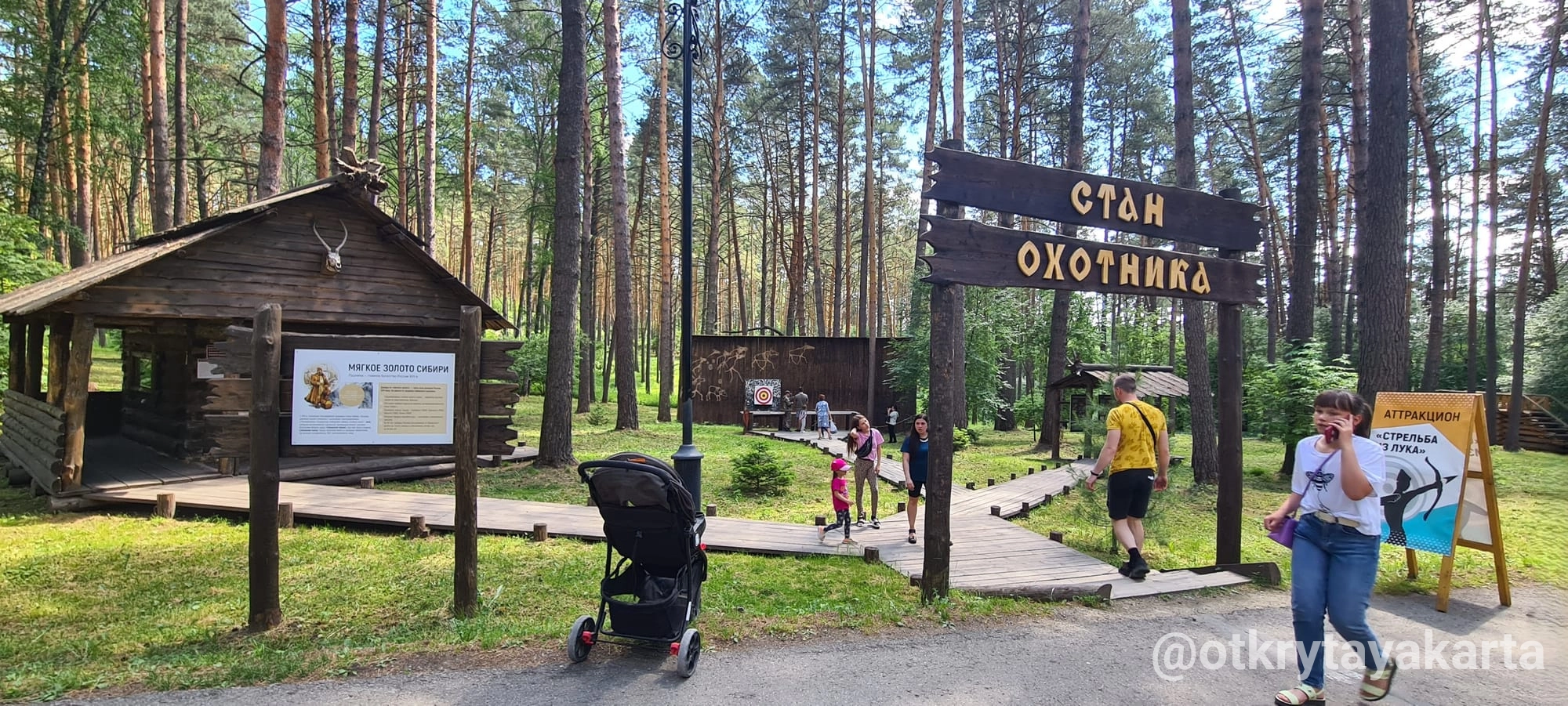 «Стан охотника» — место, где оживают промысловые традиции. Охотничья изба, рядом — макеты ловушек, которые использовали и русские, и коренные народы. И, конечно, возможность попробовать себя в роли промысловика: высечь огонь кремнем, пострелять из лука. Интерактив, который возвращает к истокам.