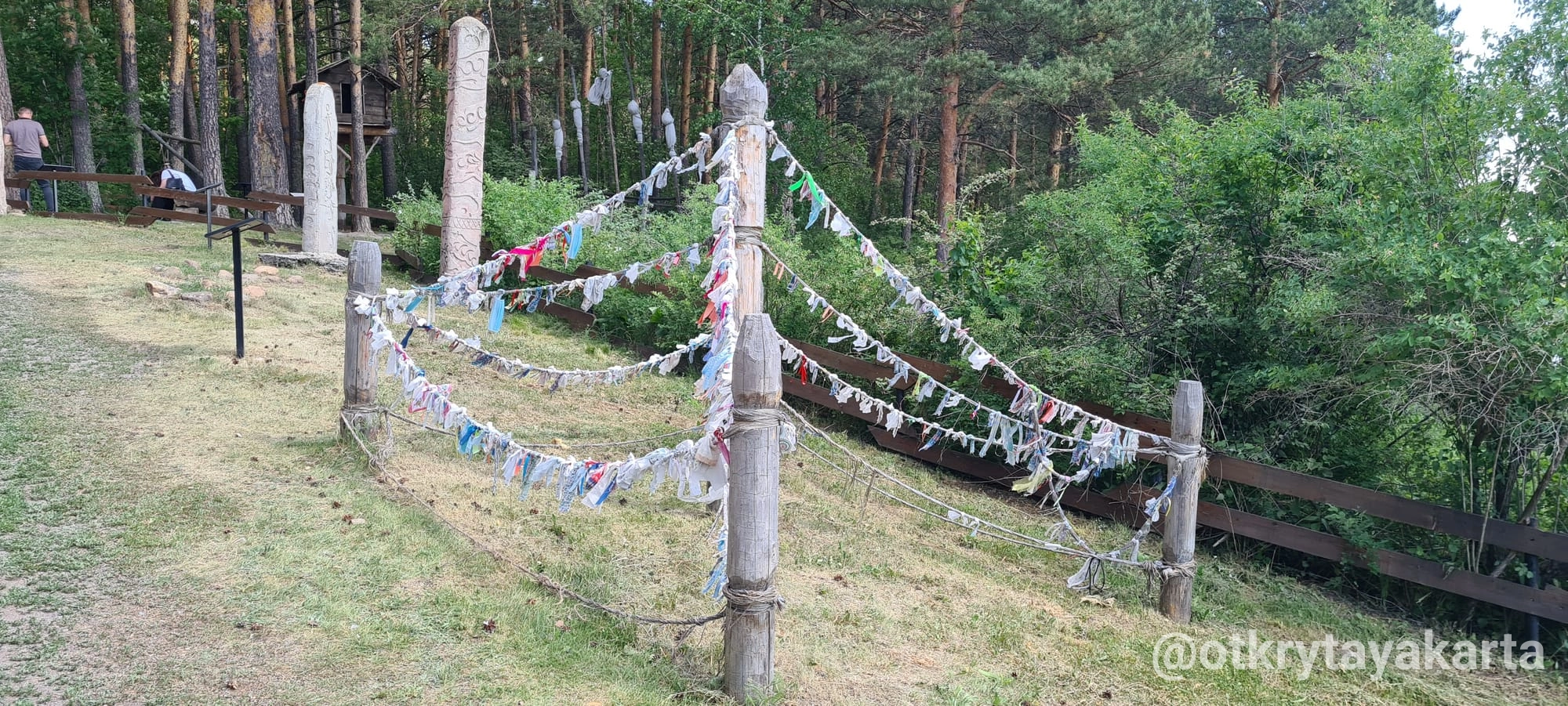 Здесь есть всё: Мировое древо, соединяющее три мира, ритуальная коновязь для освящения священных коней, каменный менгир как ось пространства. Культ Обо напоминает о хозяевах гор, которым до сих пор повязывают ленточки на ветвях.