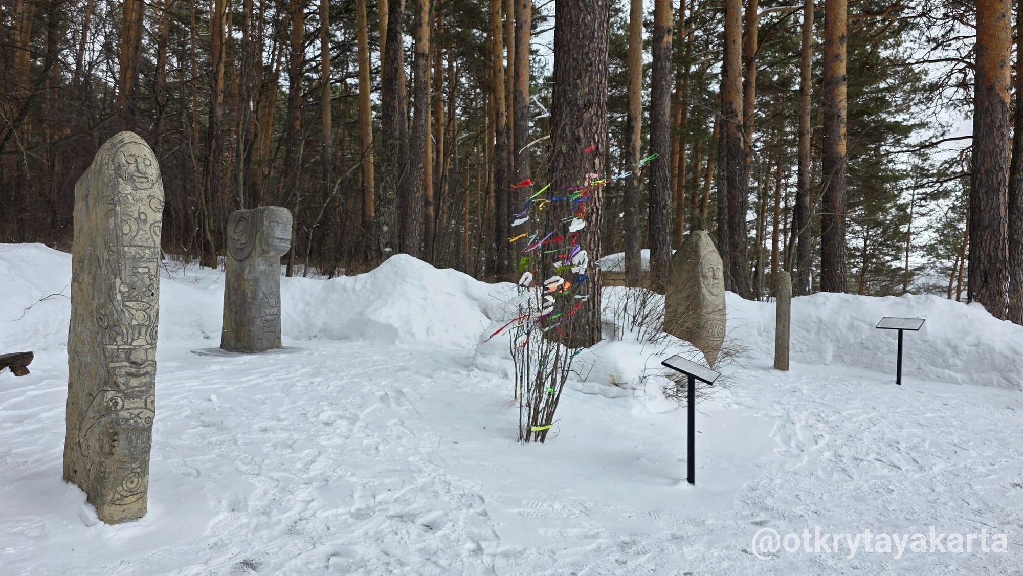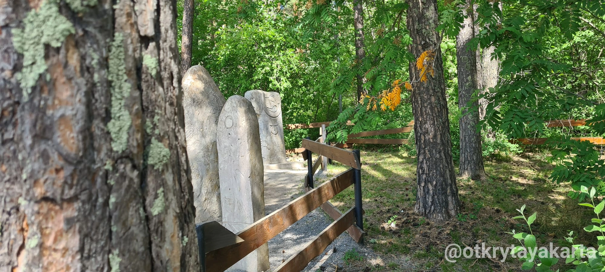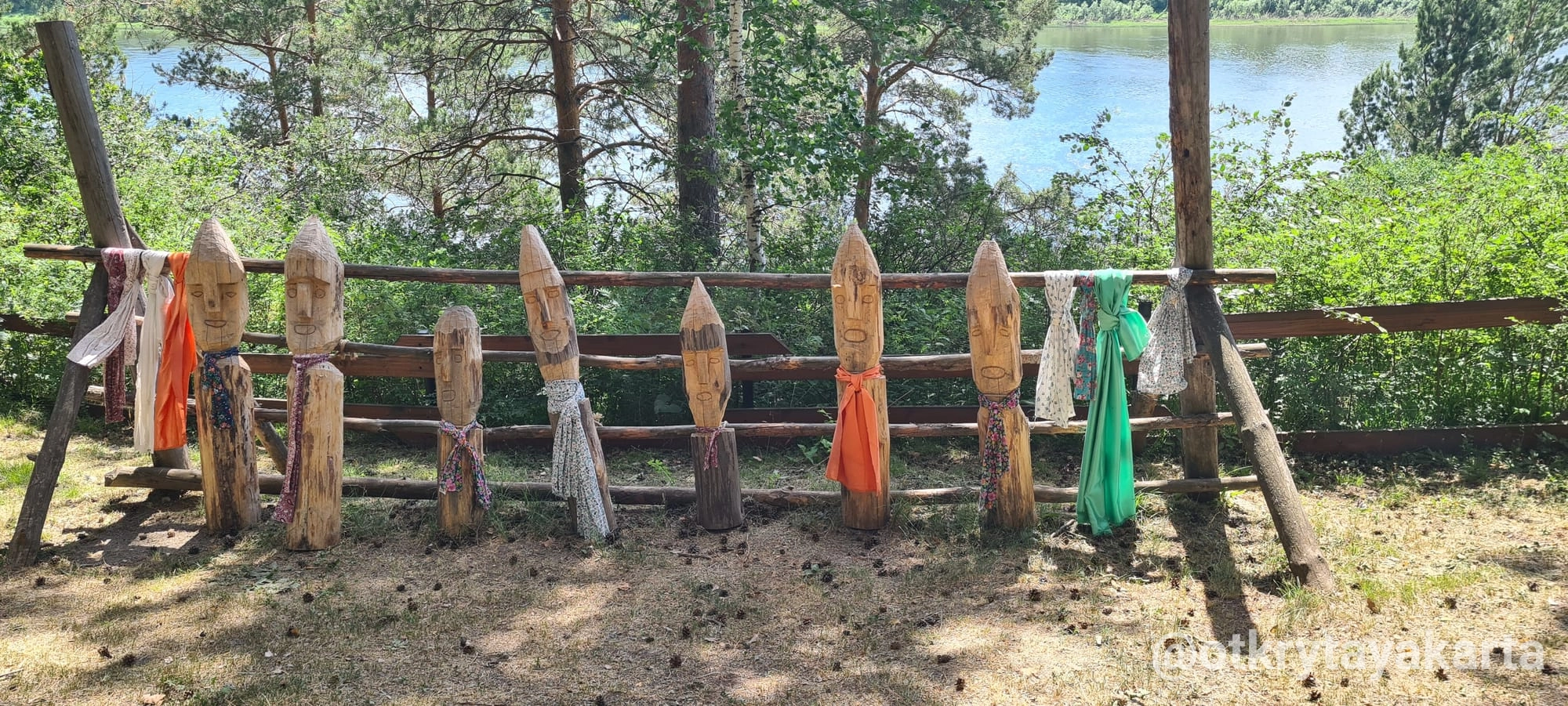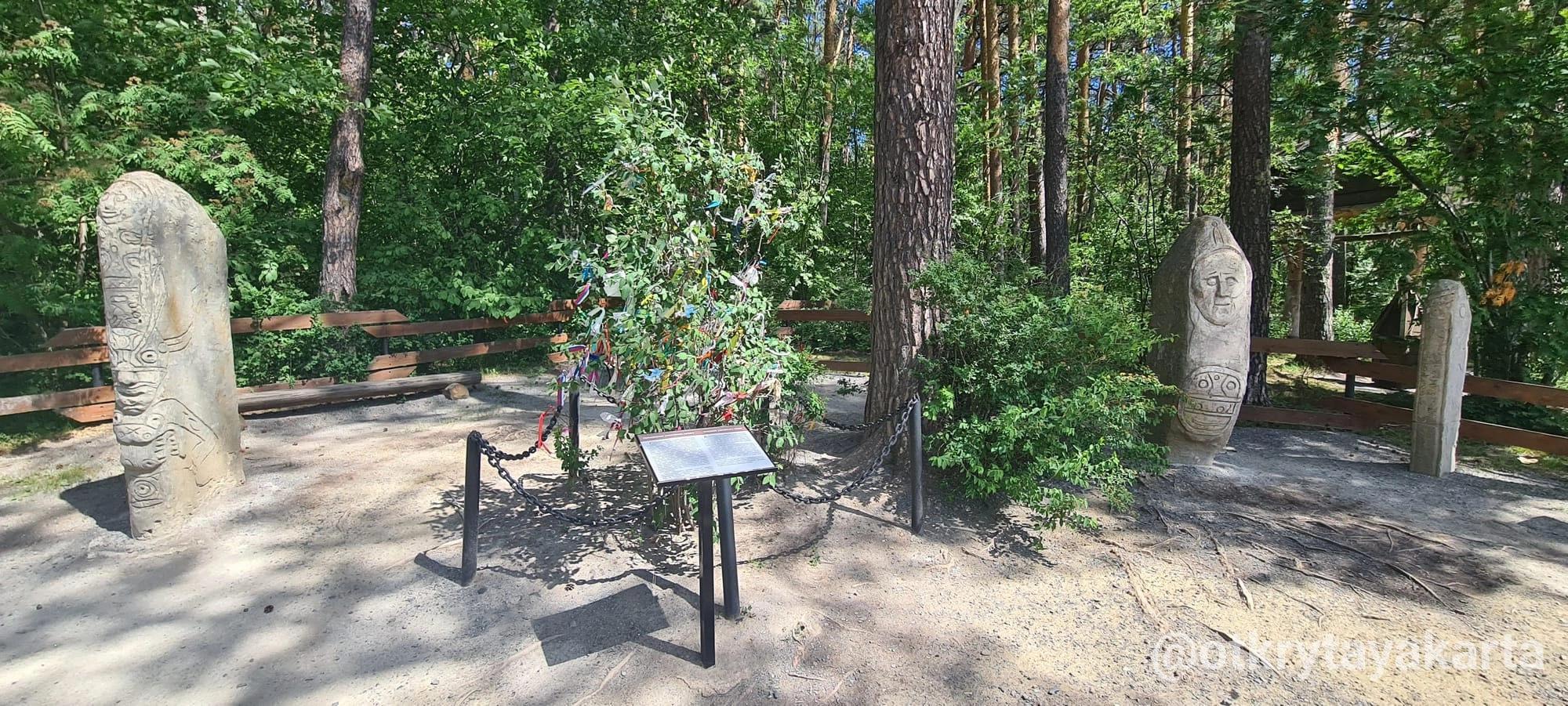 На поляне среди сосен застыли каменные стражи — копии древних изваяний из Хакасии, Тывы, Алтая и Монголии. Но сердце этого места — духи обских угров.