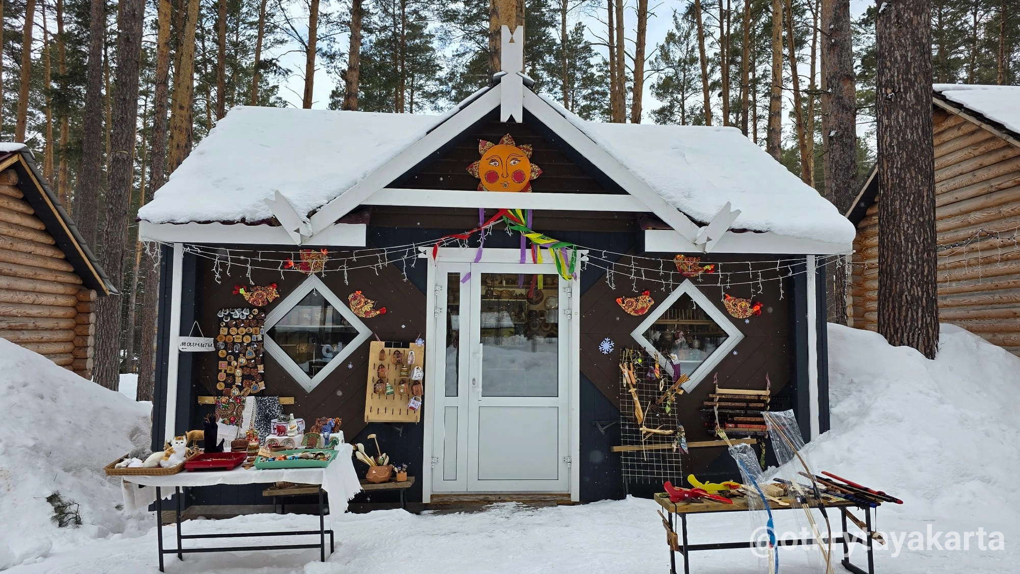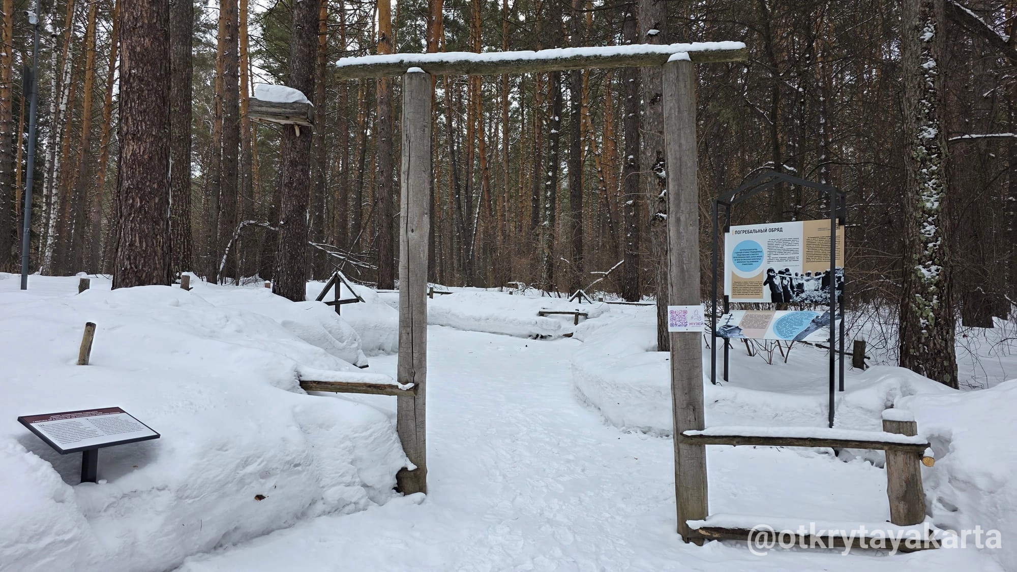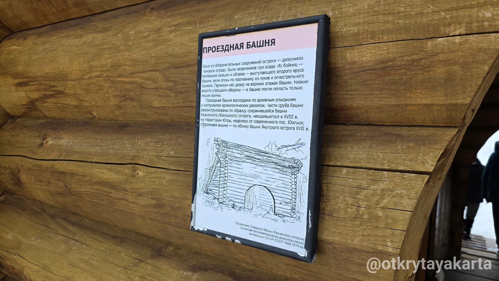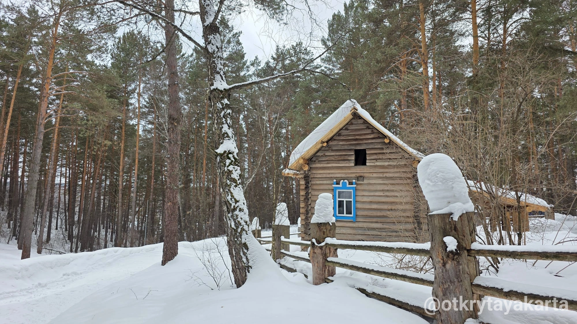 «Сибирский острог» — собирательный образ форпостов, которые ставили служилые люди, продвигаясь вглубь Сибири. Проездная башня, угловая башня, тыновая ограда, изба приказчика. Заходишь внутрь — и будто переносишься во времена первых воевод.
