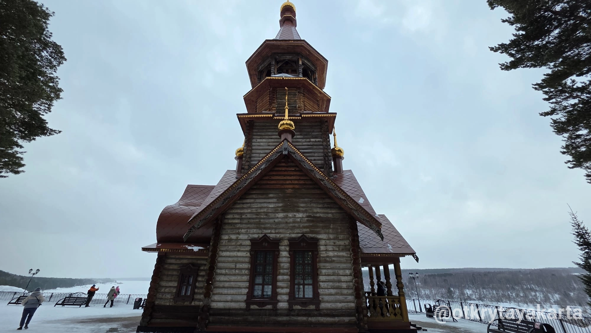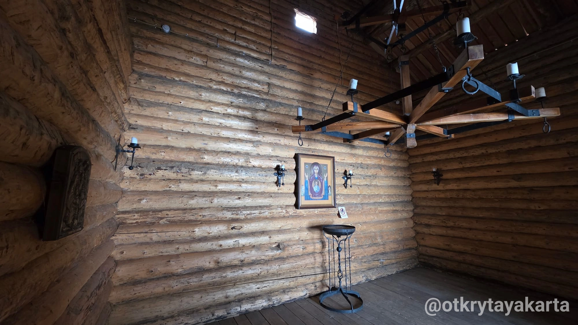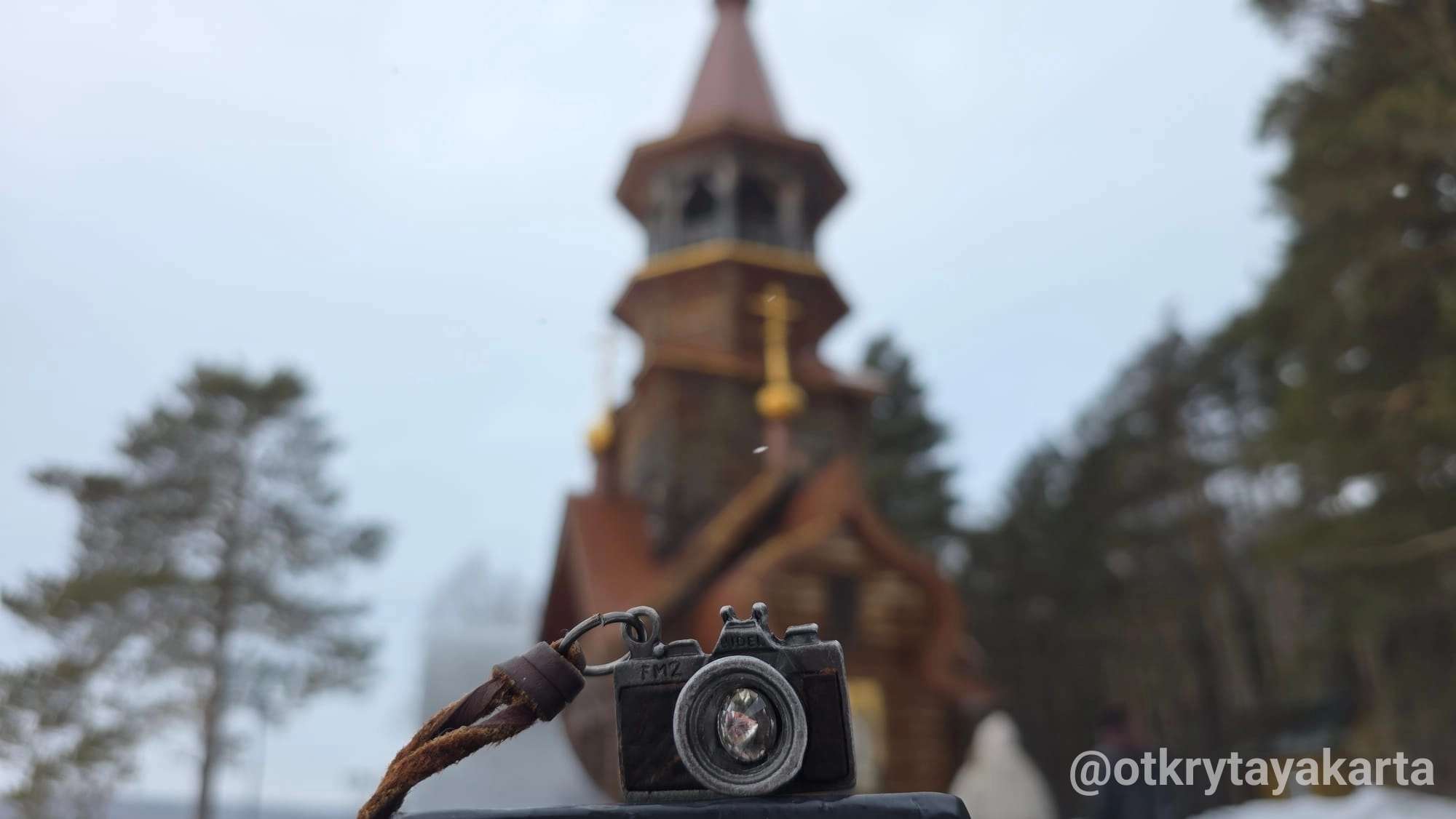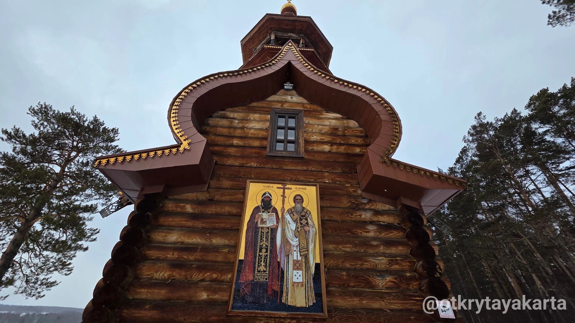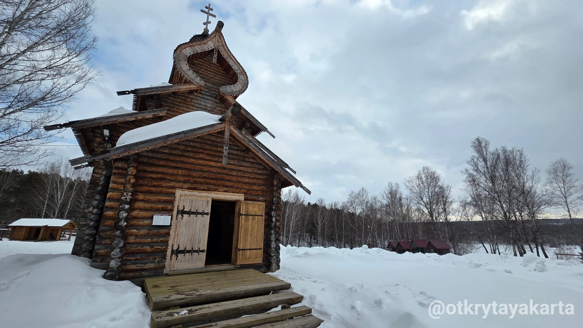 Действующий храм, построенный в 2008 году по канонам древнерусского деревянного зодчества. 33 метра высоты, сосна и лиственница, идеальные пропорции.