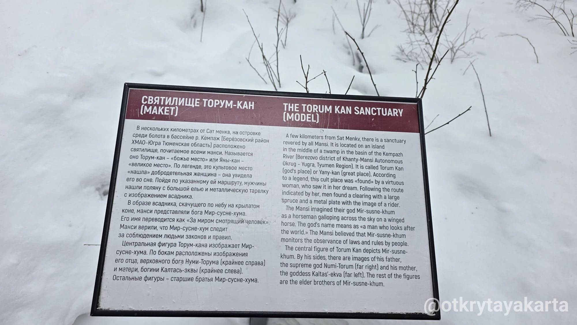 Особое место — святилища Луски-ойки и Торум-кан. В еловом бору реконструирован семигранный сумьях, заполненный платками с монетами в углах. Каждый узелок — просьба, каждая монета — плата духам за помощь.