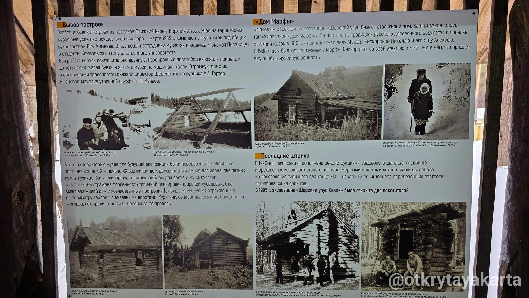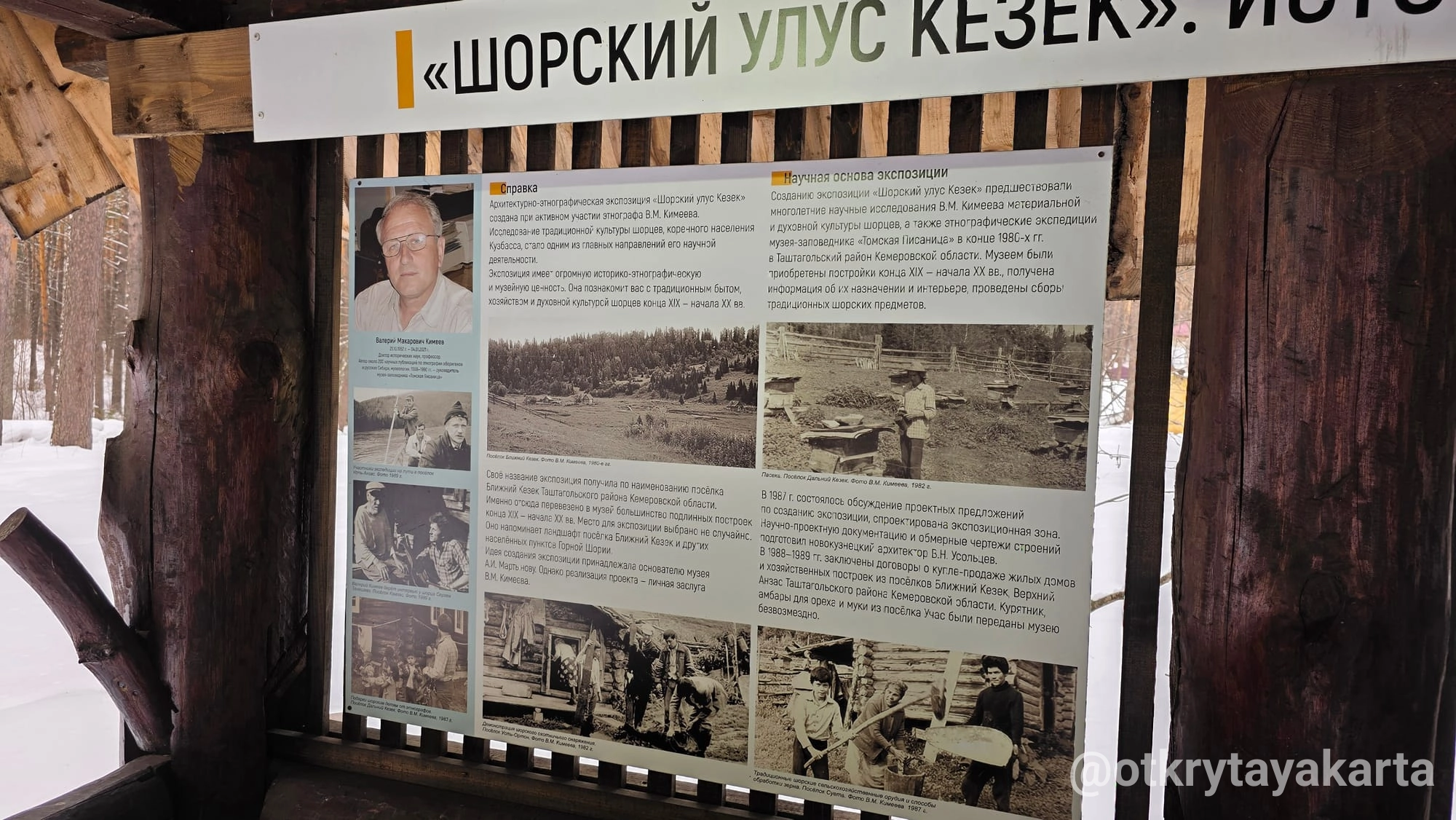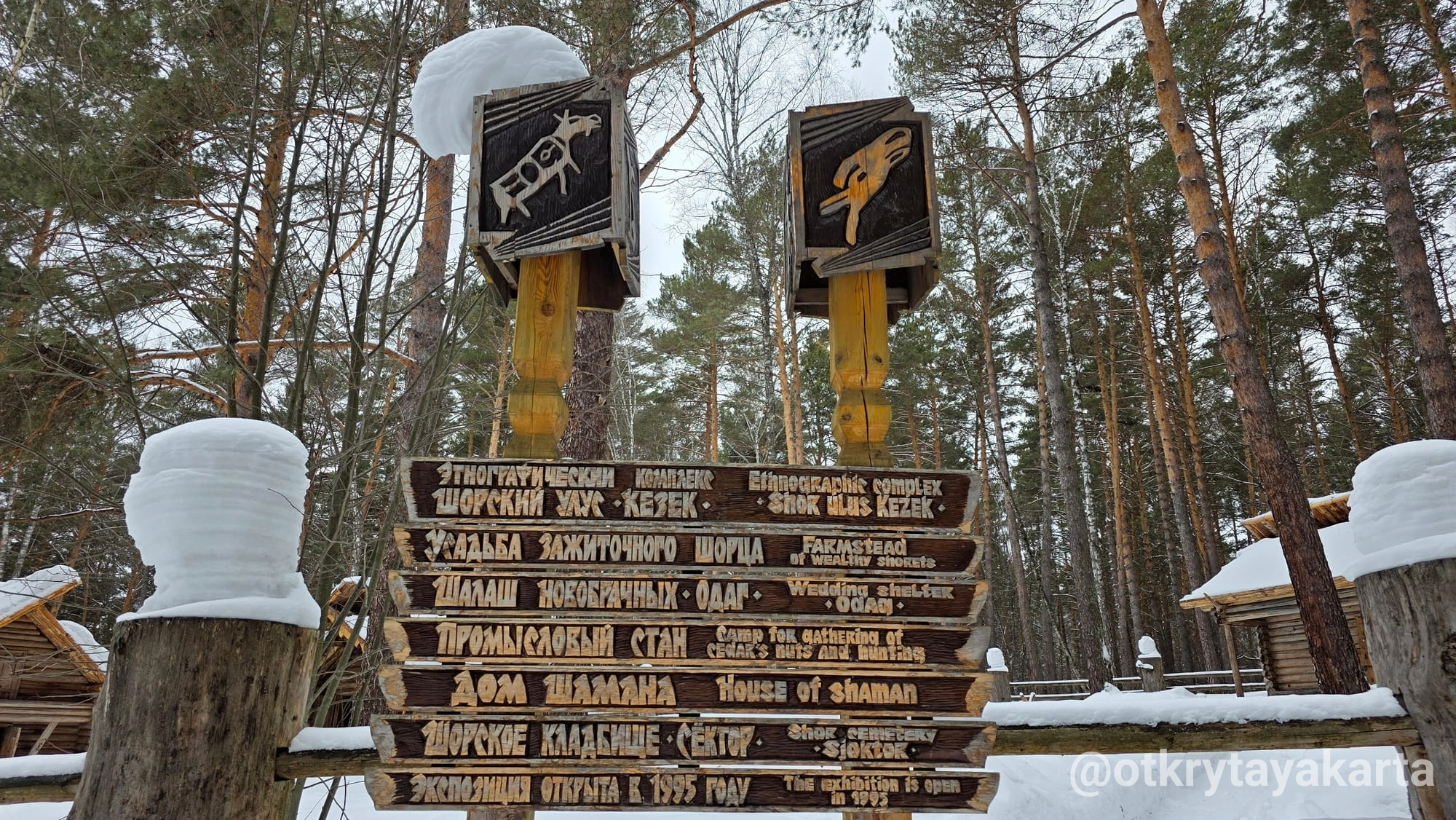 В глубине соснового бора попадем в другую эпоху. «Шорский улус Кезек» — это не стилизация, не новодел. Это подлинные жилые и хозяйственные постройки конца XIX — начала XX века, перевезенные сюда из Горной Шории.