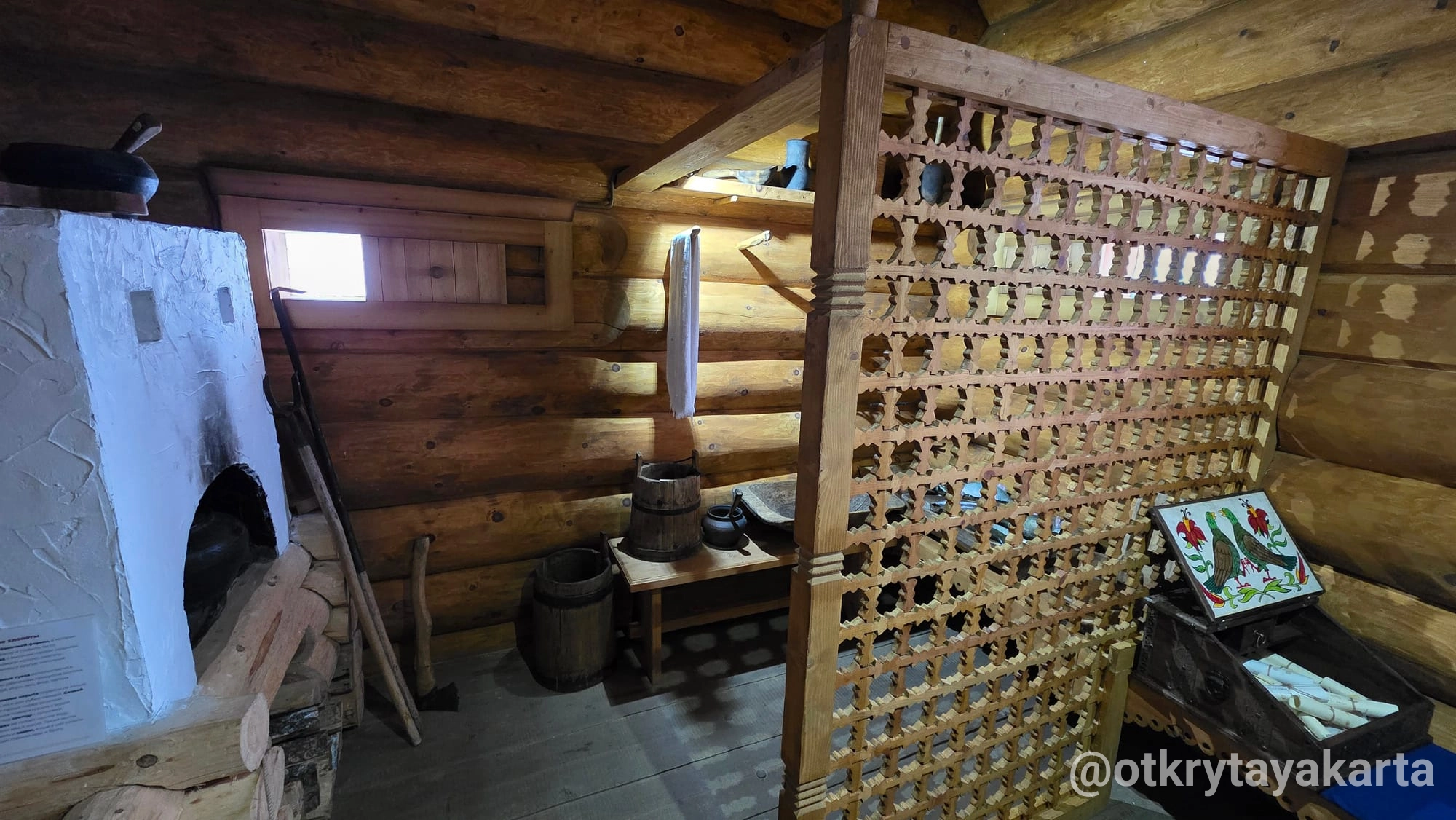 Заглянем в дом зажиточного шорца. Обратите внимание на сруб — он рублен «в обло», как учили русские мастера, но внутри — совершенно иной уклад. Летняя кухня «сенек» — та самая срубная юрта, в которой столетиями зимовали предки. Амбары «анмарак» на высоких столбах — чтобы мыши и сырость не добрались до припасов.