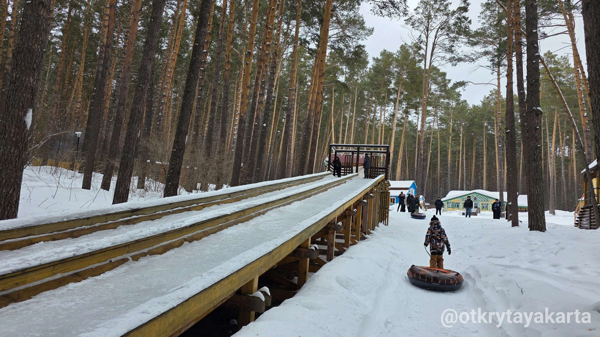 Есть в зимний период отличная горка для тюбингов. В конце пути проезжаешь под мостом мимо улуса Кезек.