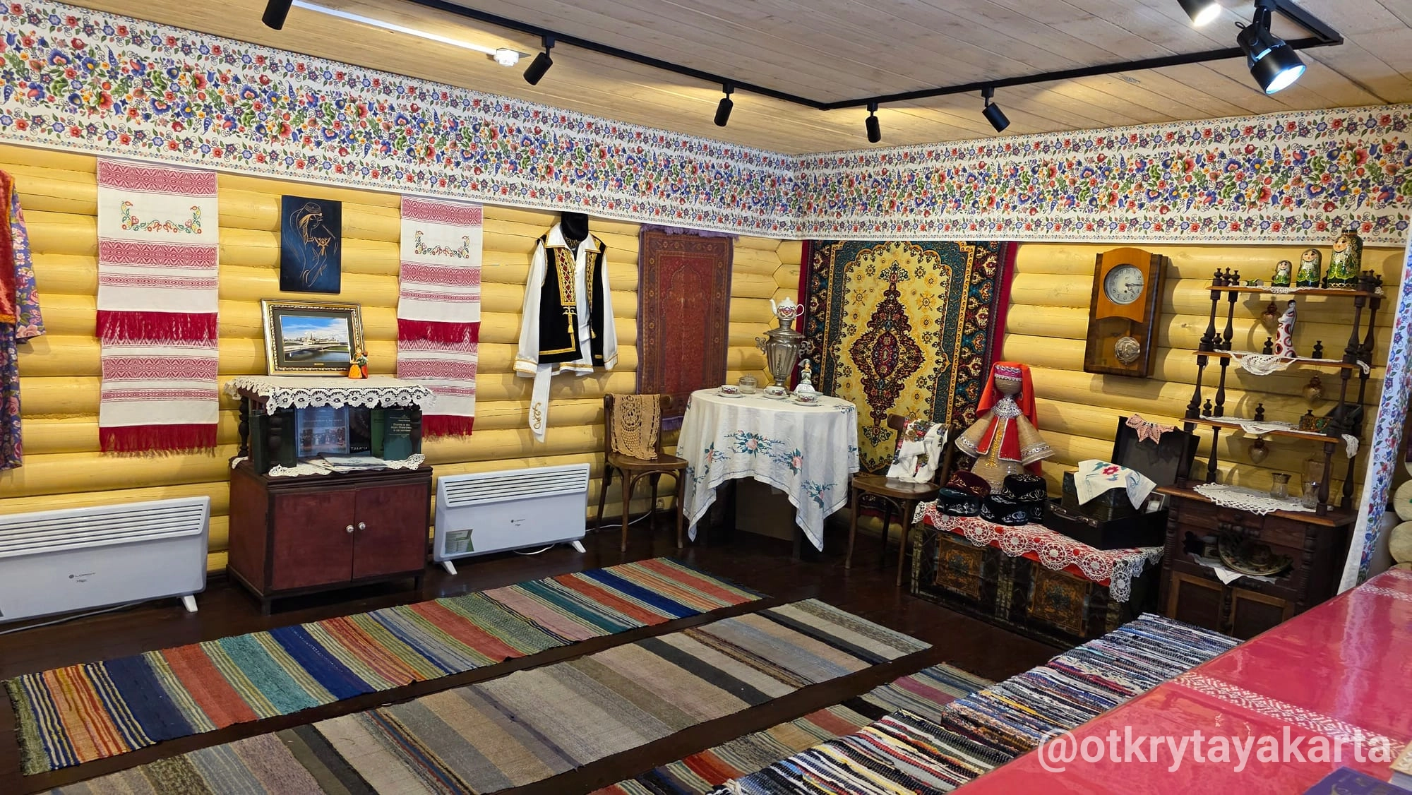 Атмосфера татарской усадьбы конца XIX века: дом с резными наличниками, сундуки, самовары. Здесь рассказывают о татарской кухне — чак-чак, эчпочмаки, проходят дегустации. Но главное — разговор о вере, семейных традициях, о том, как татары сохраняли идентичность, сочетая ислам с древними верованиями.