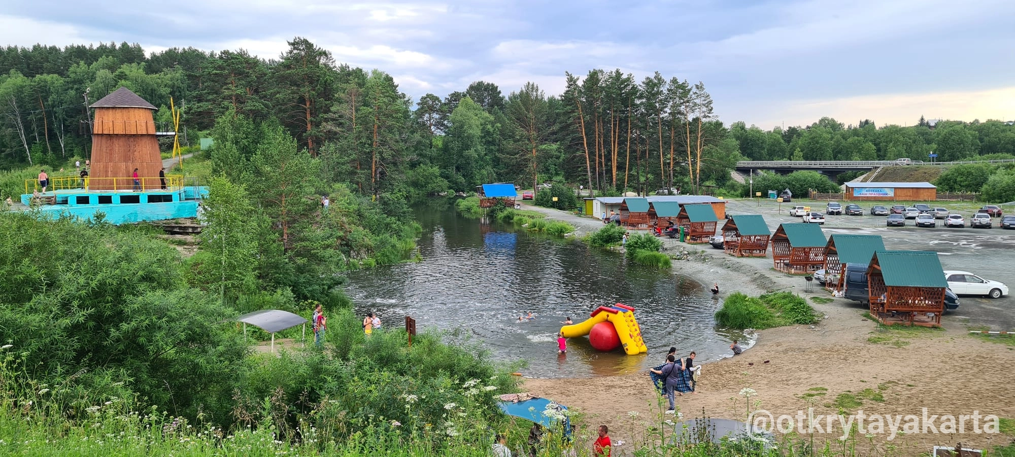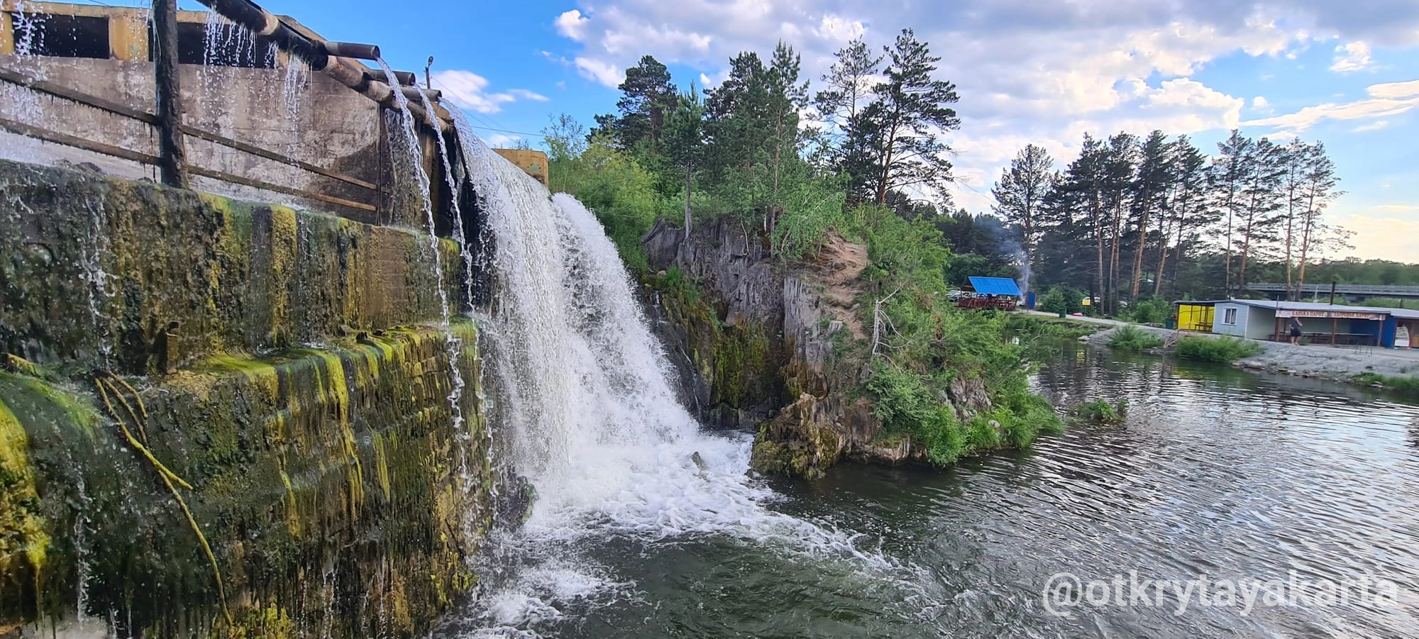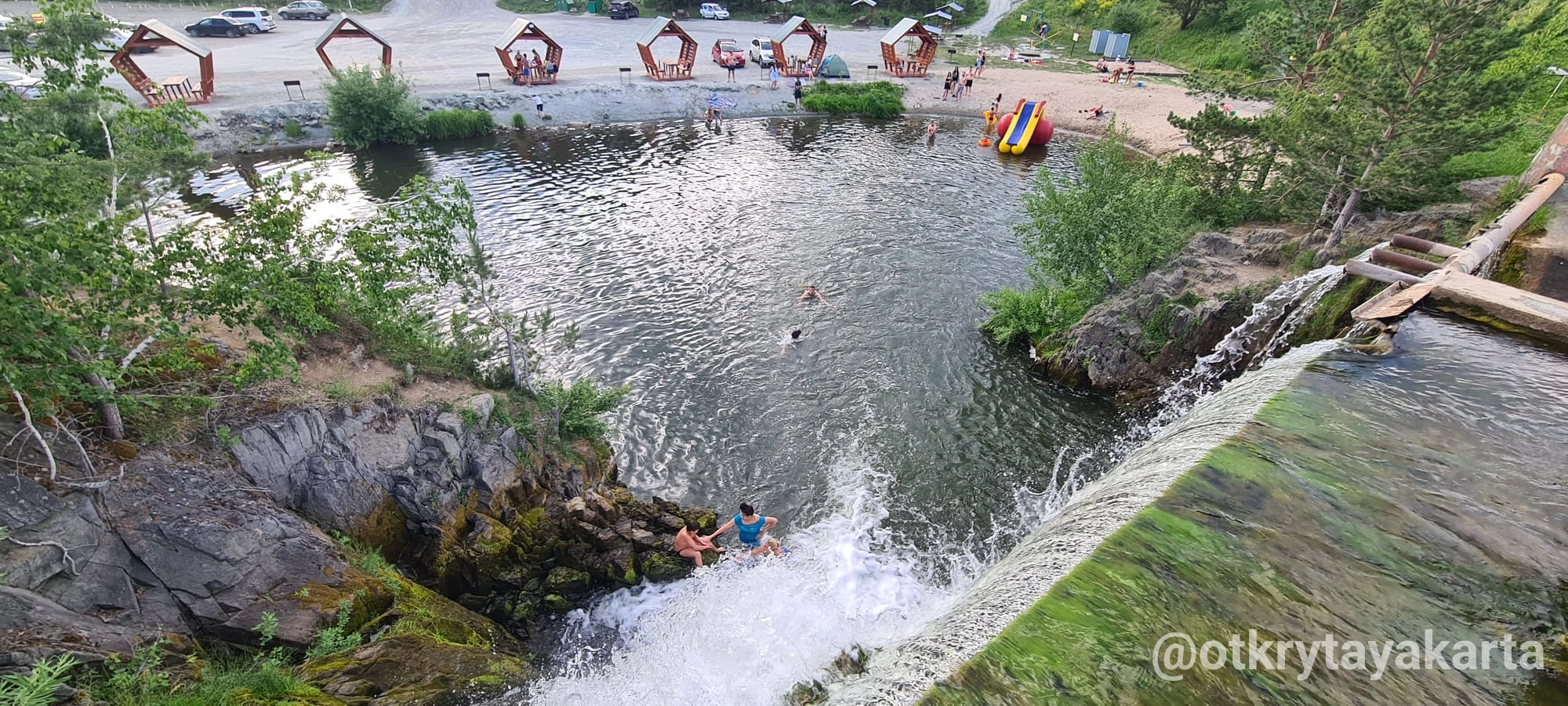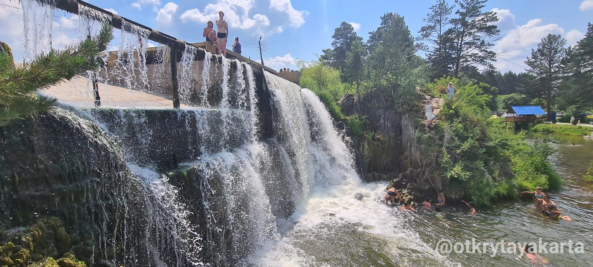 Сегодня Карпысакский водопад — это целый рекреационный комплекс в обрамлении соснового бора. Здесь каждый найдет занятие по душе: