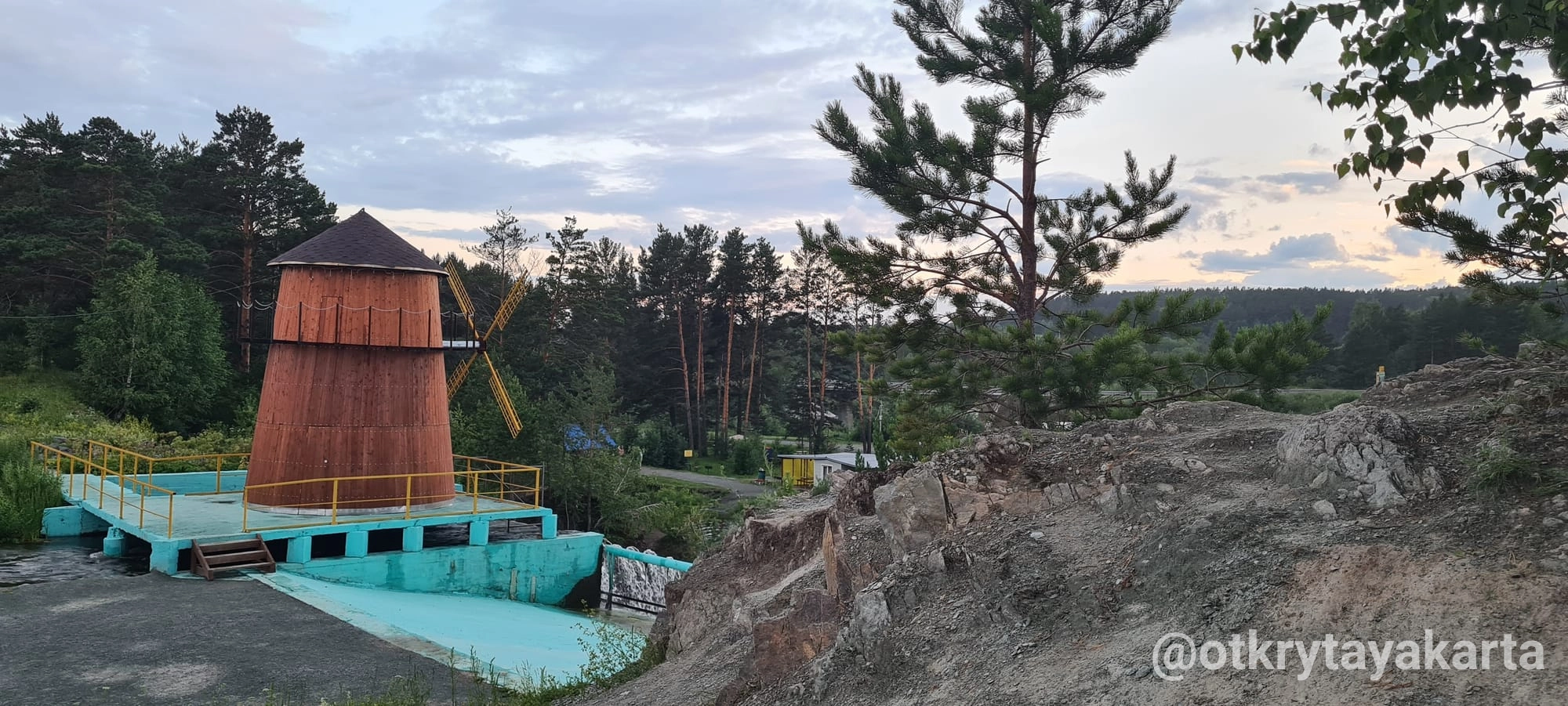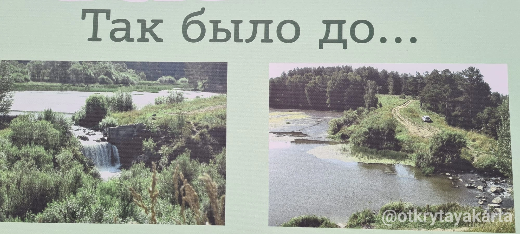 Мельница там была не всегда. Вот так выглядела территория вокруг водопада в июне 2021 года: