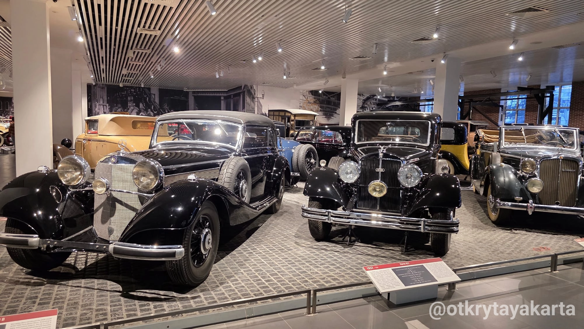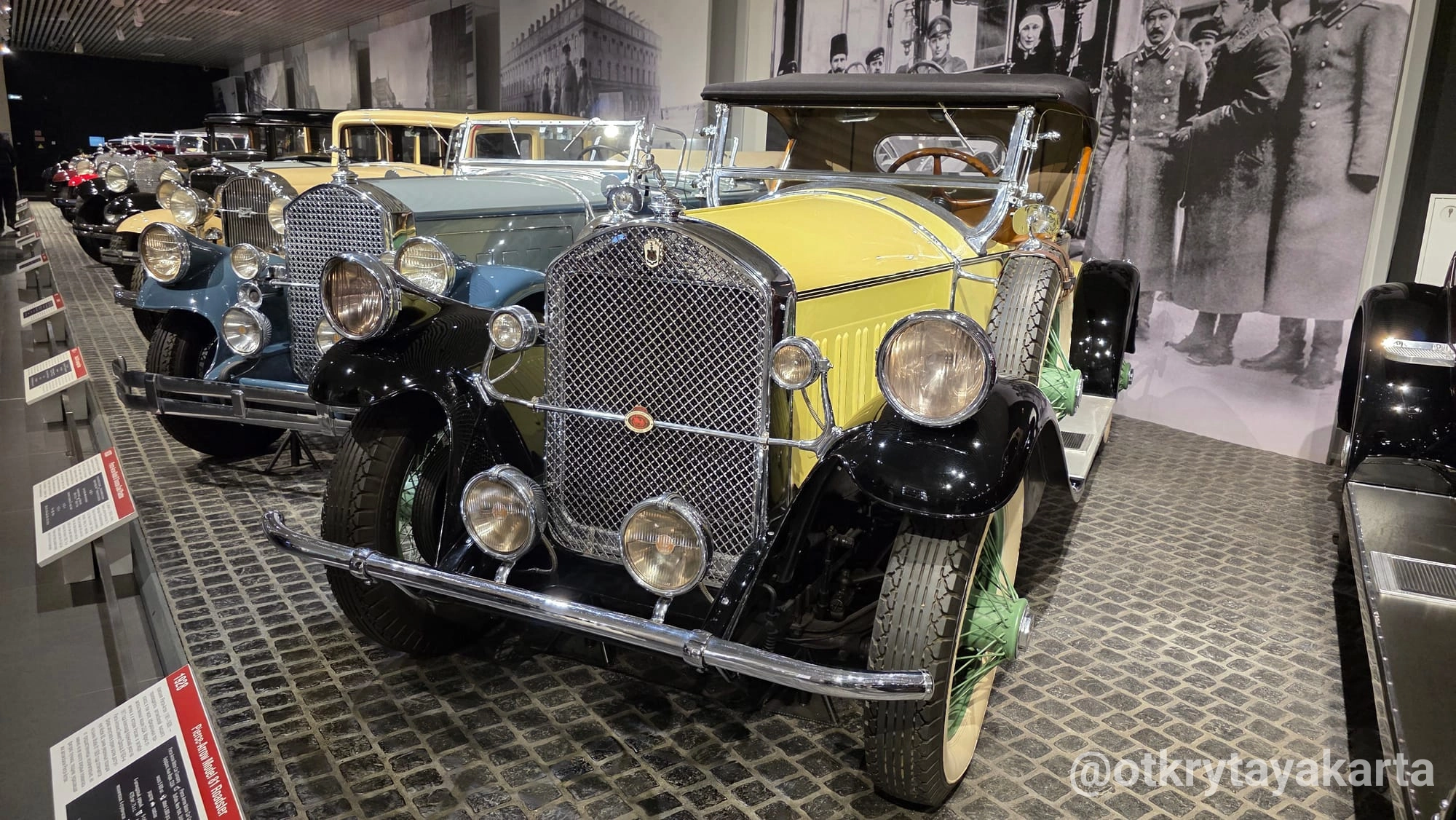 Первый этаж стилизован под старинную международную выставку. Здесь соседствуют «американцы» золотой эпохи автодизайна: