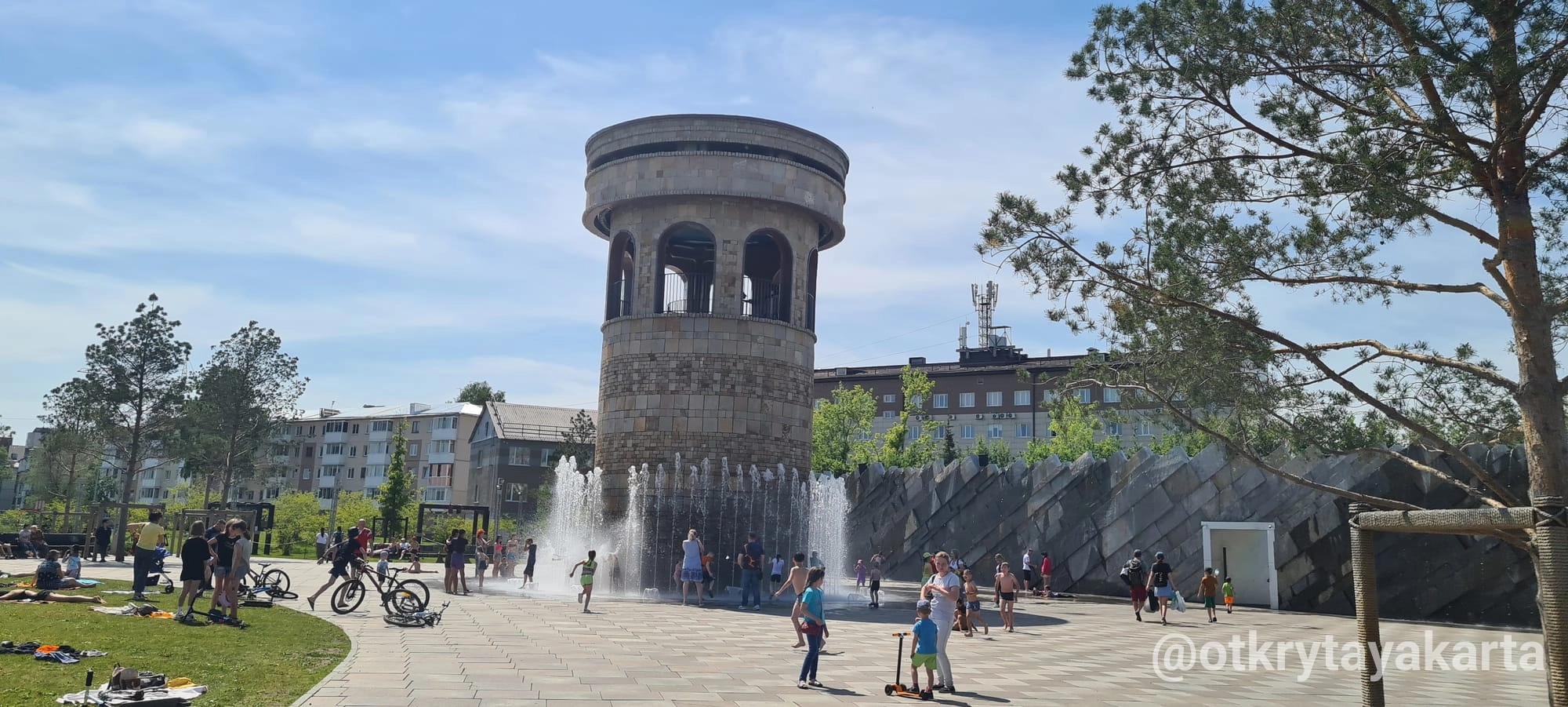 На месте сгоревшего в 2018 году ТЦ «Зимняя вишня» разбит сквер «Парк Ангелов» — современный парк с музыкальным фонтаном‑башней, каменной стеной‑водопадом и искусственными холмами, смягчающими городской шум.