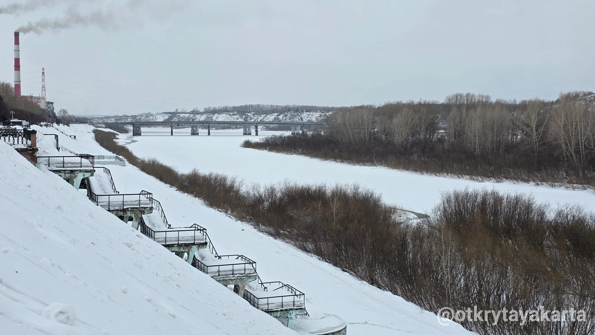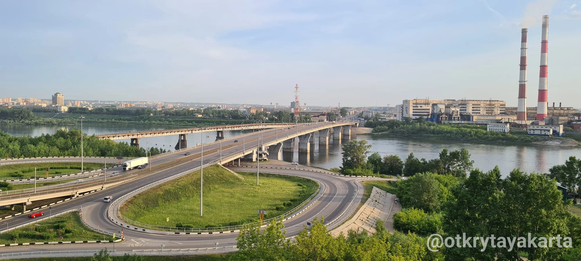 - Смотровые площадки с панорамой на Томь и Кузнецкий мост — второй по ширине мост Сибири (40,5 метра).