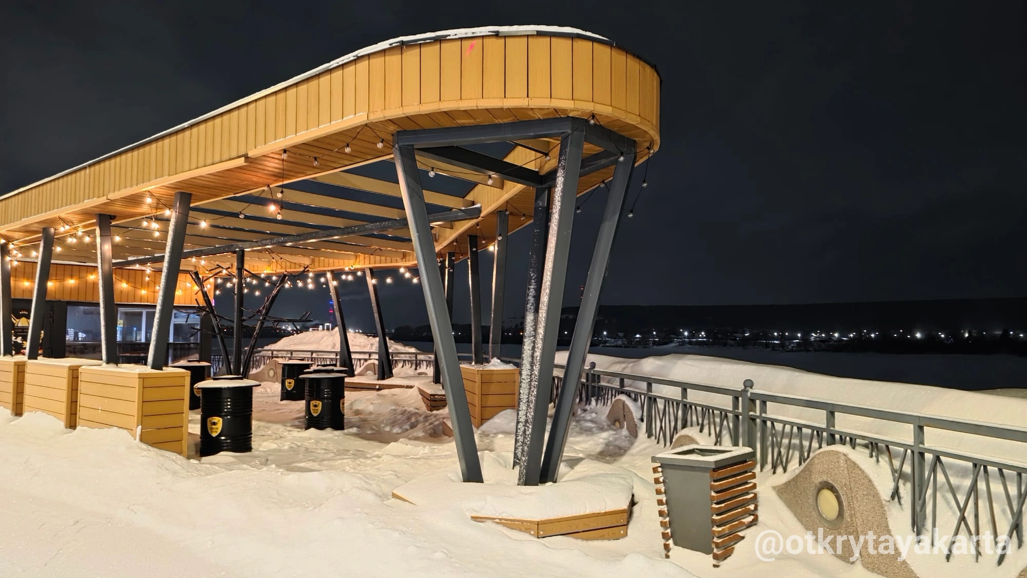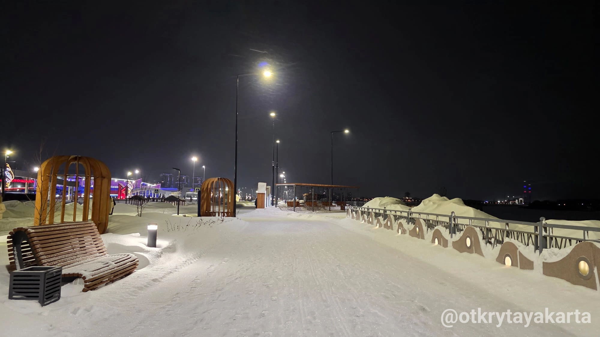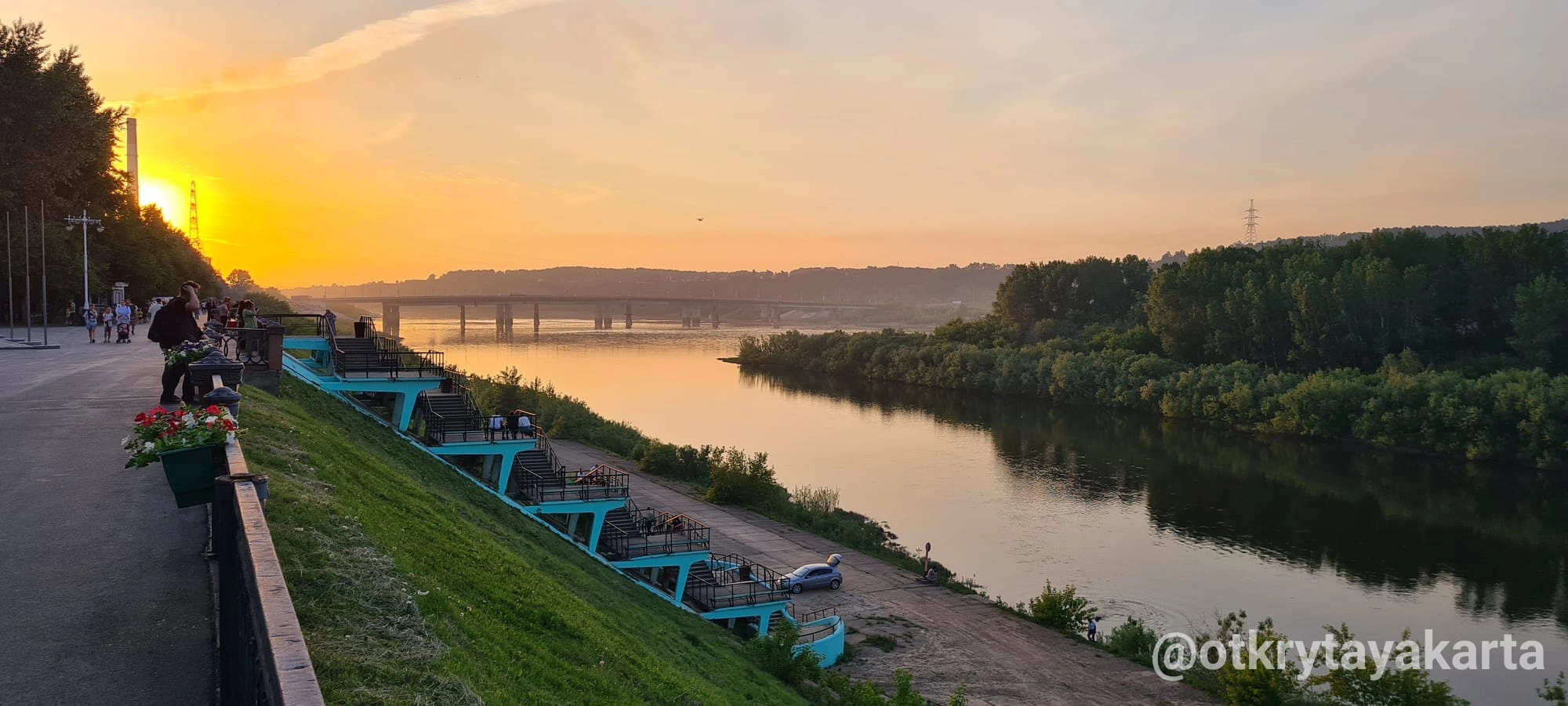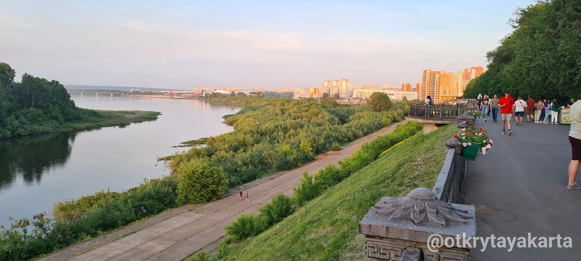 - Амфитеатр, спускающийся к воде: летом здесь проходят уличные концерты, зимой горожане наблюдают за ледоходом.