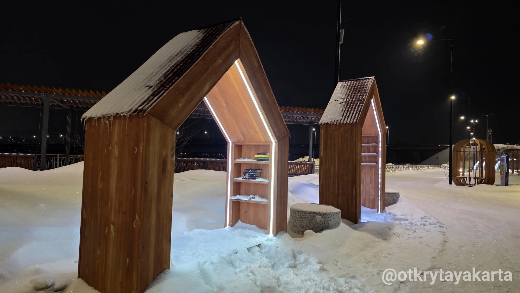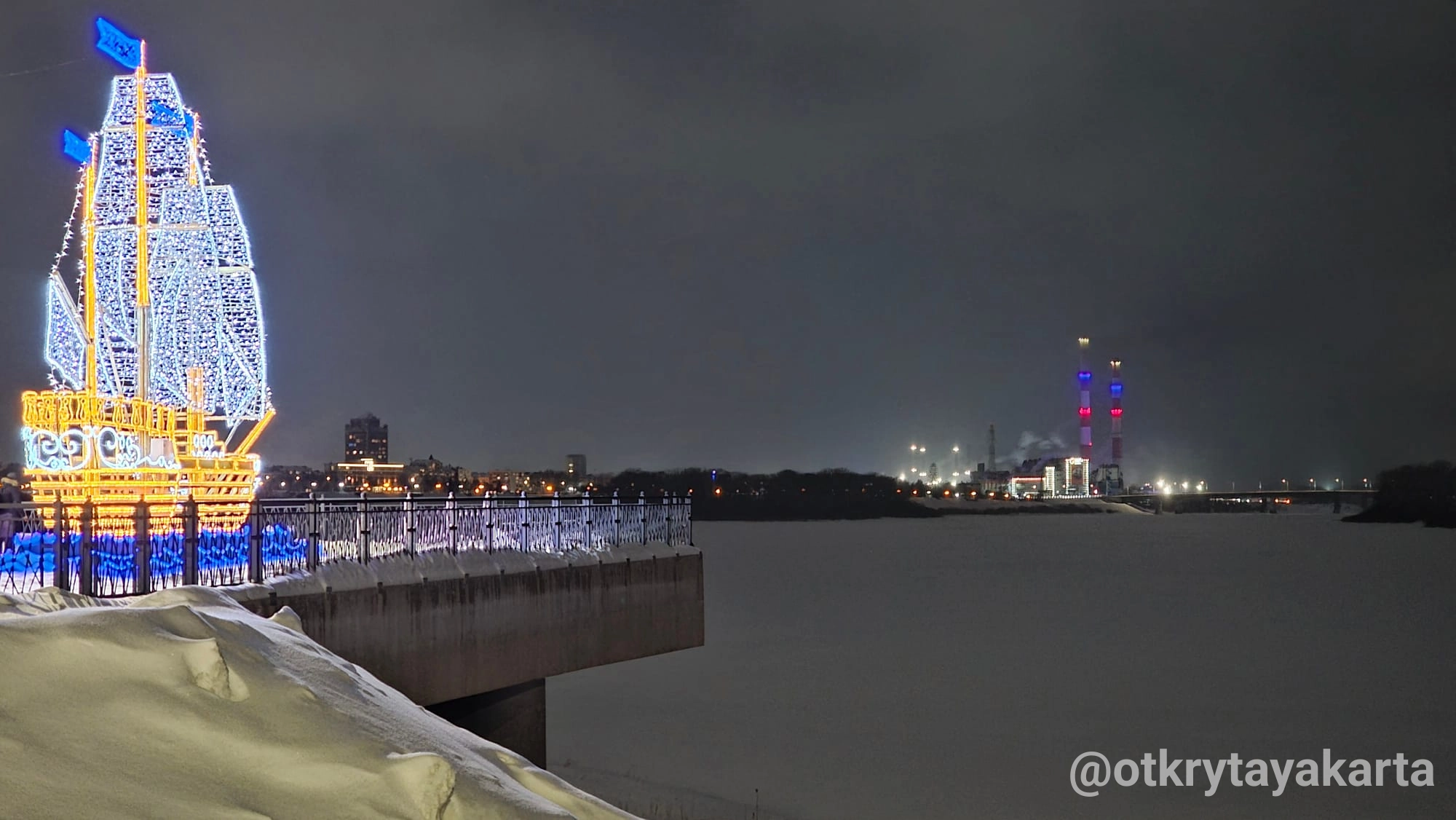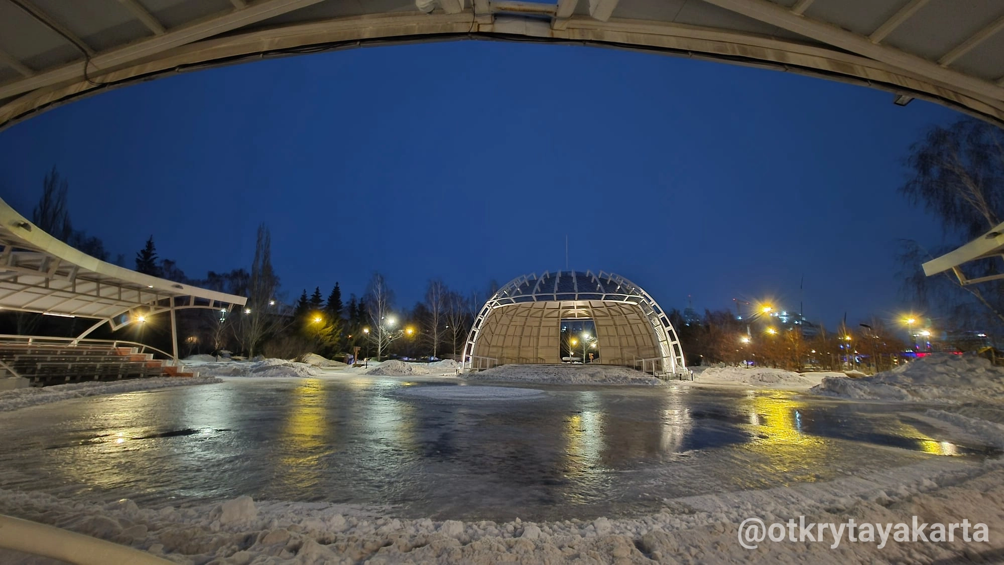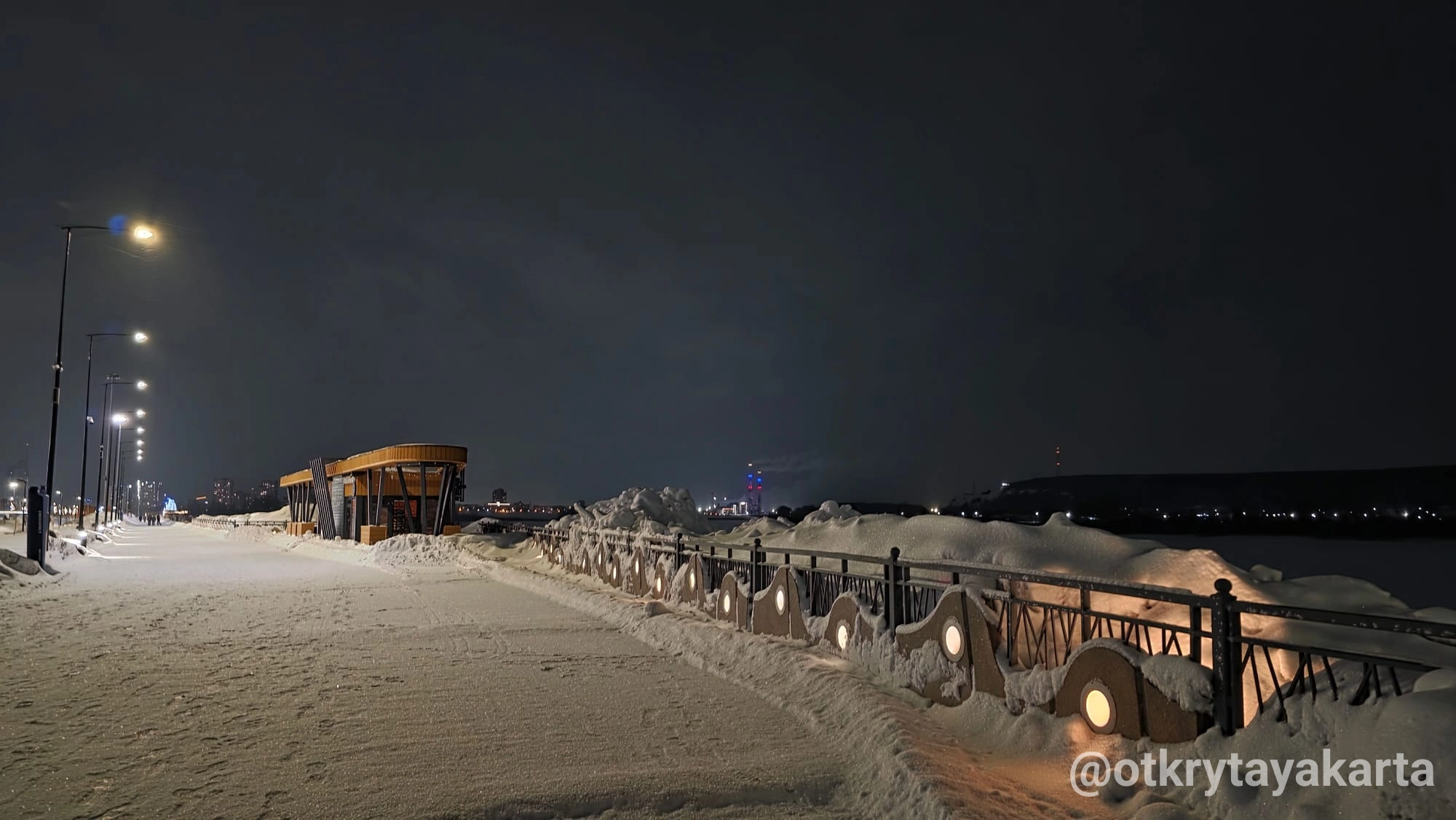 - Амфитеатр, спускающийся к воде: летом здесь проходят уличные концерты, зимой горожане наблюдают за ледоходом.