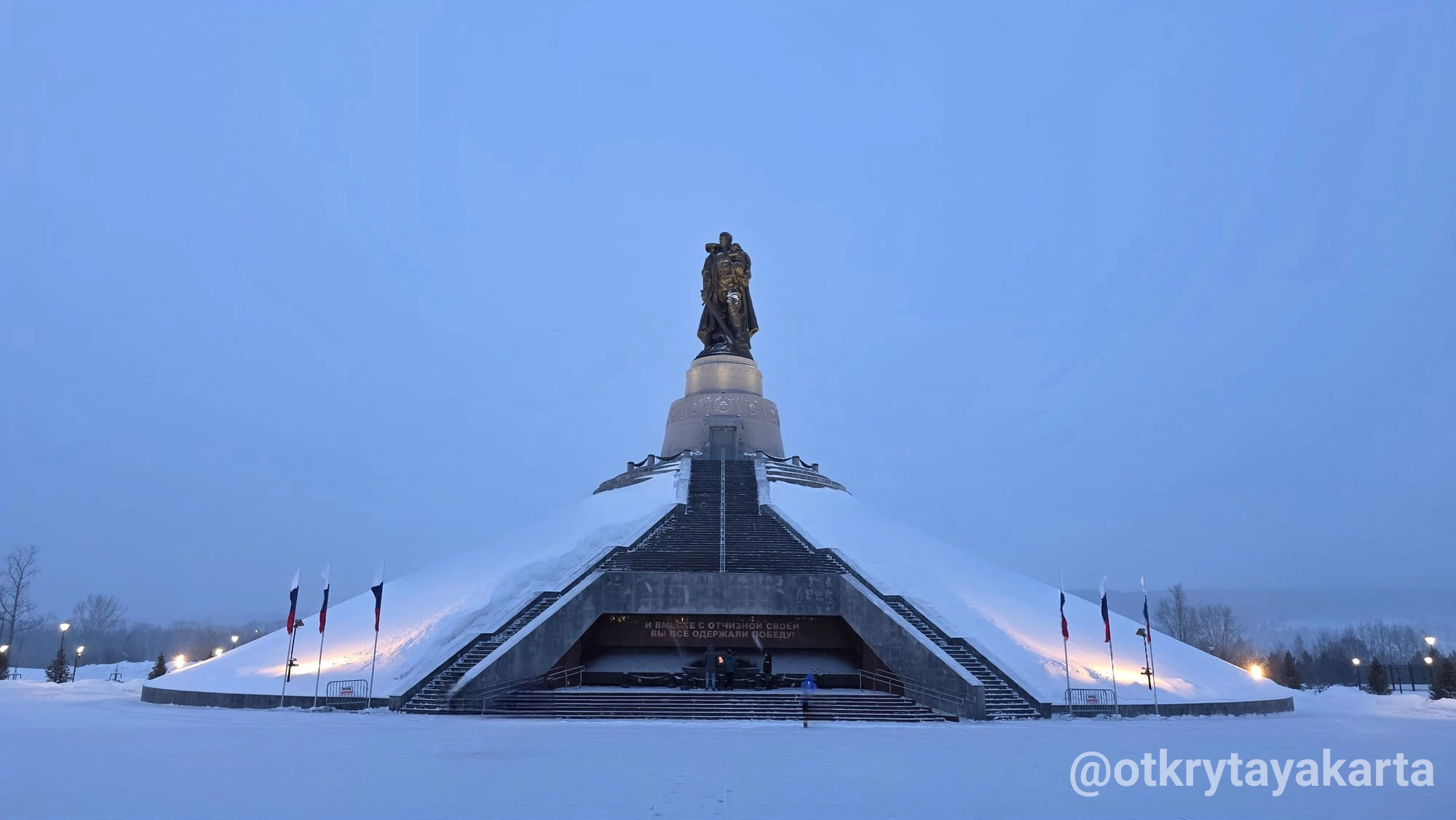 - Копию монумента установили в Кемерове с разрешения внука скульптора Евгения Вучетича. Строительство заняло 9 месяцев (оригинал возводили три года).