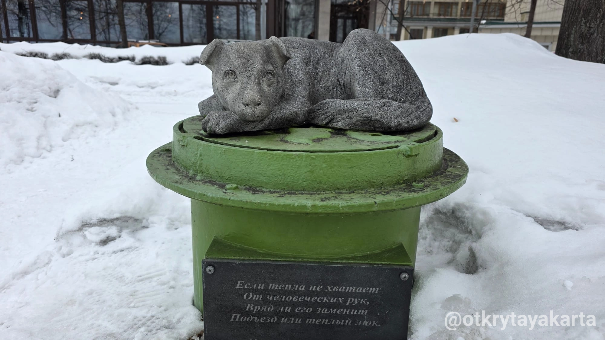 - памятник бездомной собаке и монумент «Труженица Томь» — символы заботы о городе и природе.