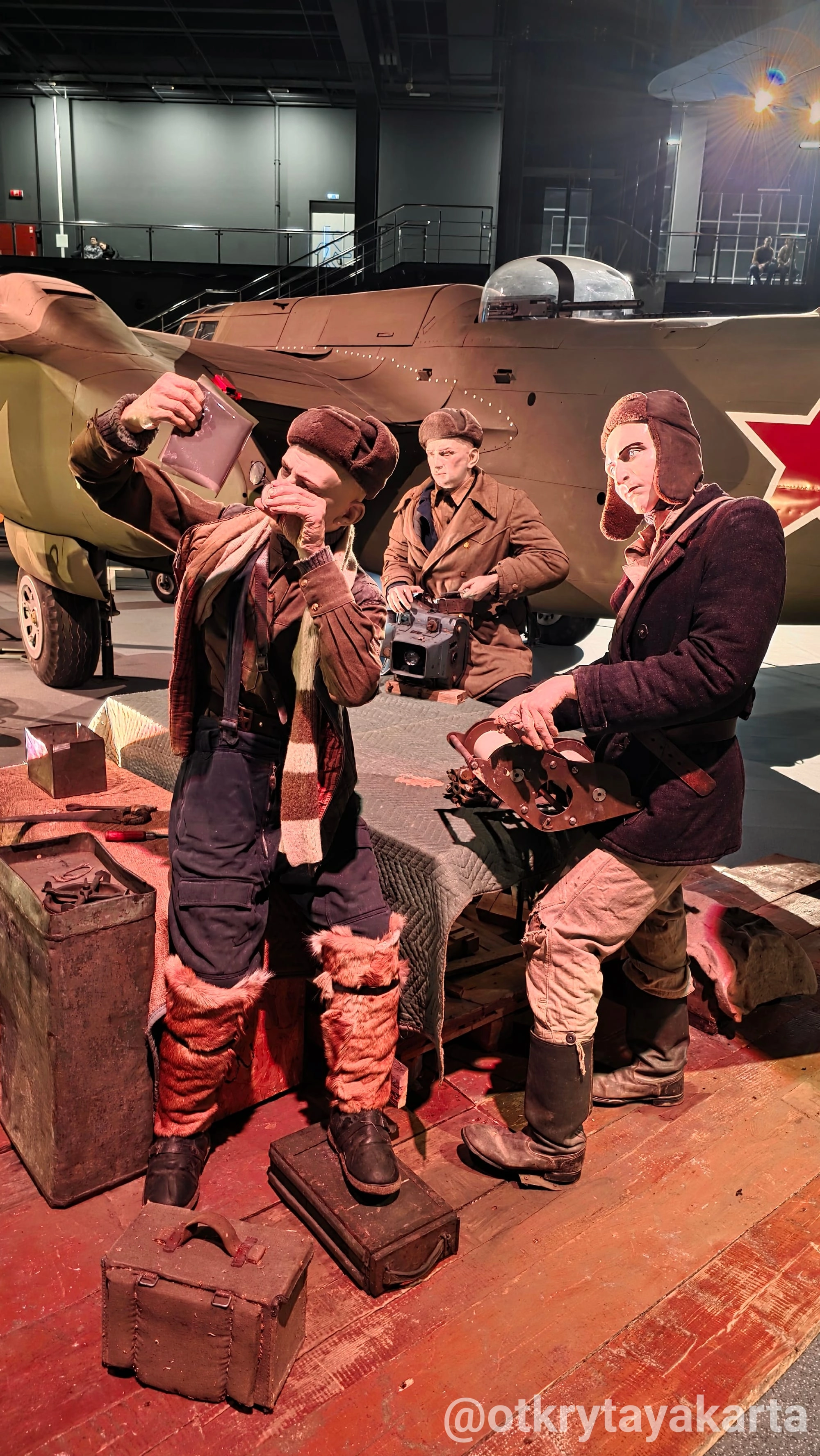 Главное отличие музея: здесь нет скучных рядов. Экспонаты сгруппированы в художественные композиции, воссоздающие быт военных аэродромов.