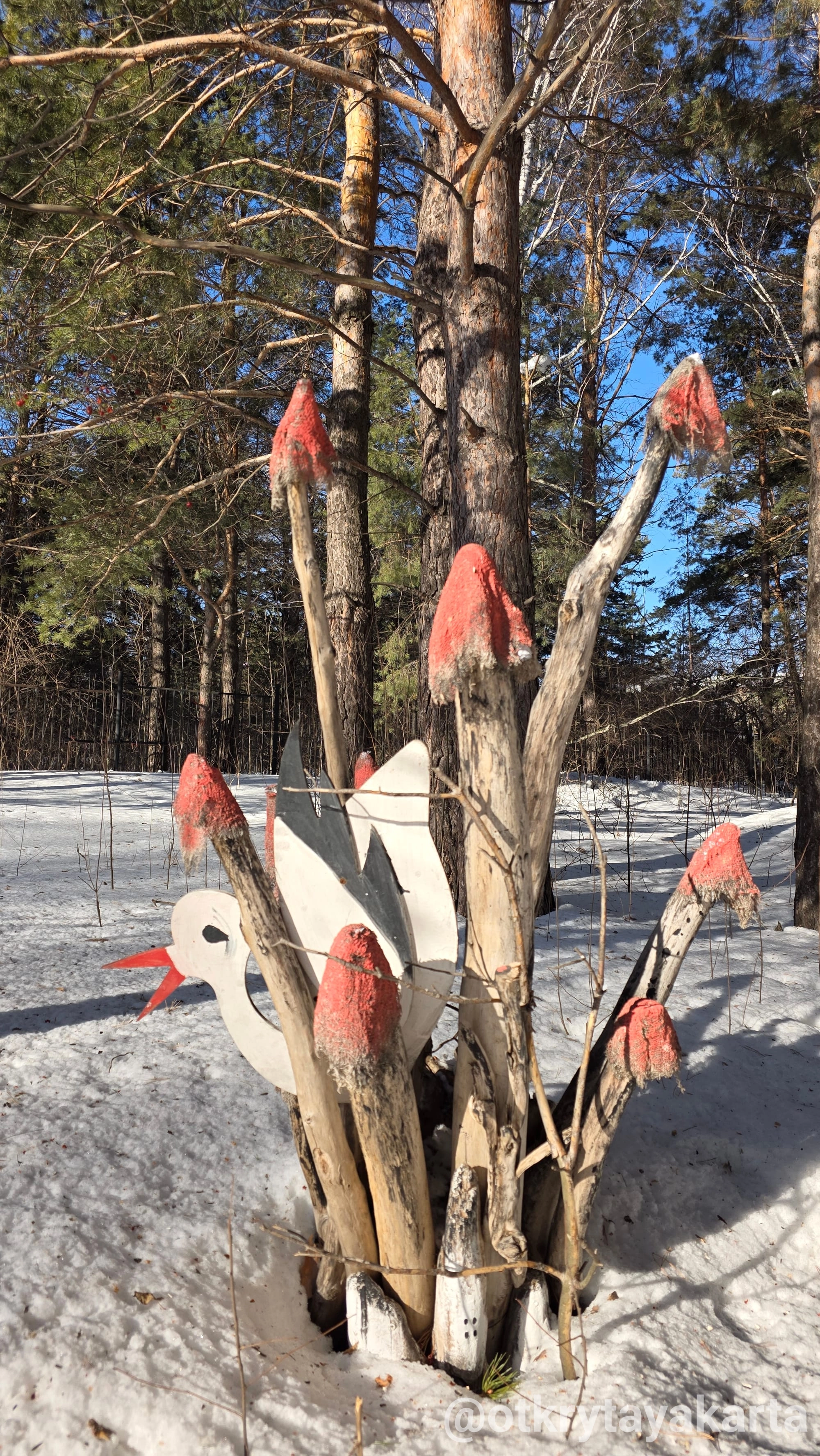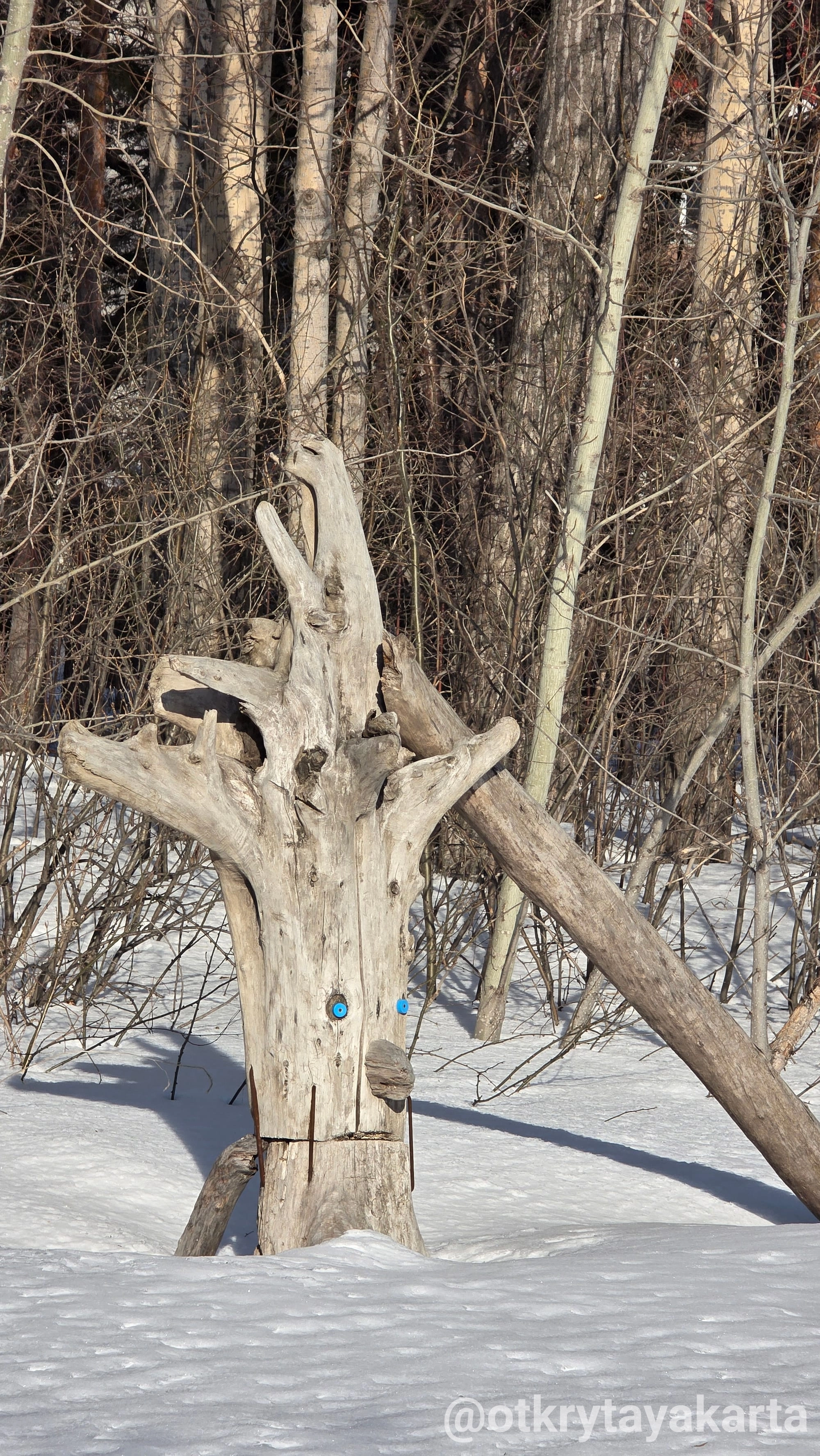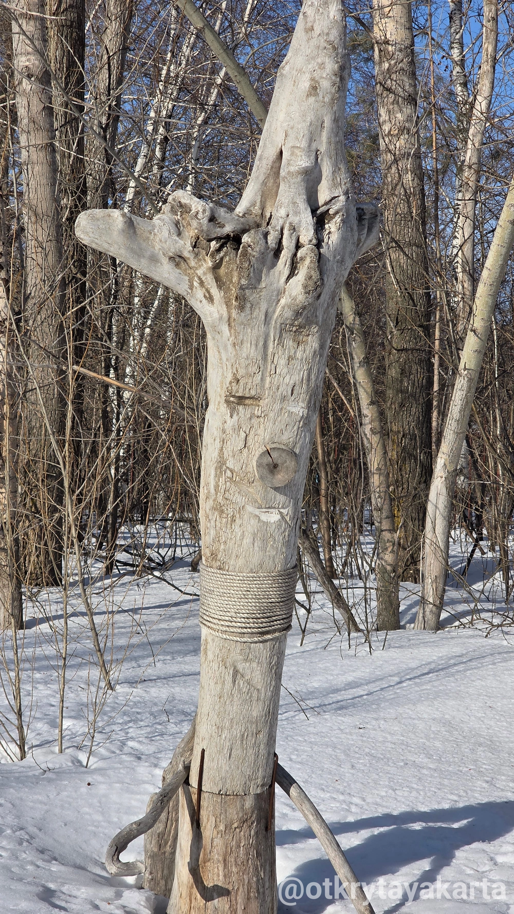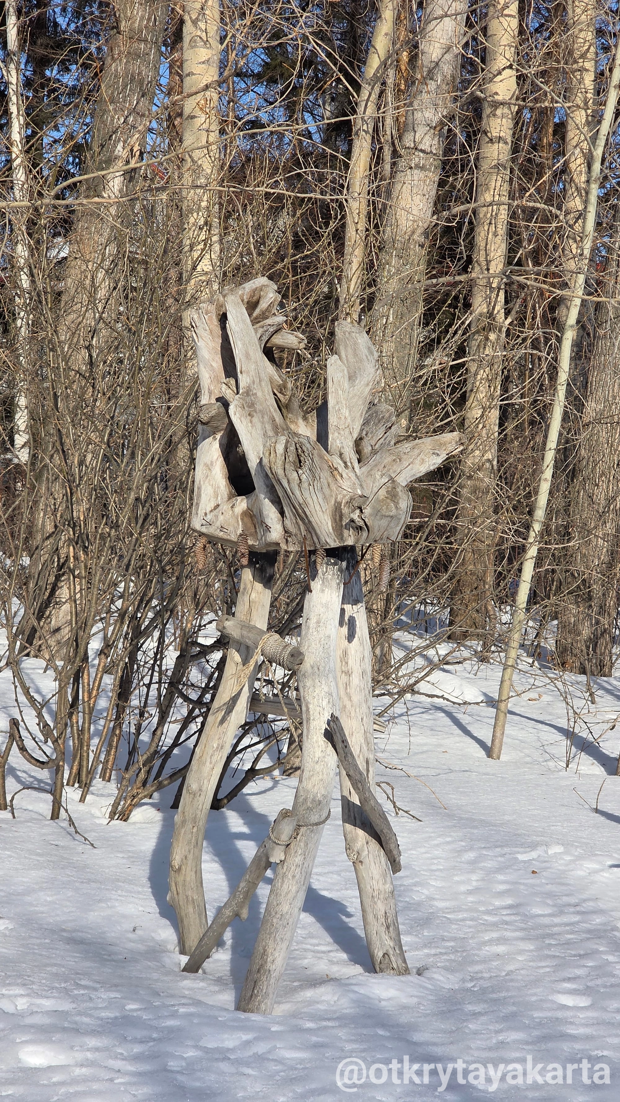 В парке «У моря Обского» уже два года живет удивительный маршрут. Местные проходят мимо, принимая скульптуры за коряги, а любопытные туристы ищут в них глубокий смысл. Я побывала на тропе зимой, по пути на фестиваль иглу. И поняла: сюда обязательно нужно вернуться, когда сойдет снег, чтобы разгадать все 28 загадок.