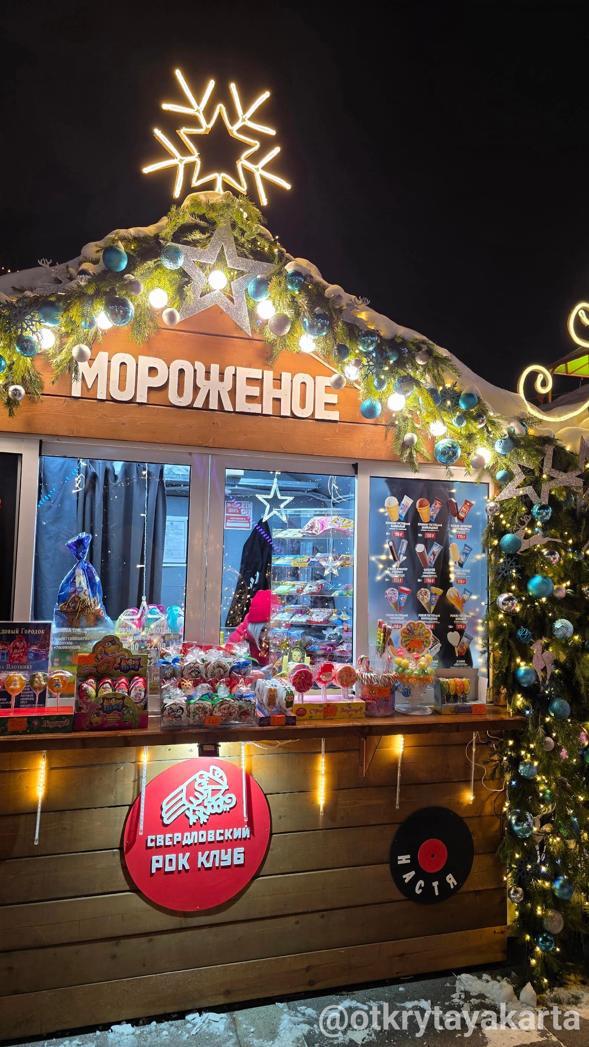 Ледовый городок с ярмаркой в концепции Года уральского рока
