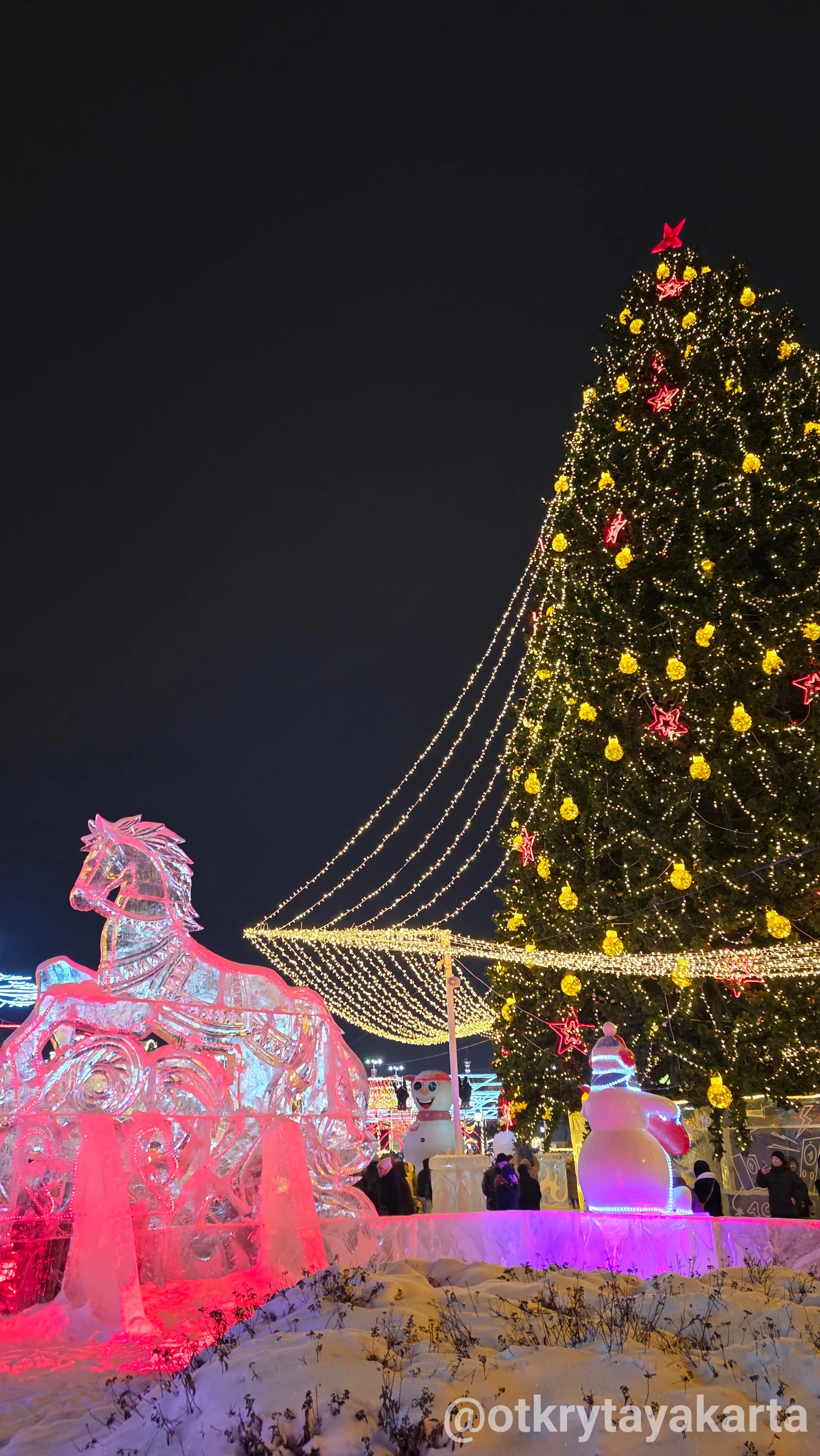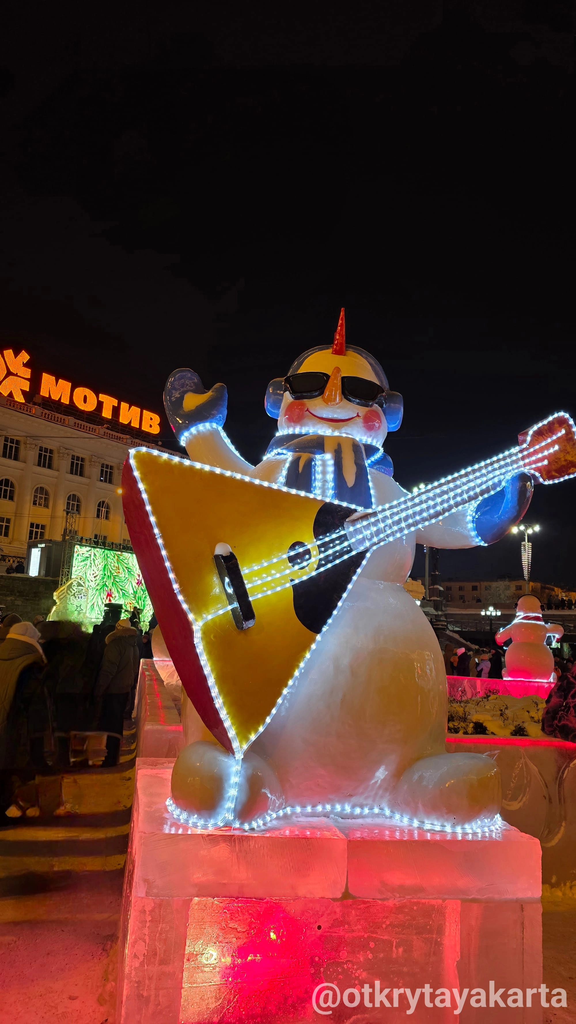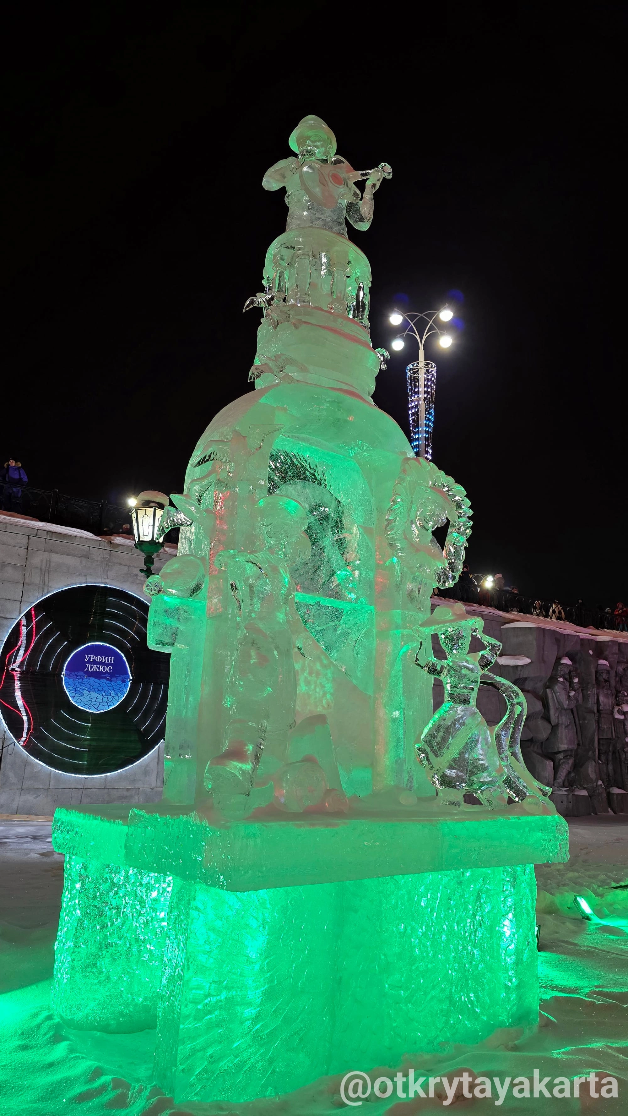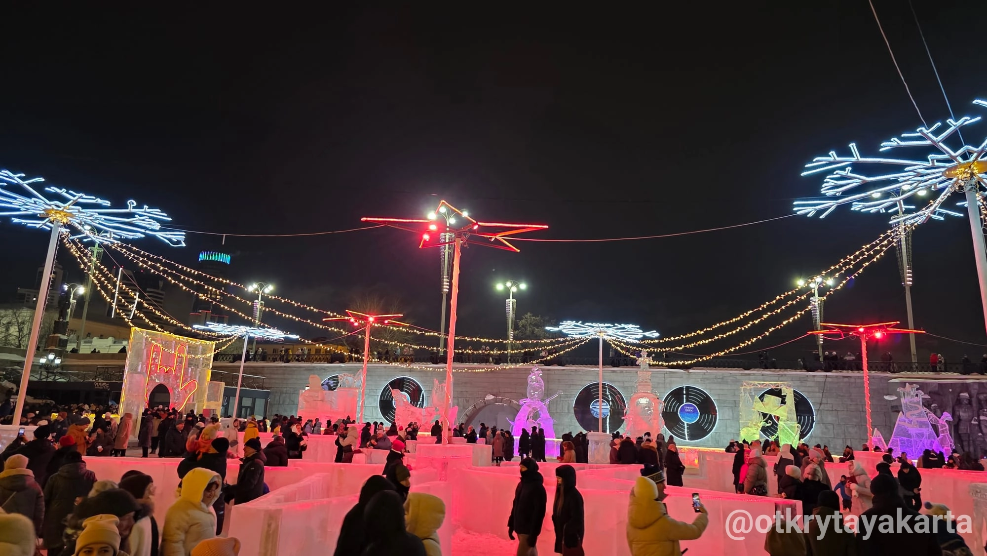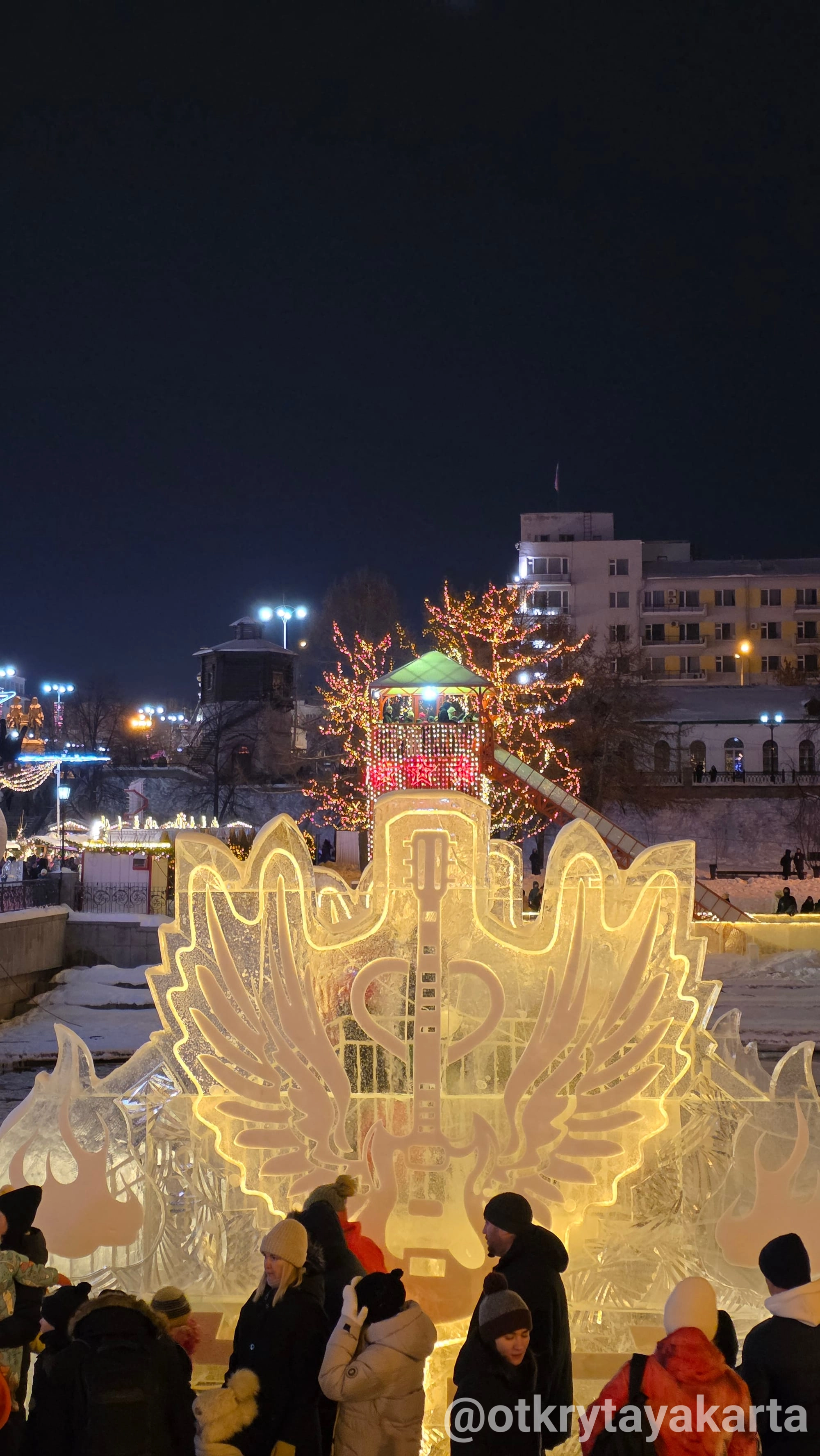 Но главным чудом стал ледовый городок, посвященный Году уральского рока. Его история строительства необычная: из-за аномально тёплой погоды лед для скульптур пришлось везти из Ханты-Мансийского автономного округа. Снеговики-рокеры в очках и с гитарами, лабиринт в форме слова «РОК» и огромная входная арка в виде знаменитой рокерской «козы» создавали совершенно фантастическую атмосферу. А историческую стену Плотинки украсили светящиеся виниловые диски с названиями легенд: «Наутилус Помпилиус», «Агата Кристи», «Чайф» — настоящая стена славы уральской музыки.