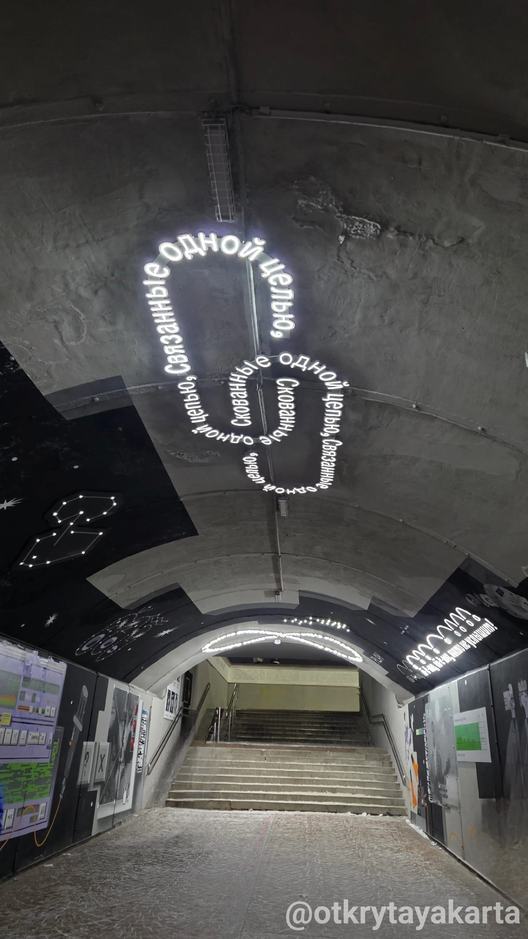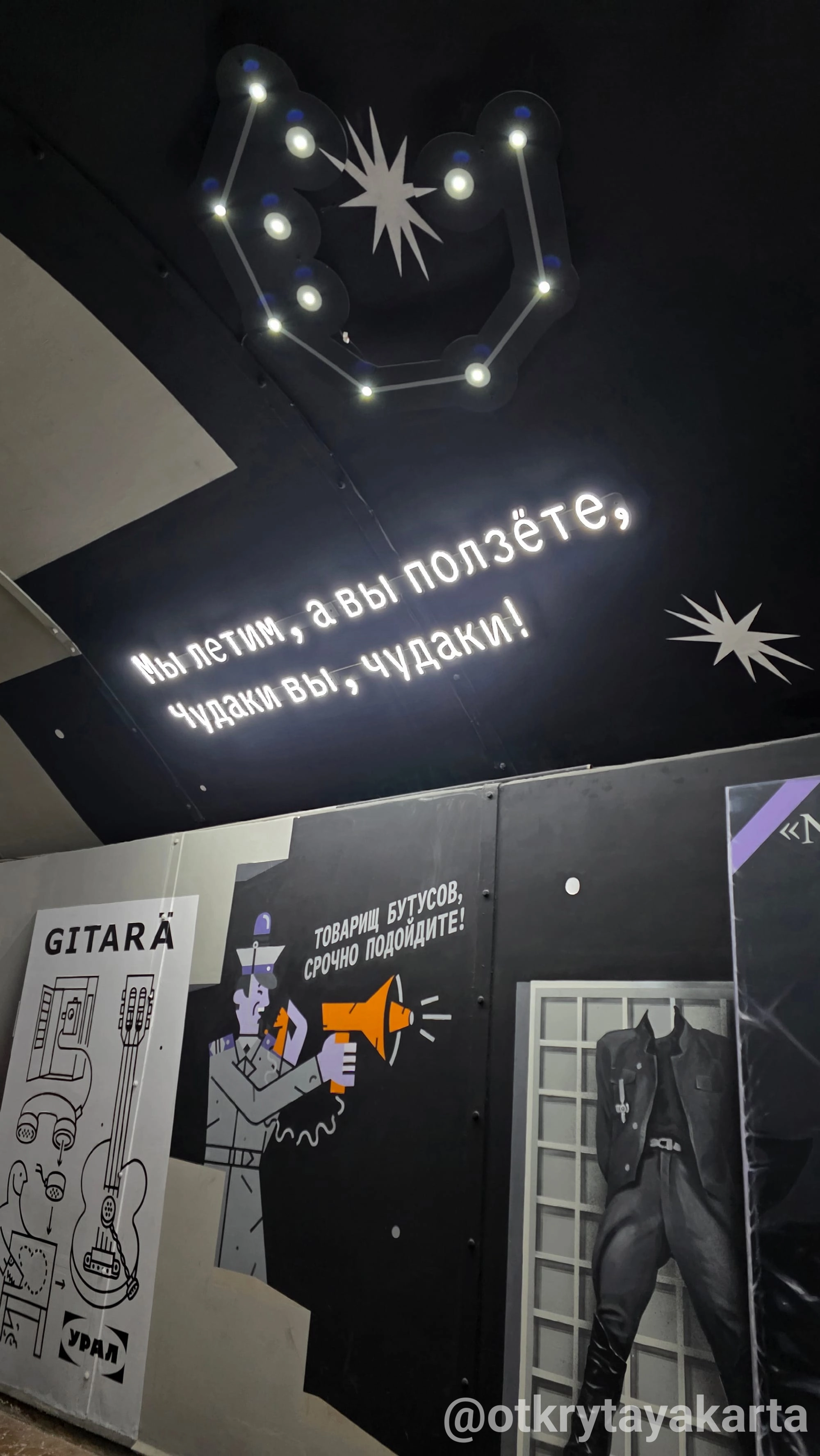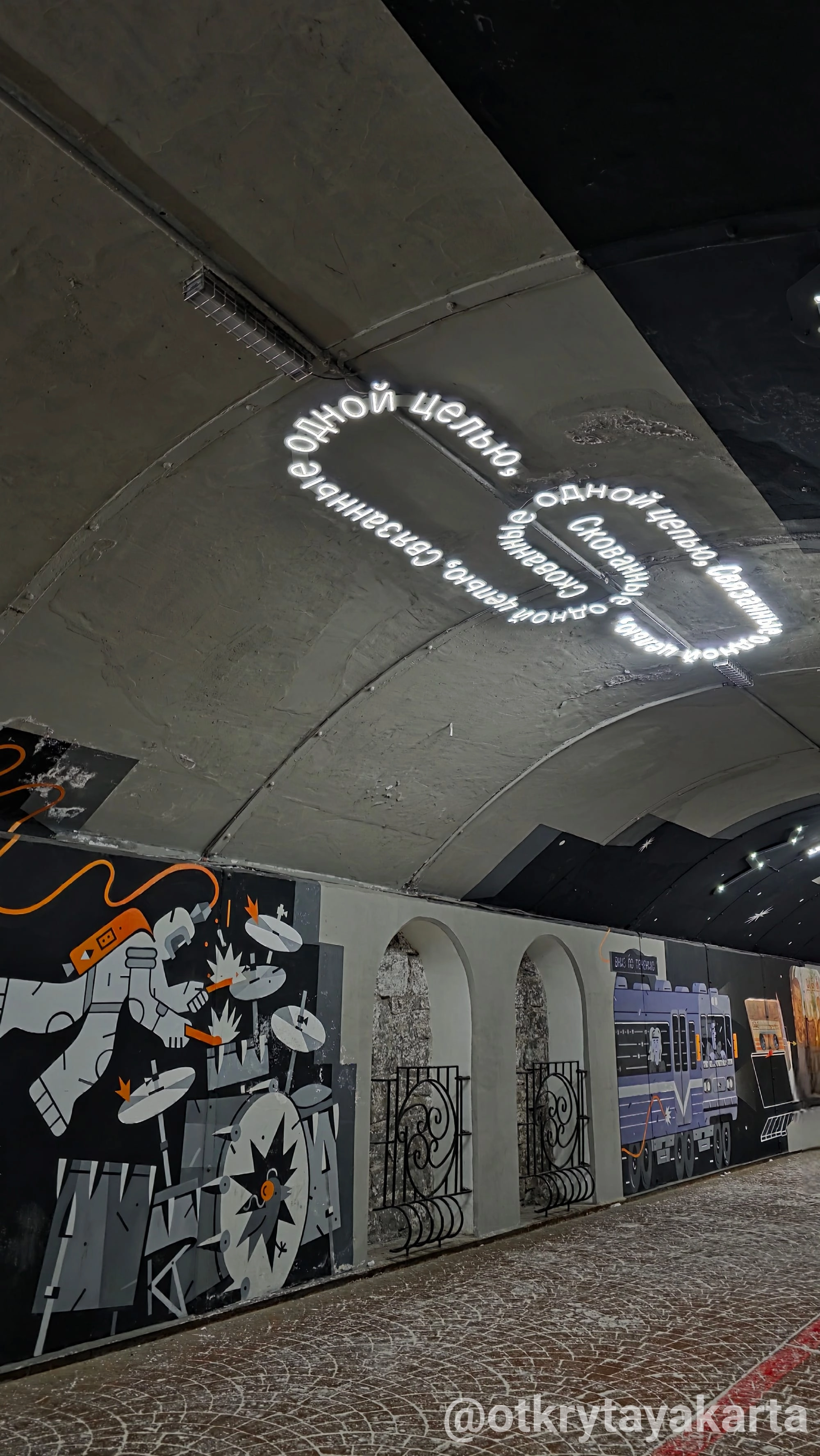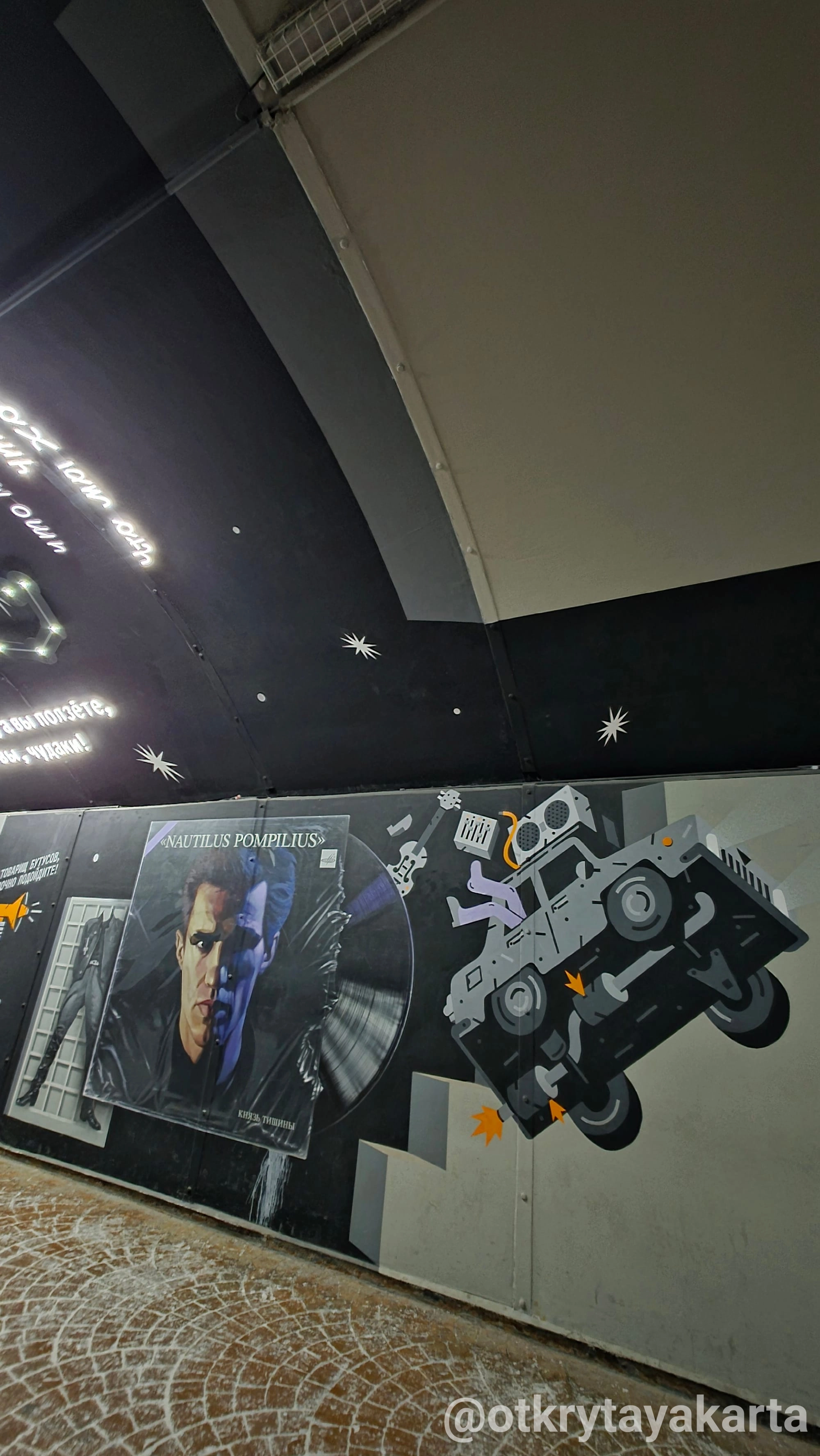 Очень интересным показался мне Арт-объект «Эта музыка будет вечной». Легендарный переход на Плотинке, который старожилы называют «Трубой», многие помнят как стихийный мемориал Виктору Цою, расписанный фанатами. В 2023 году, после ремонта, здесь появилось новое арт-пространство, посвящённое Свердловскому рок-клубу. Художники создали современную инсталляцию с отсылками к «Чайфу», «Агате Кристи» и другим культовым группам. На стенах — светящиеся цитаты из песен и реальные истории из жизни музыкантов 80-х, например, о том, как для прокачки гитары ломали таксофоны. Центральная тема объекта — эволюция того, как люди слушают музыку: от виниловых пластинок до цифровых потоков. Это место стало современной летописью уральской рок-культуры. Место для Цоя тоже нашлось. Создан: 2023 г. Авторы: Андрей Колоколов, команды SPEKTR и Hot Singles in Your Area..