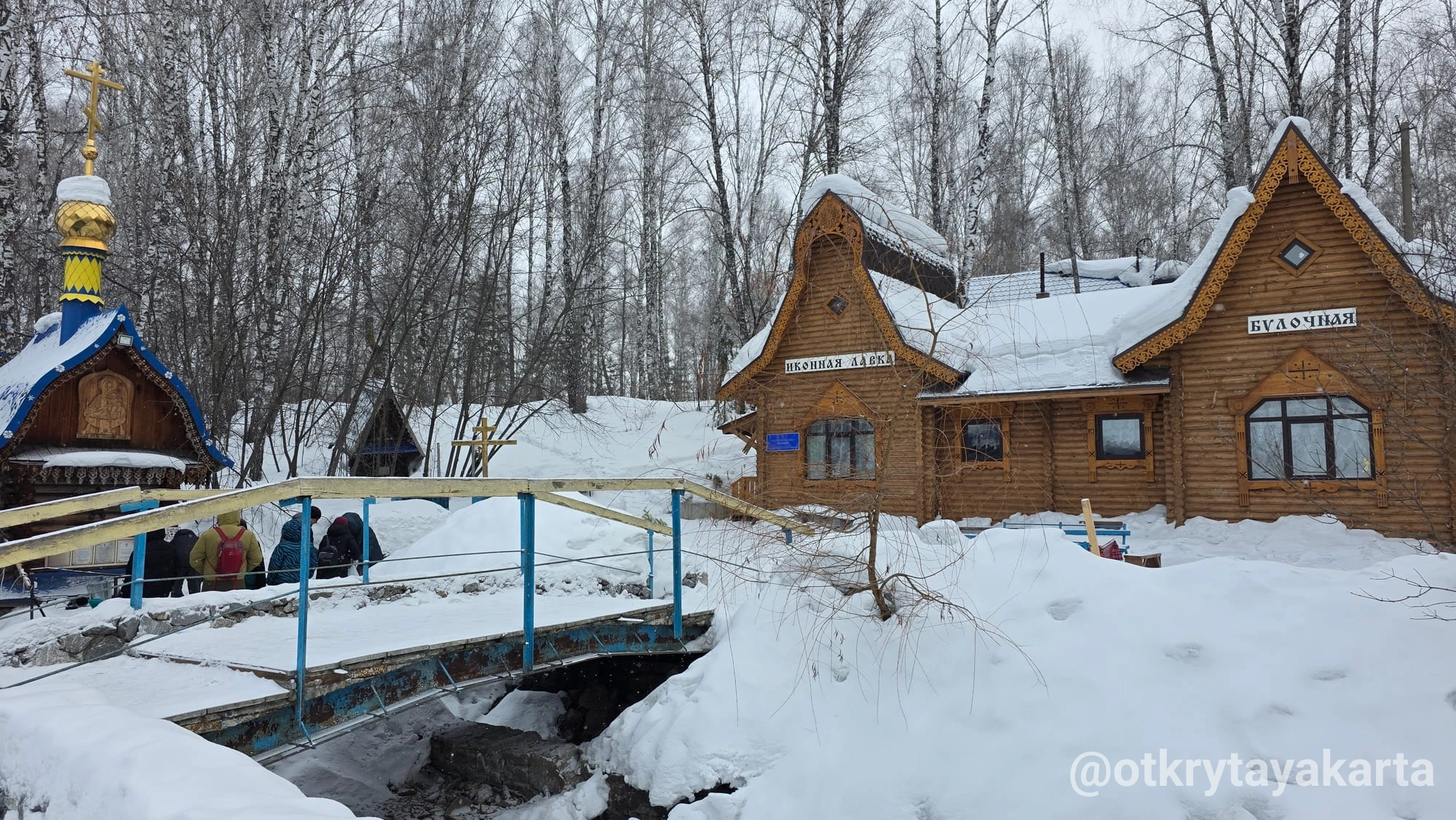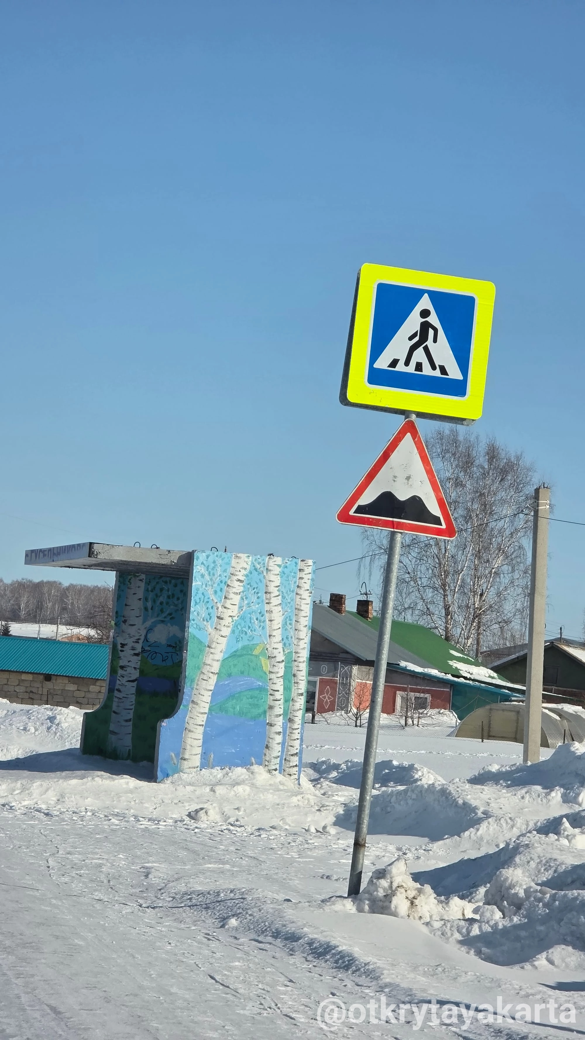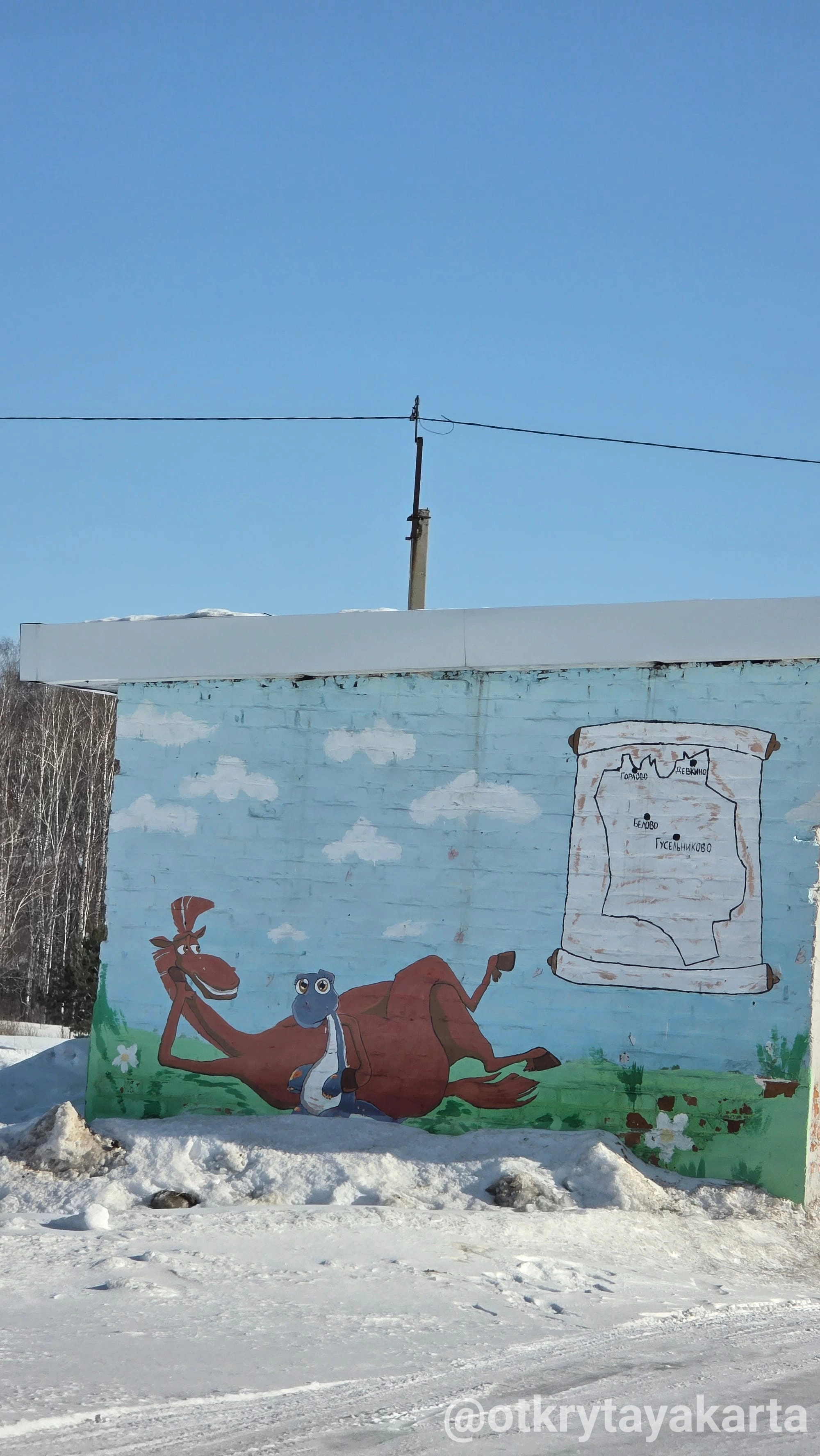 В Белово к водопаду не поехали — читала, что зимой там проезда нет. Остановка у них зато весёлая, по мотивам русских сказов. В Гусельниково тоже.