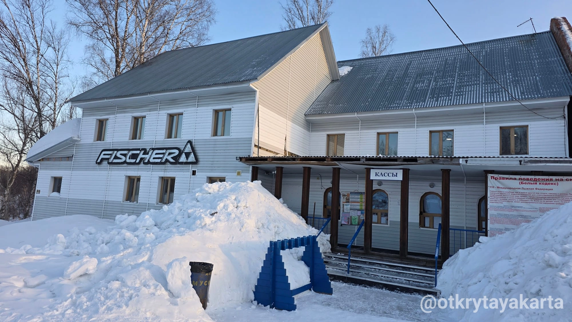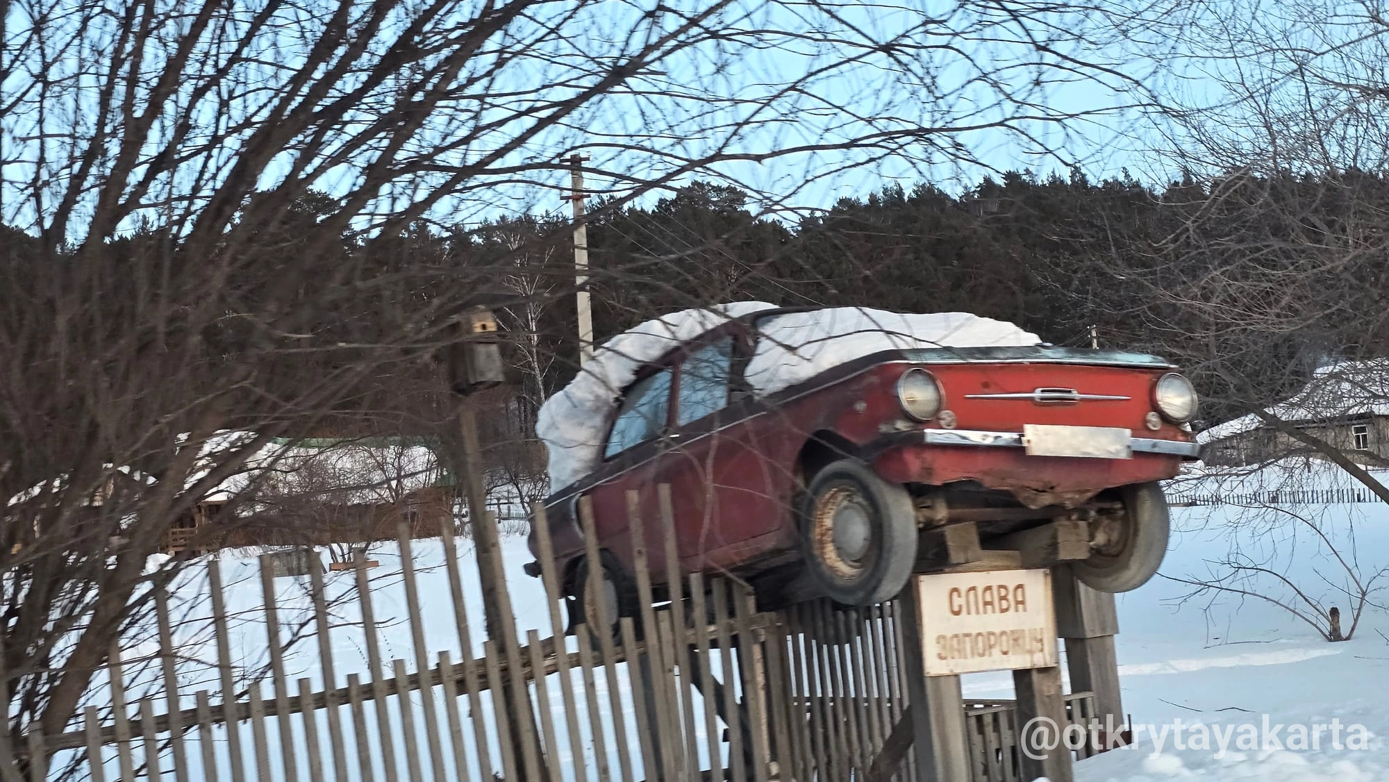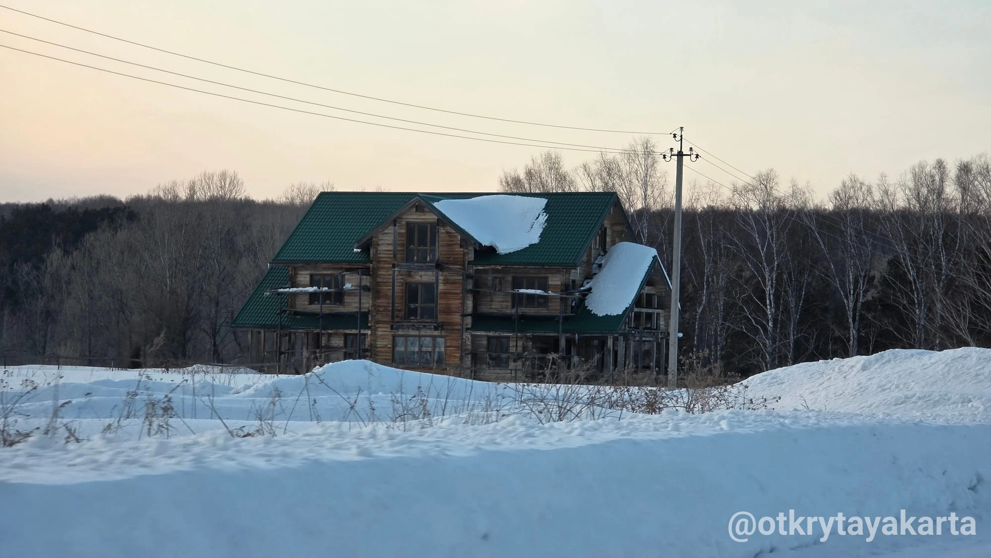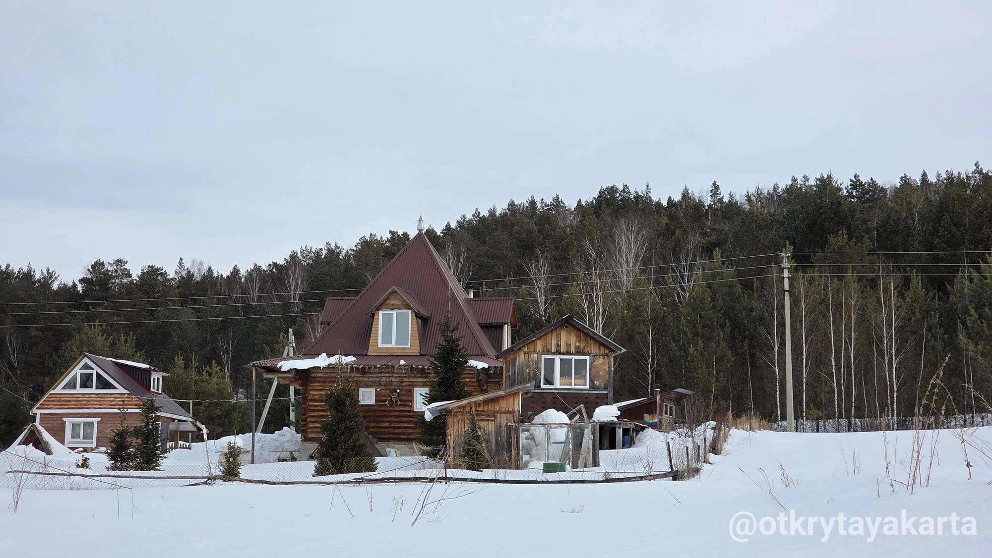 На другой день ездовые собаки в Форте Хаски, потом Зверобой. Про него пост уже был. После Зверобоя ехали через деревню, заметила какое-то интересное общественное пространство слева. На картах не отмечено нигде, дороги тоже не было к нему по снегу. Поэтому жду весны, чтоб поближе подойти.