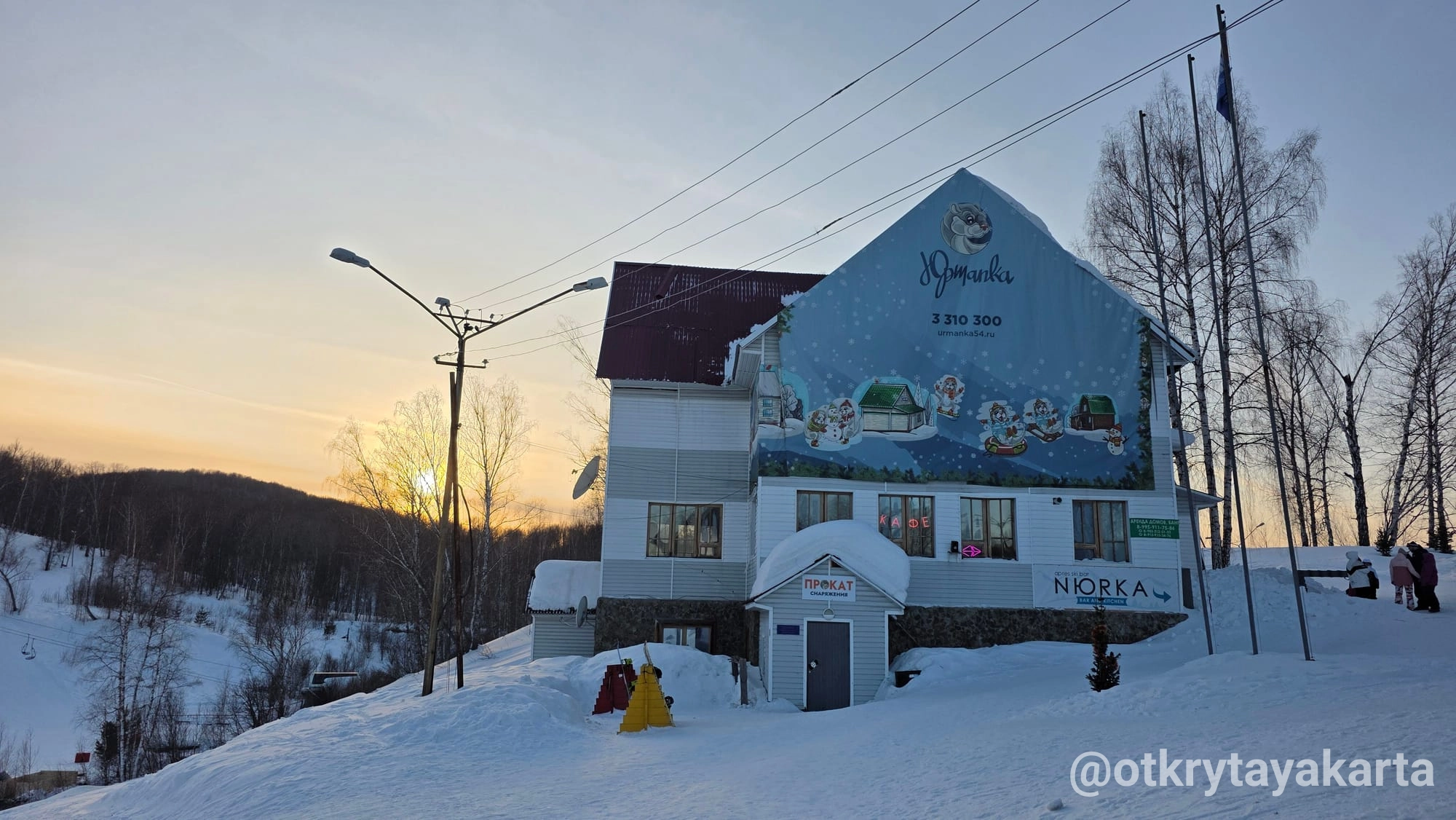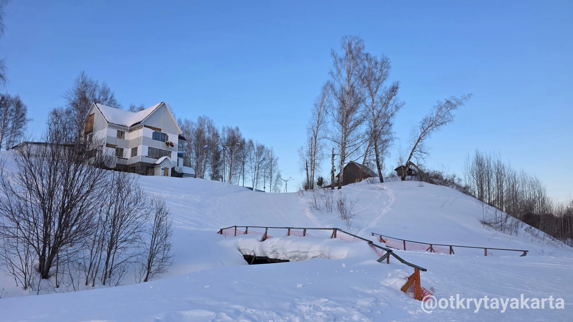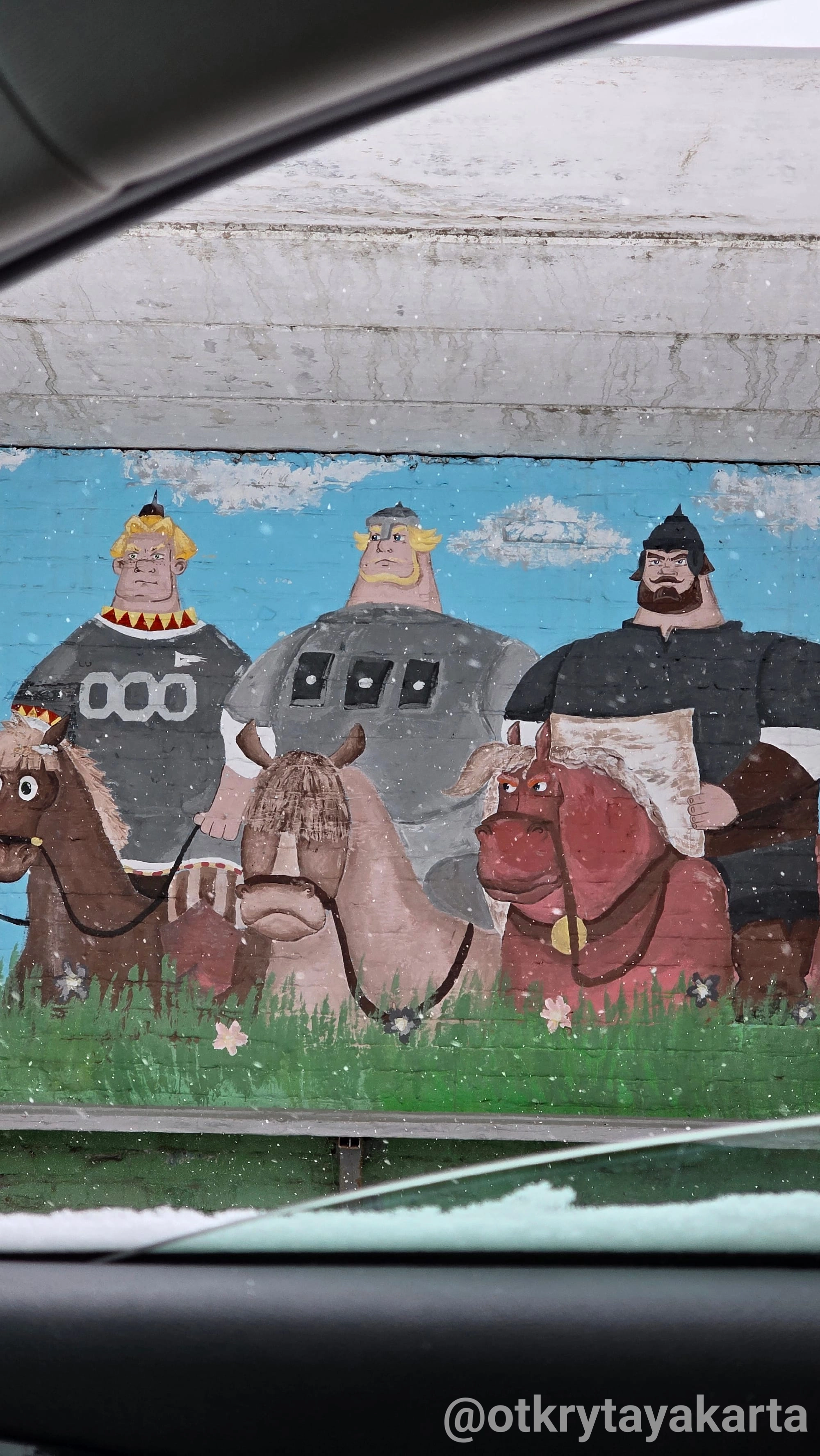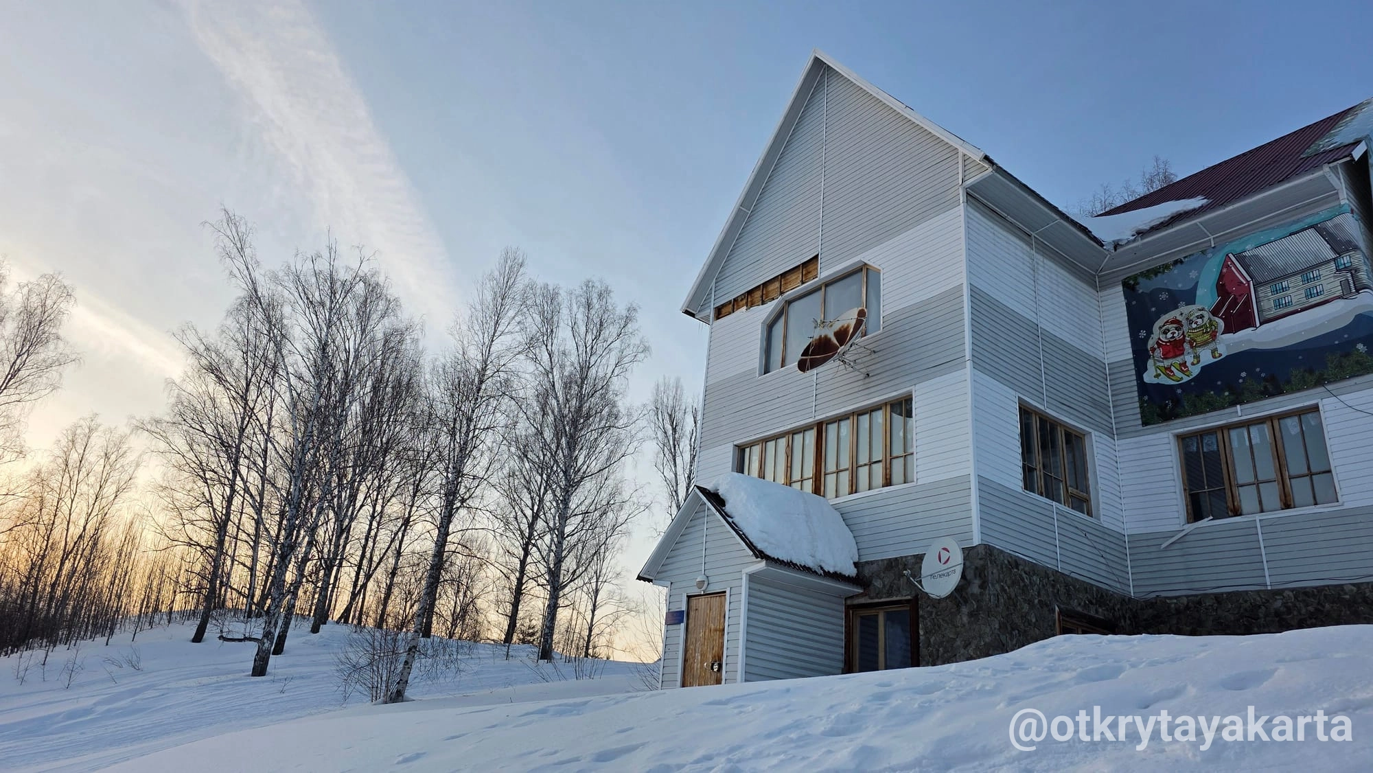 По пути домой проезжали музей. Или арт-парк, если по-новому В нём мы уже были в прошлом году, упоминала в тг-канале. Поэтому только вход посмотрели и поехали дальше. Каменистая степь скрыта под снегом, пещера тоже. Тропинки никакой на гору не было, чтоб на деревню с высоты посмотреть.