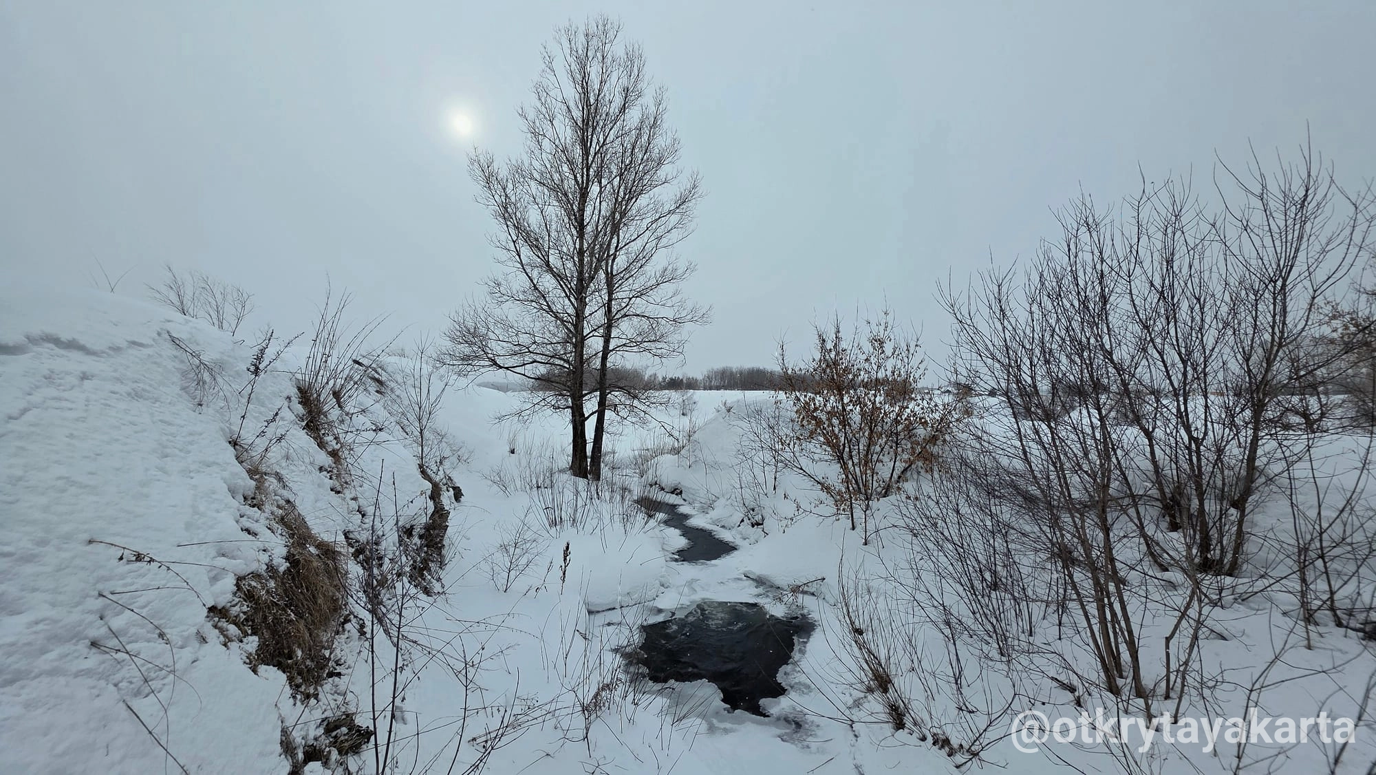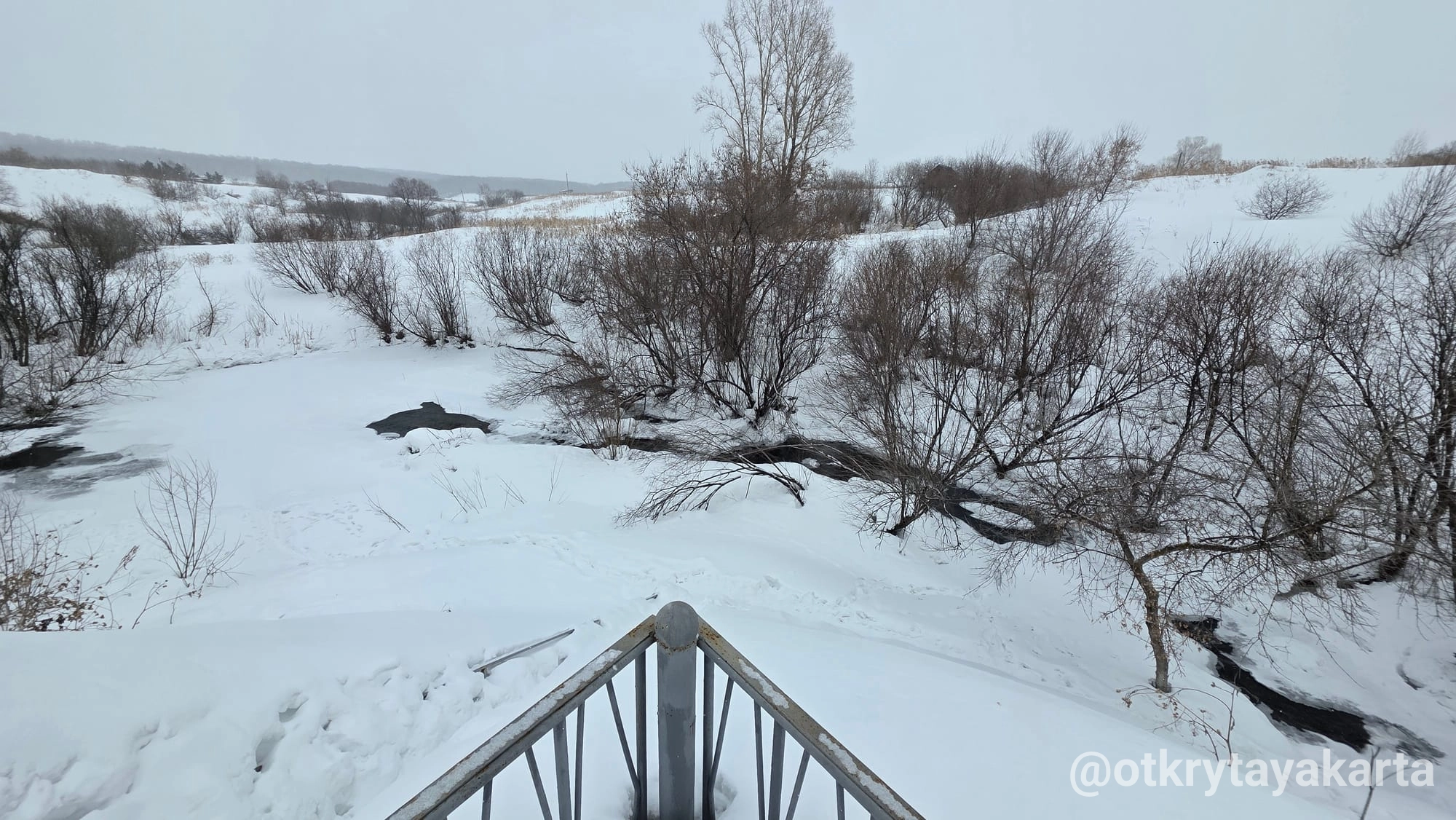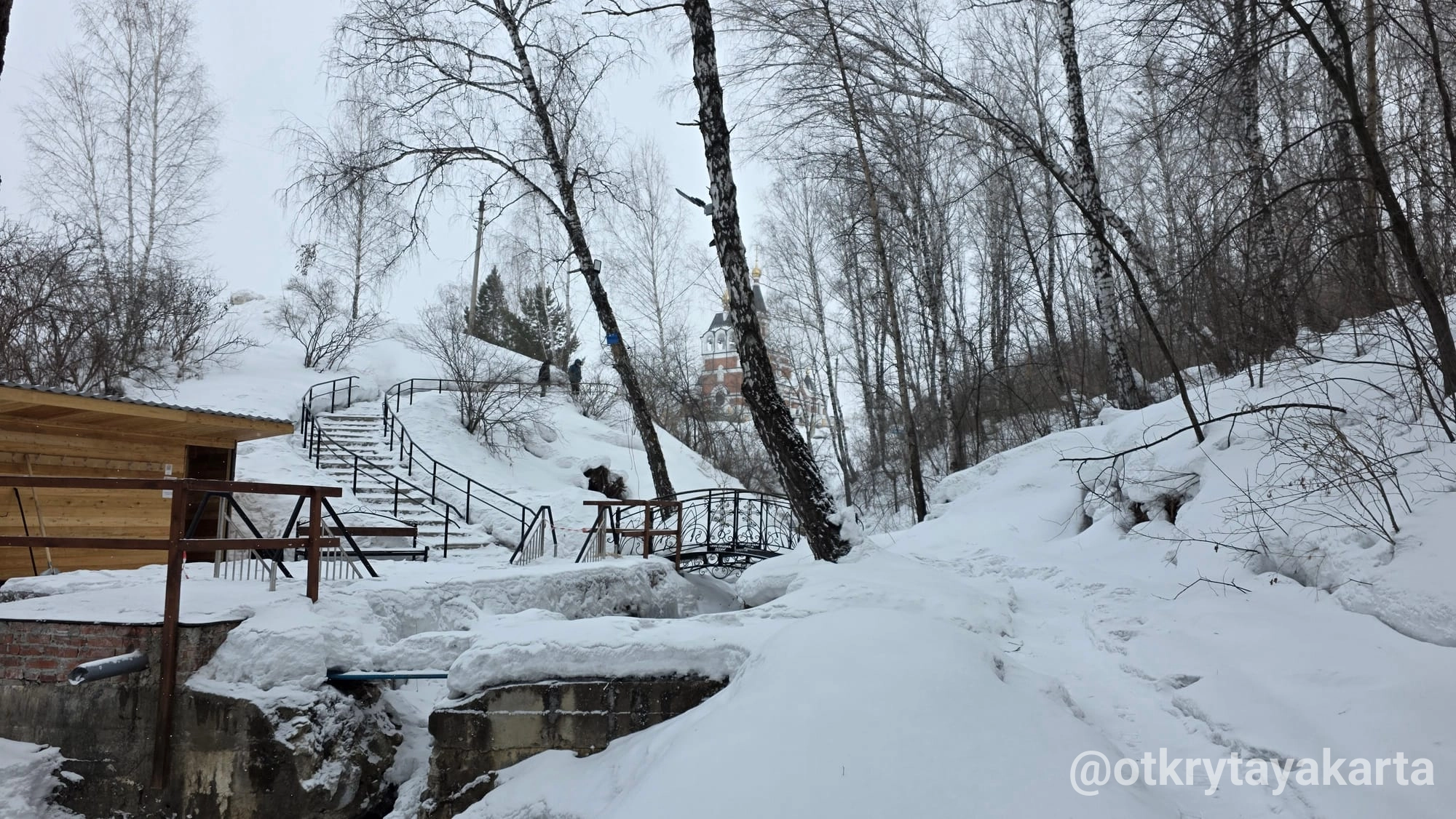 Водопад рядом. Со снегом приходится угадывать, где здесь что. Без снега конечно больше интересного.
