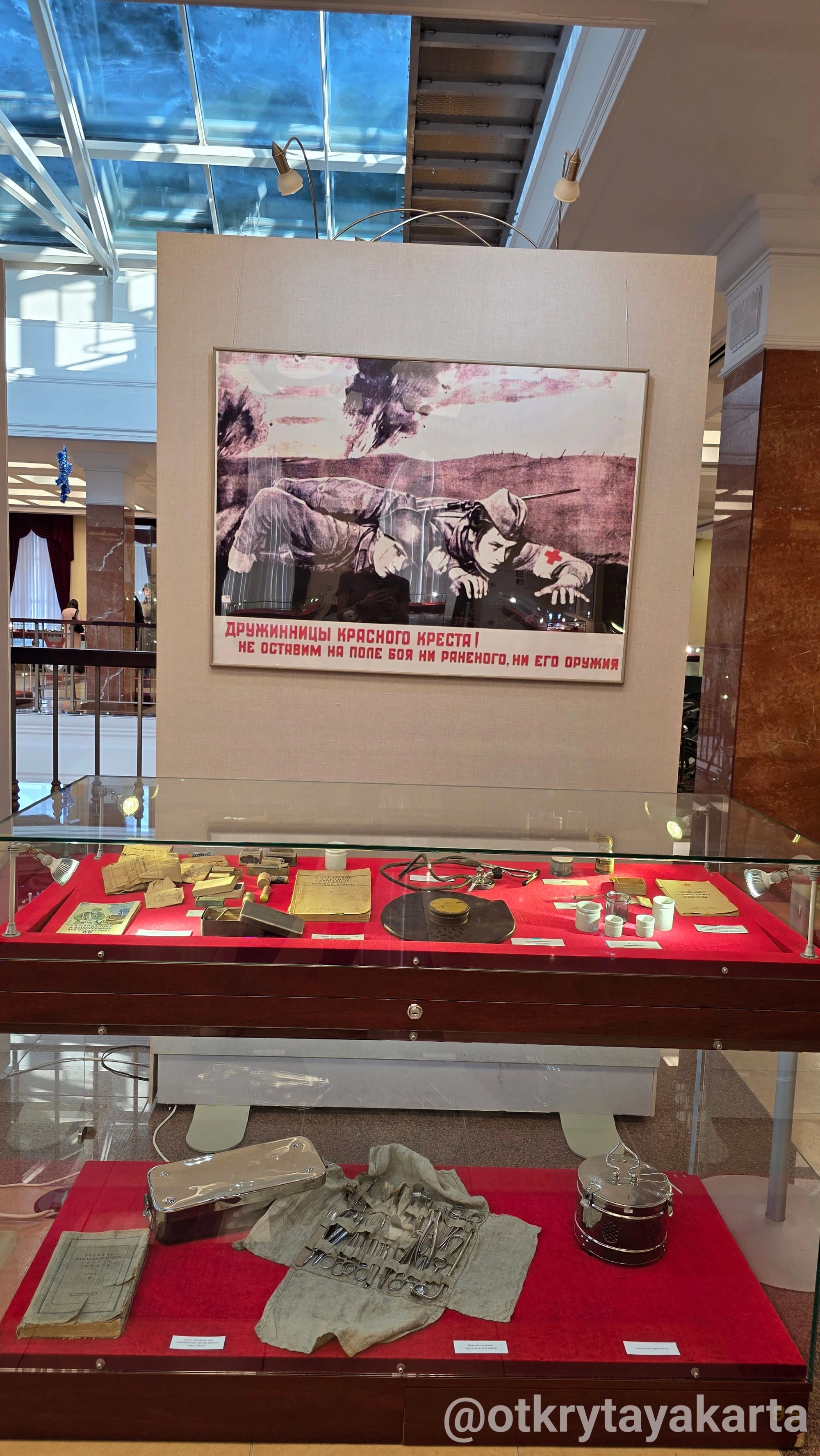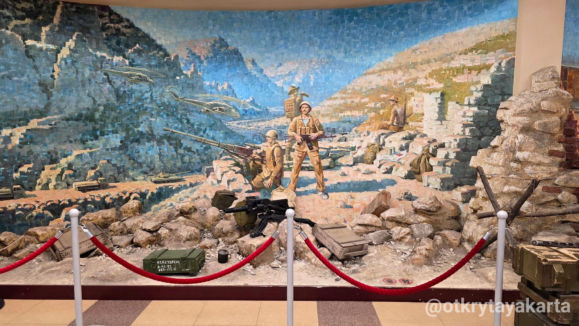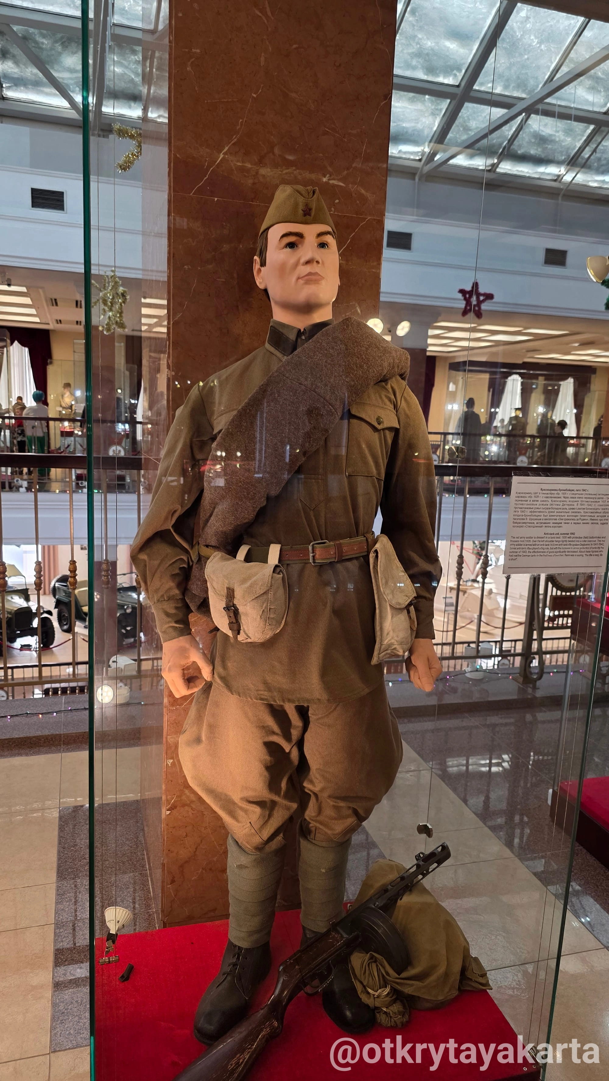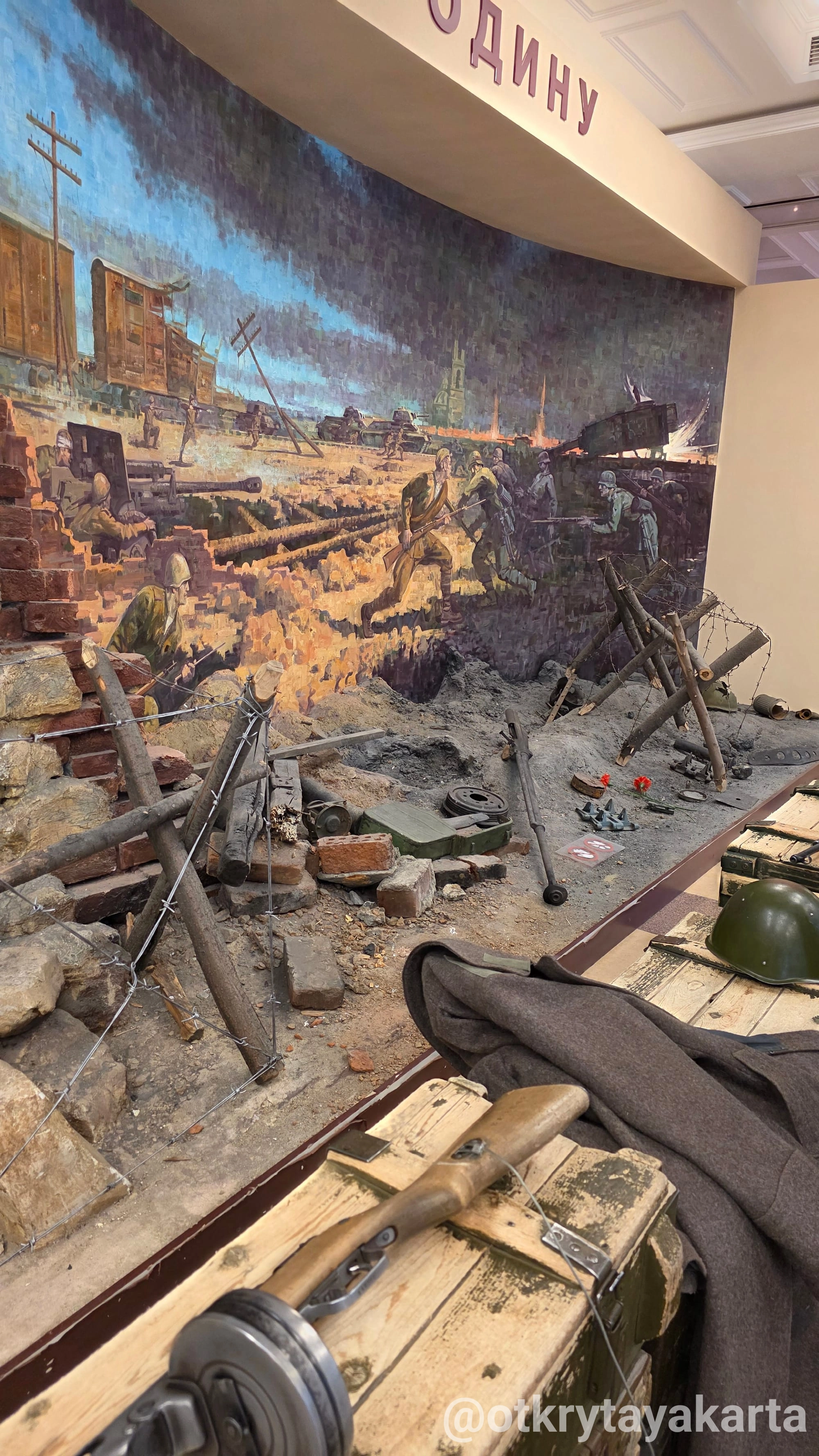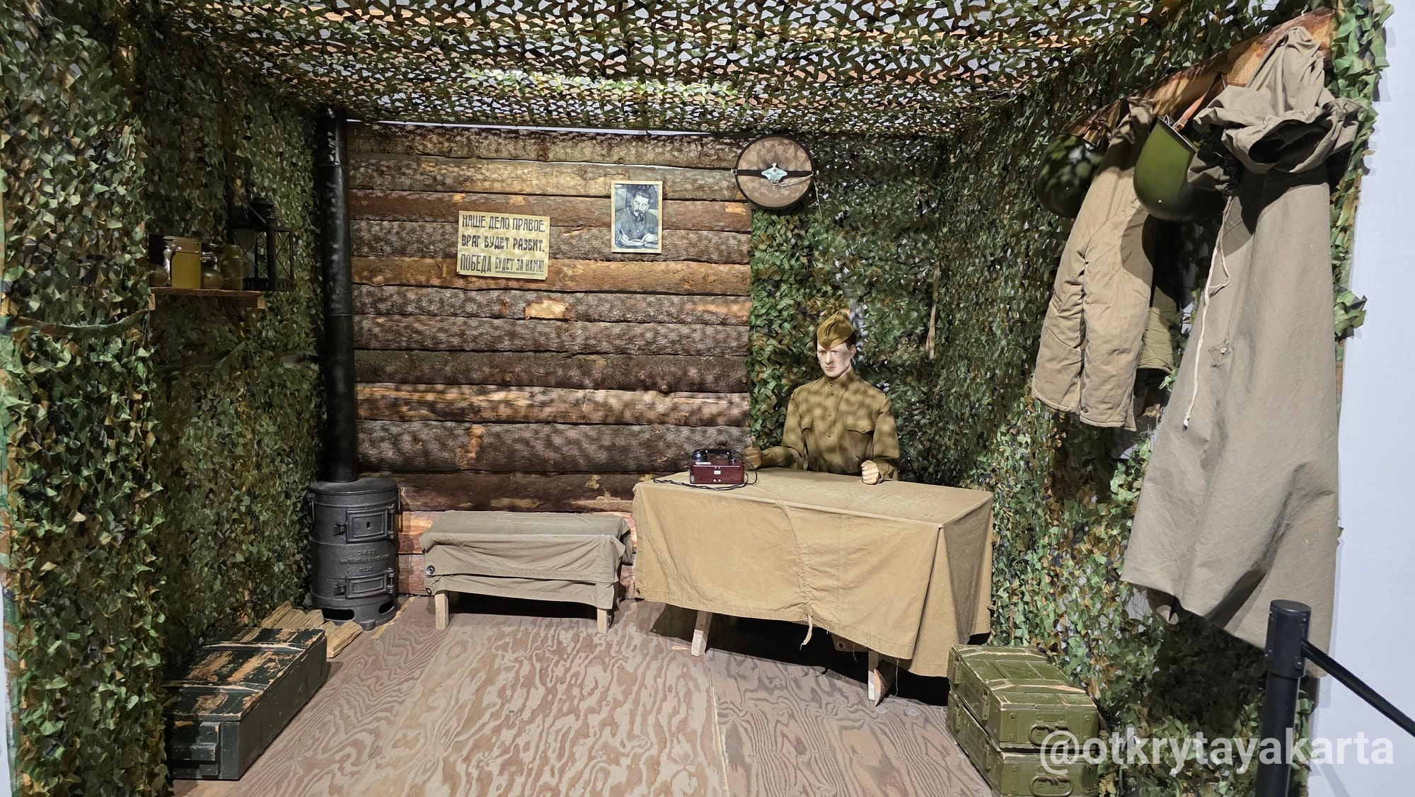 Есть интересные фотозоны, где можно примерить на себя шлем или шинель, и даже подержать в руках настоящее оружие. Всё сделано максимально продуманно и реалистично.
