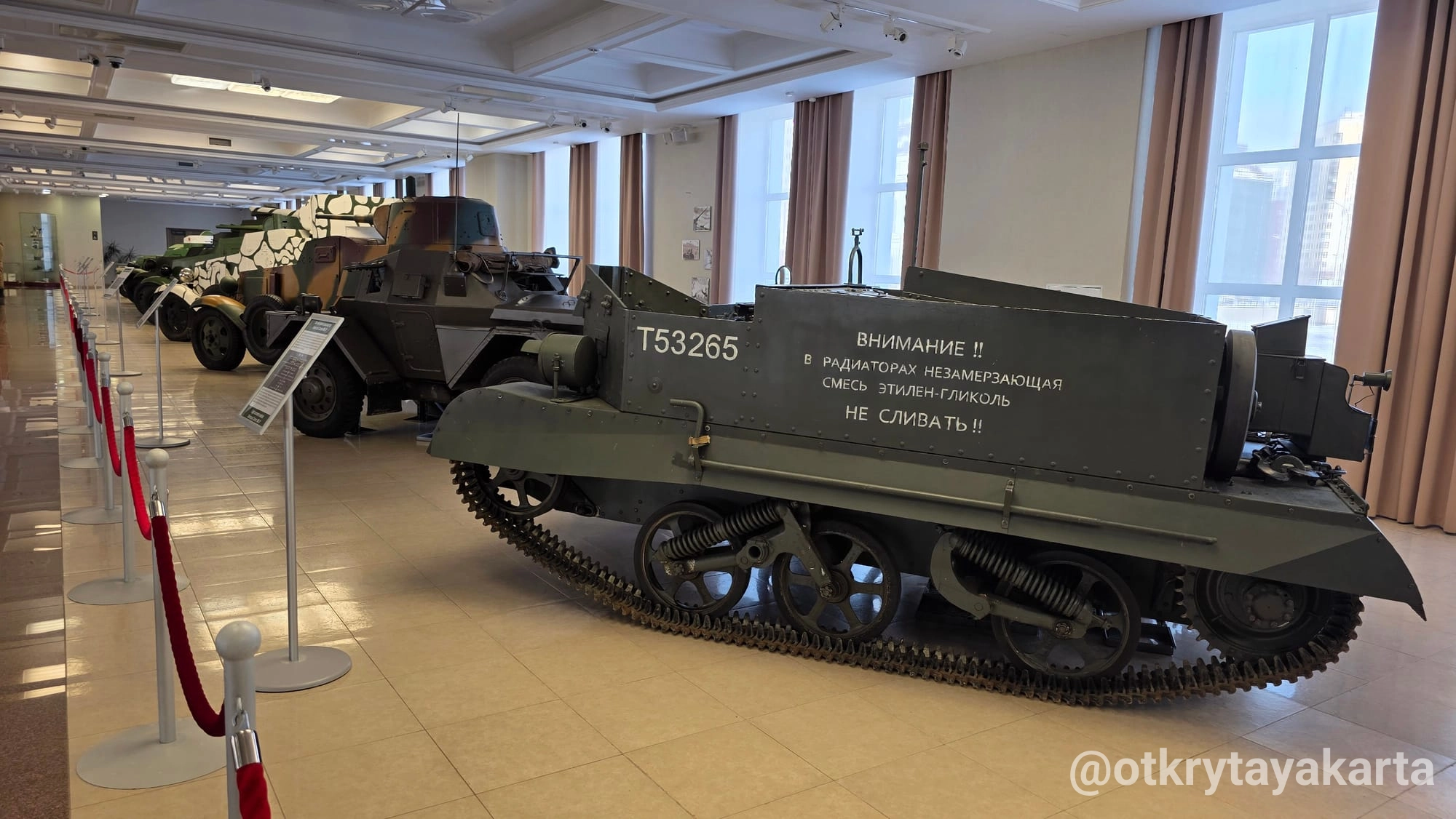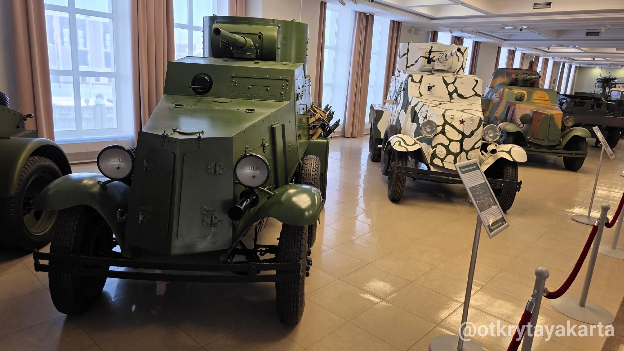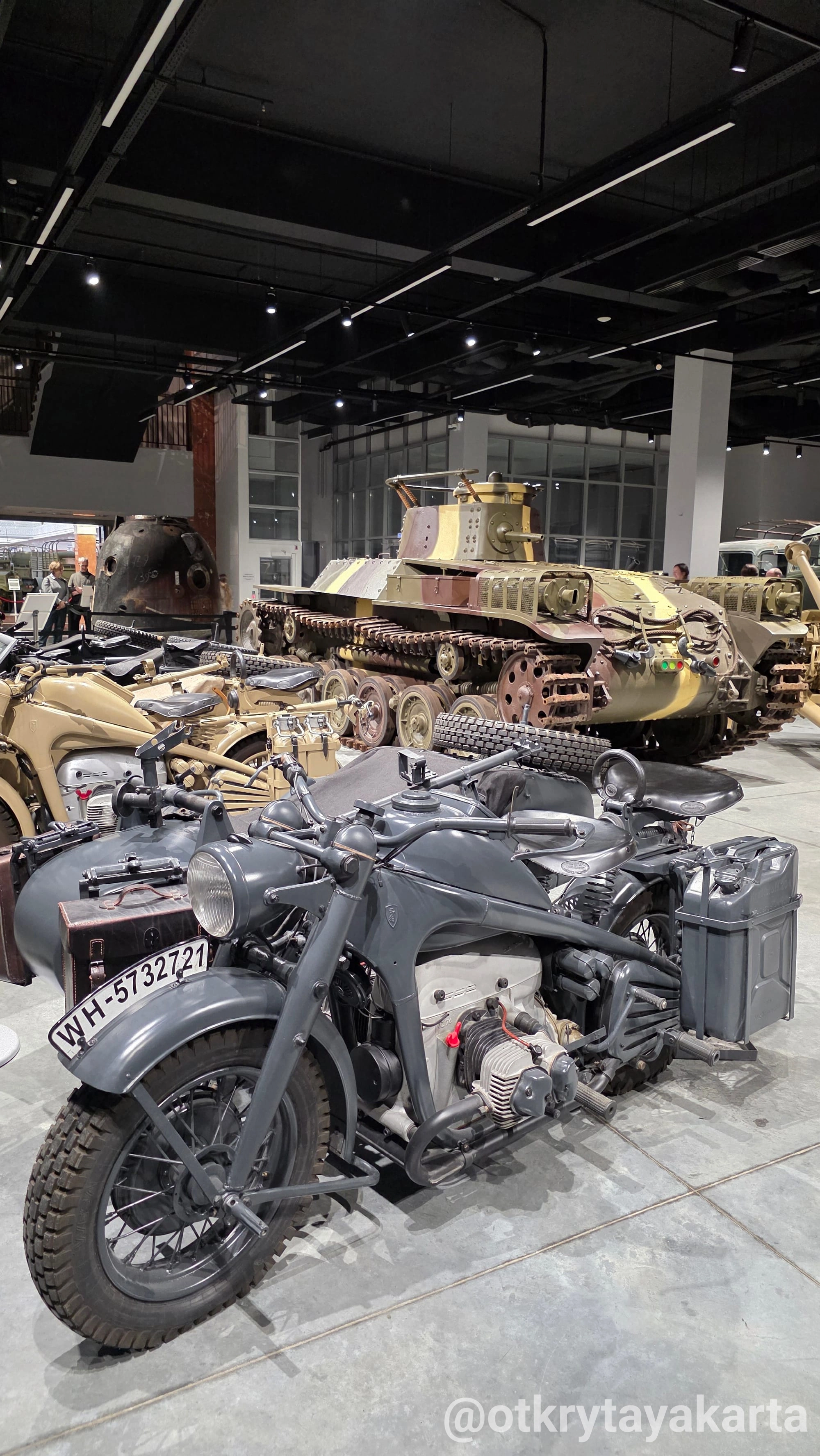 На первом этаже несколько залов с разной военной техникой. Там же можно отправить письмо с маркой, сыграть в игру "Призрак на броне", оставить отзыв о музее в стилизованном ящичке.