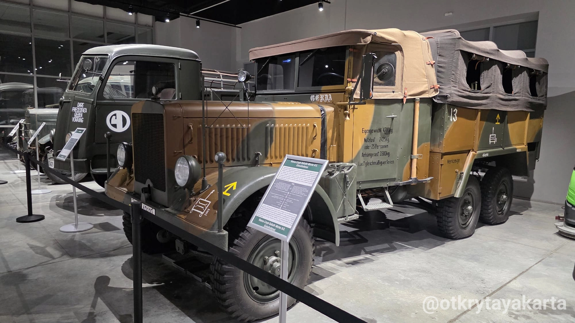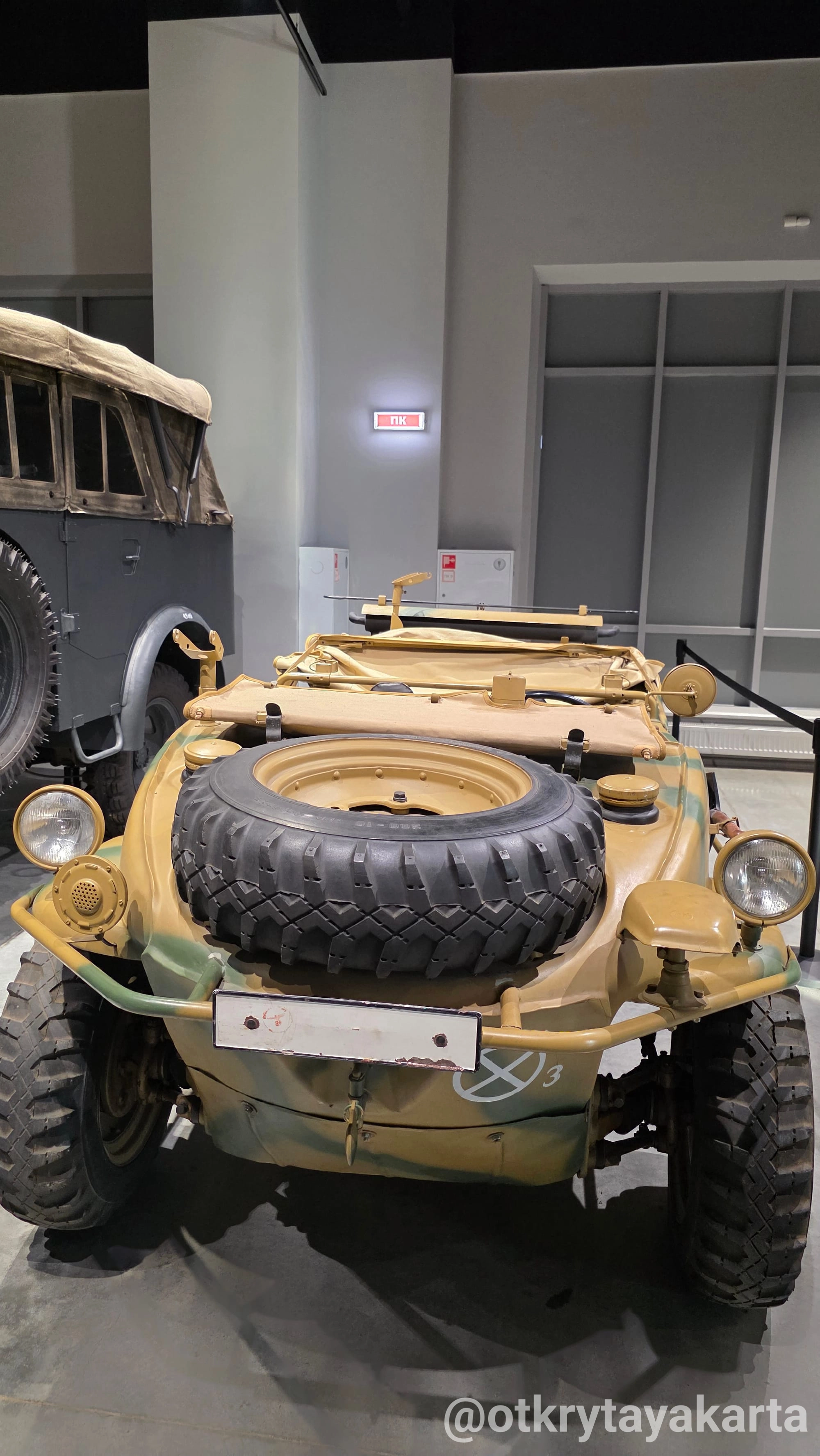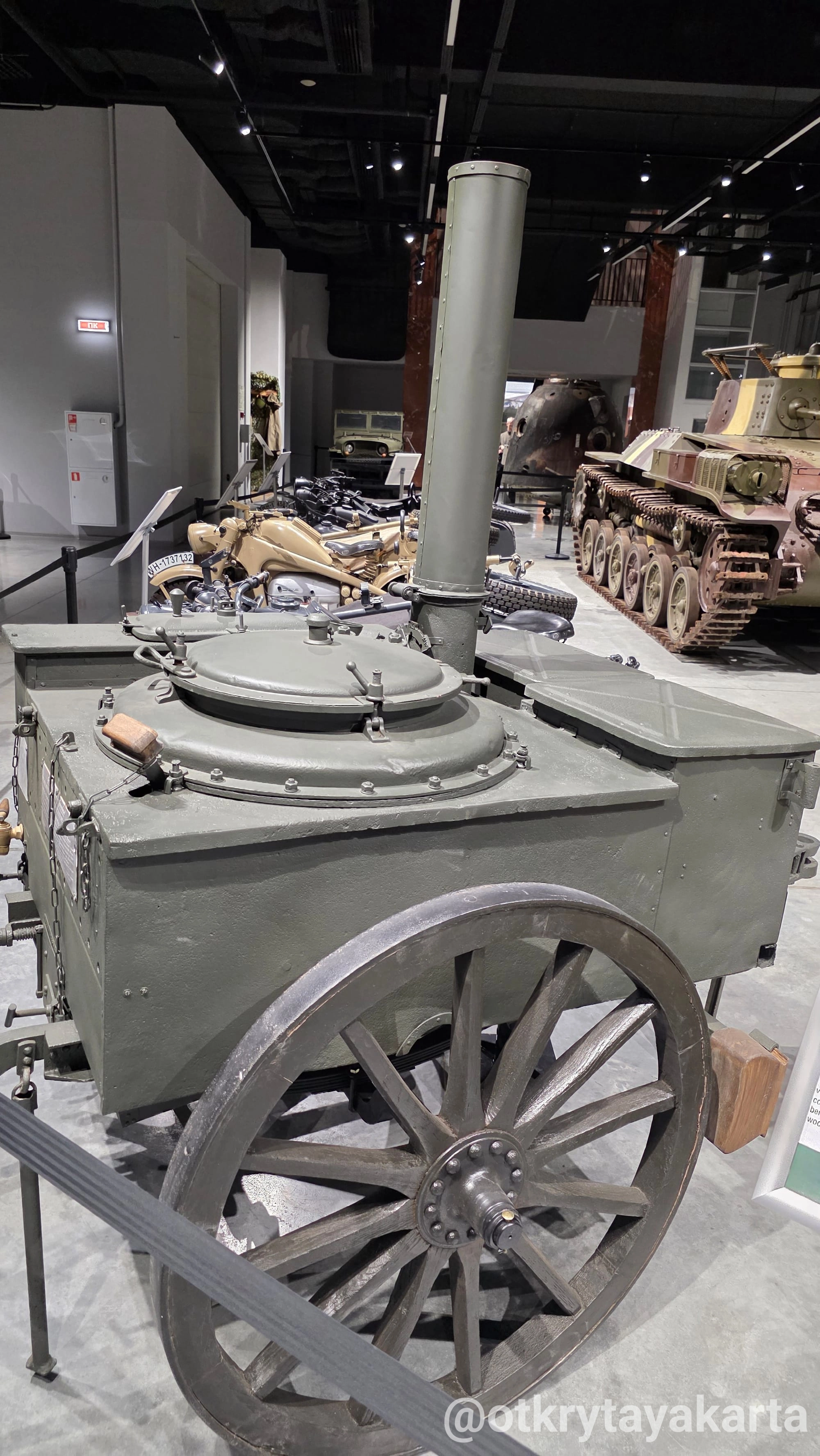 Экспозиция с военной техникой. Полевая кухня тоже имеется