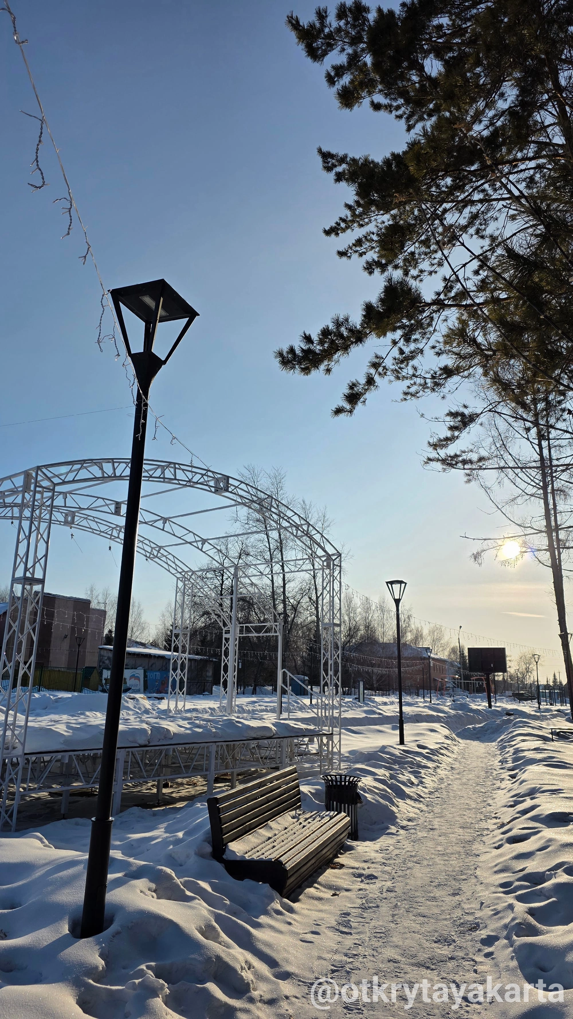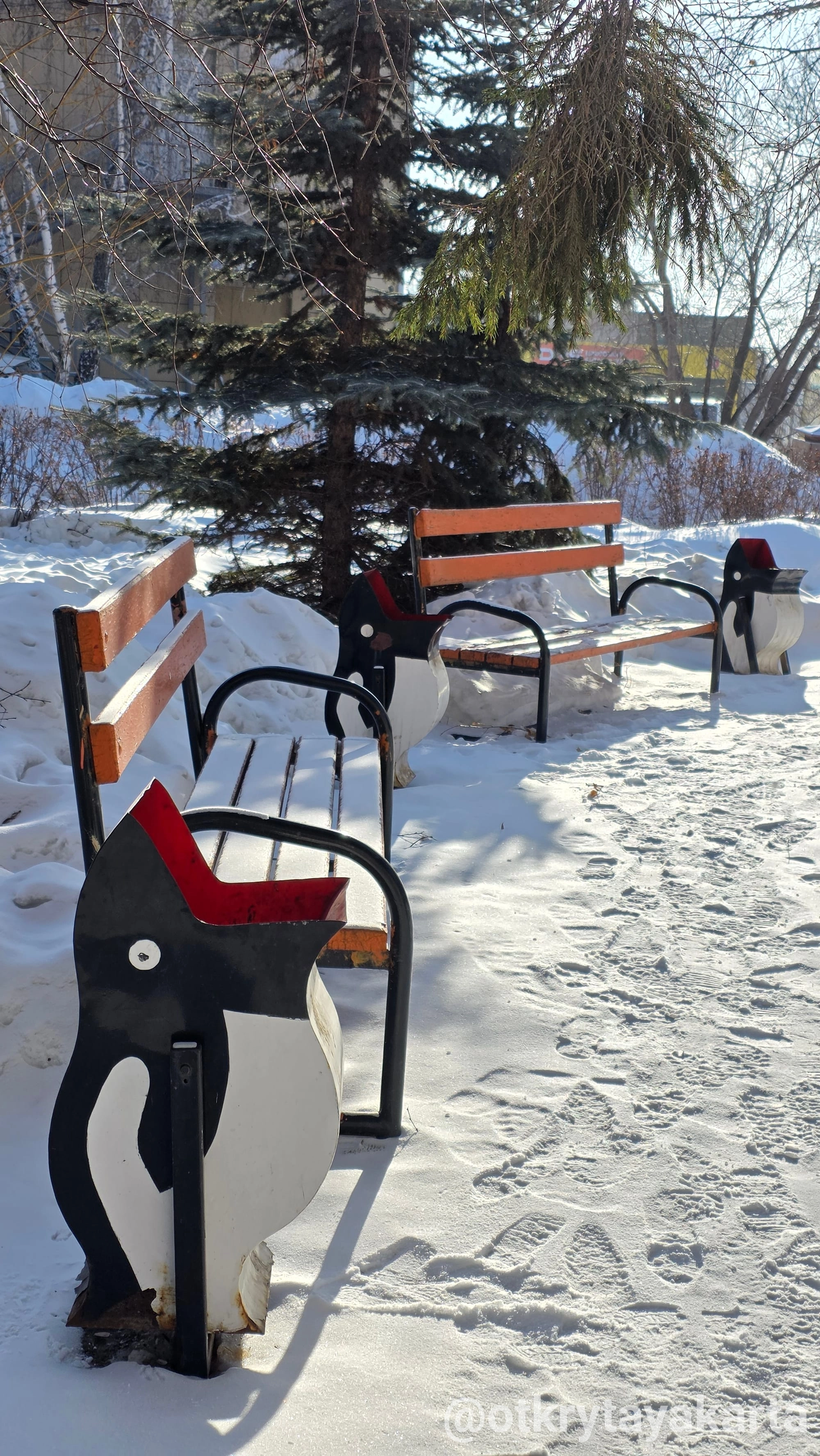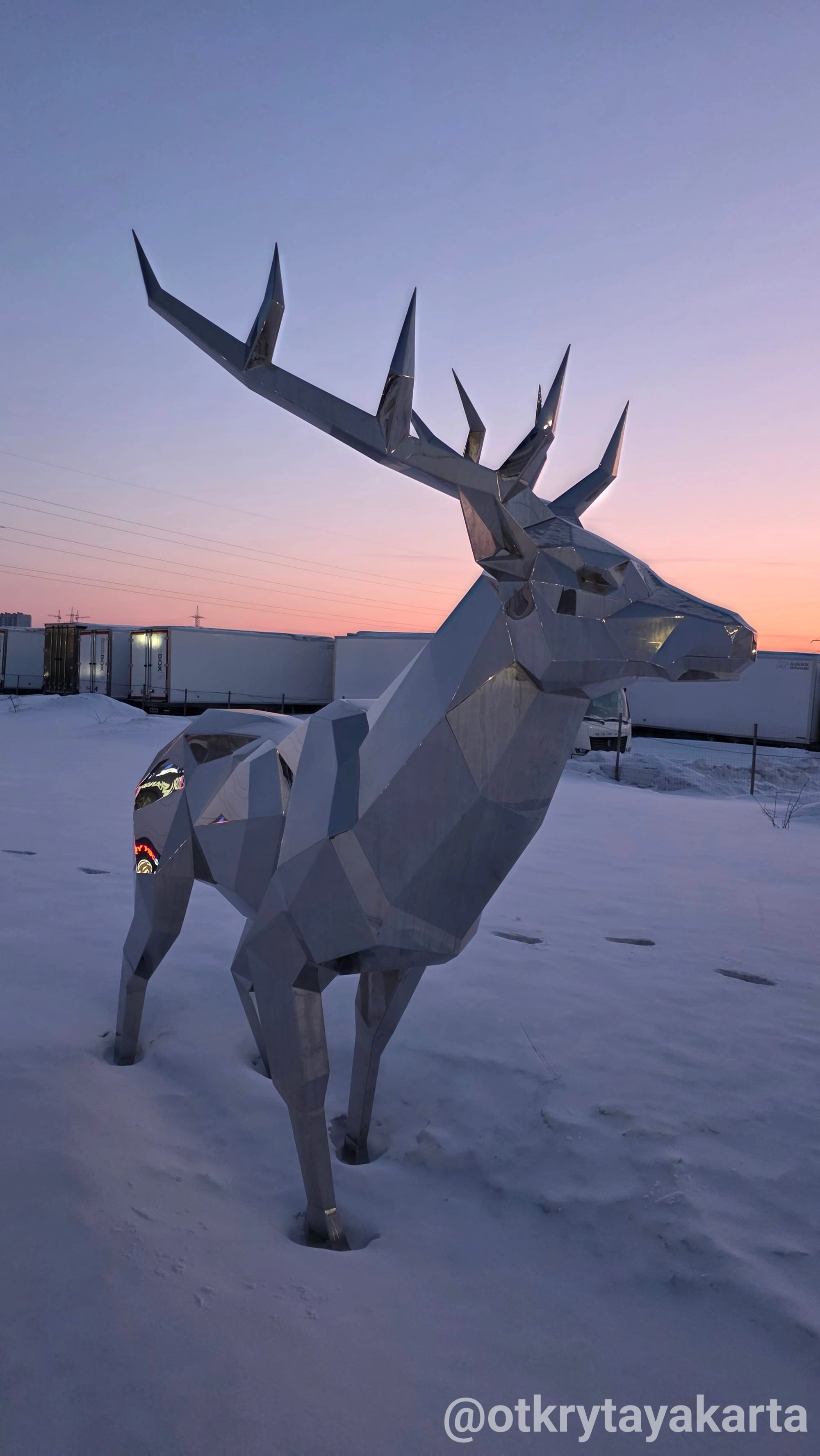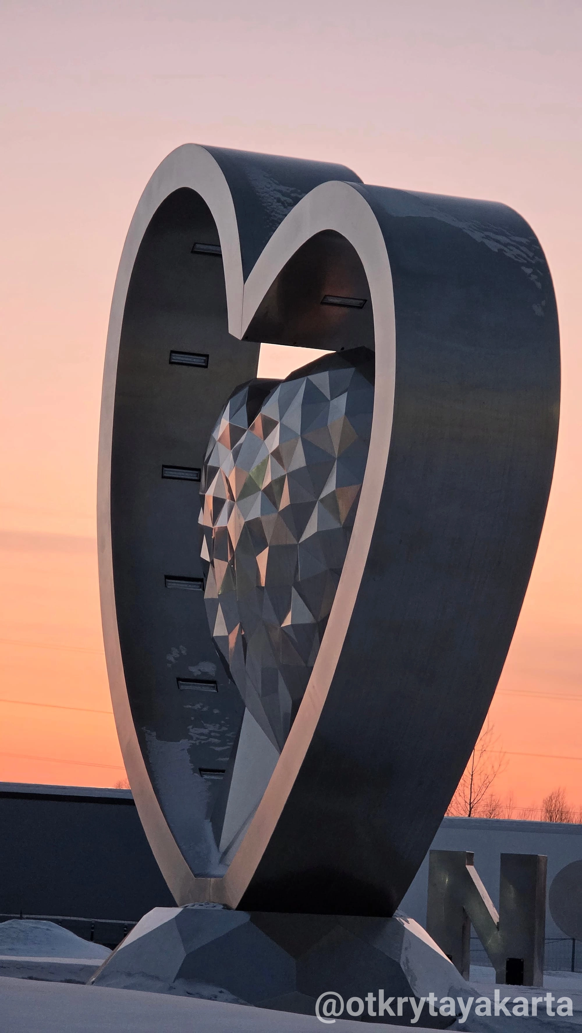 - Стелла «Сердце Сибири» – огромная хромированная конструкция в стиле полигональной архитектуры, окружённая фигурами медведей и оленей.