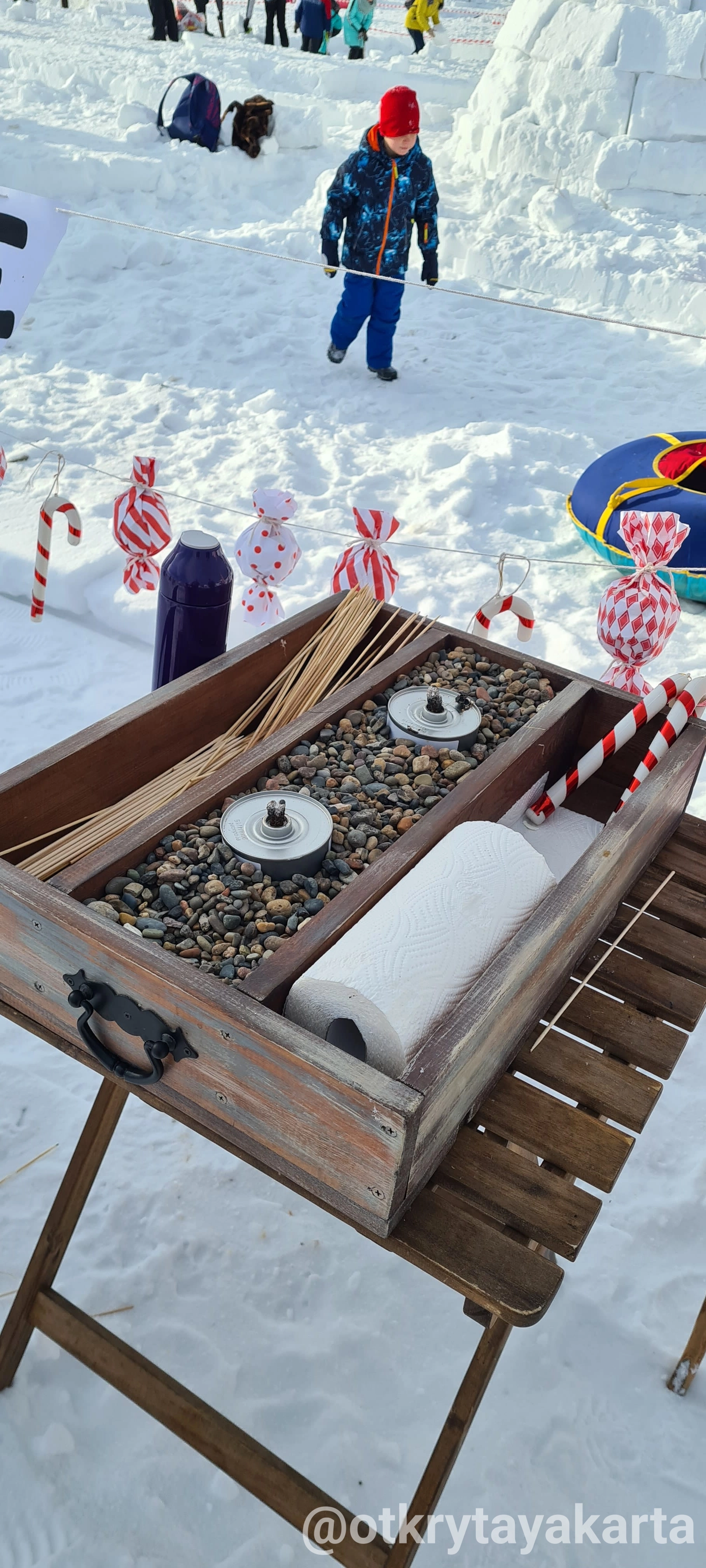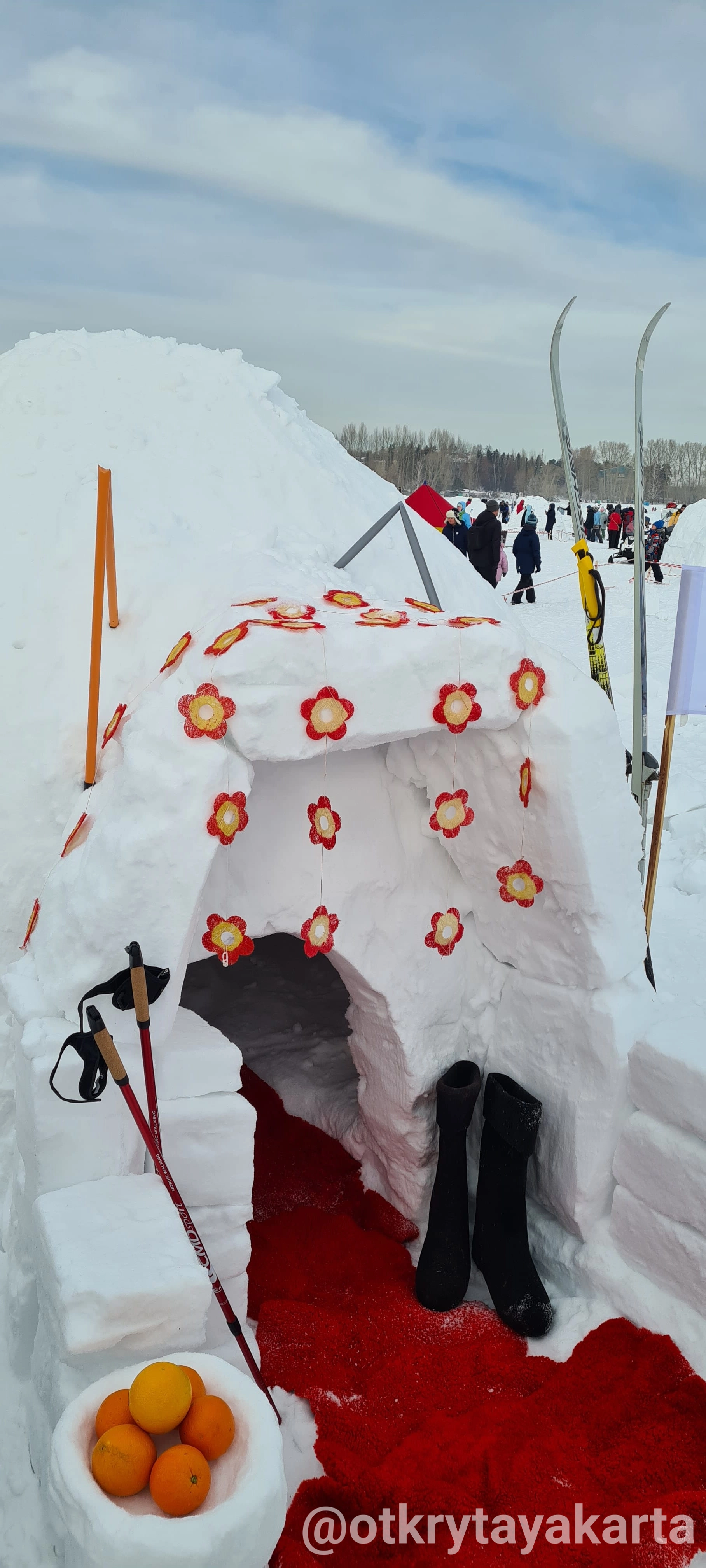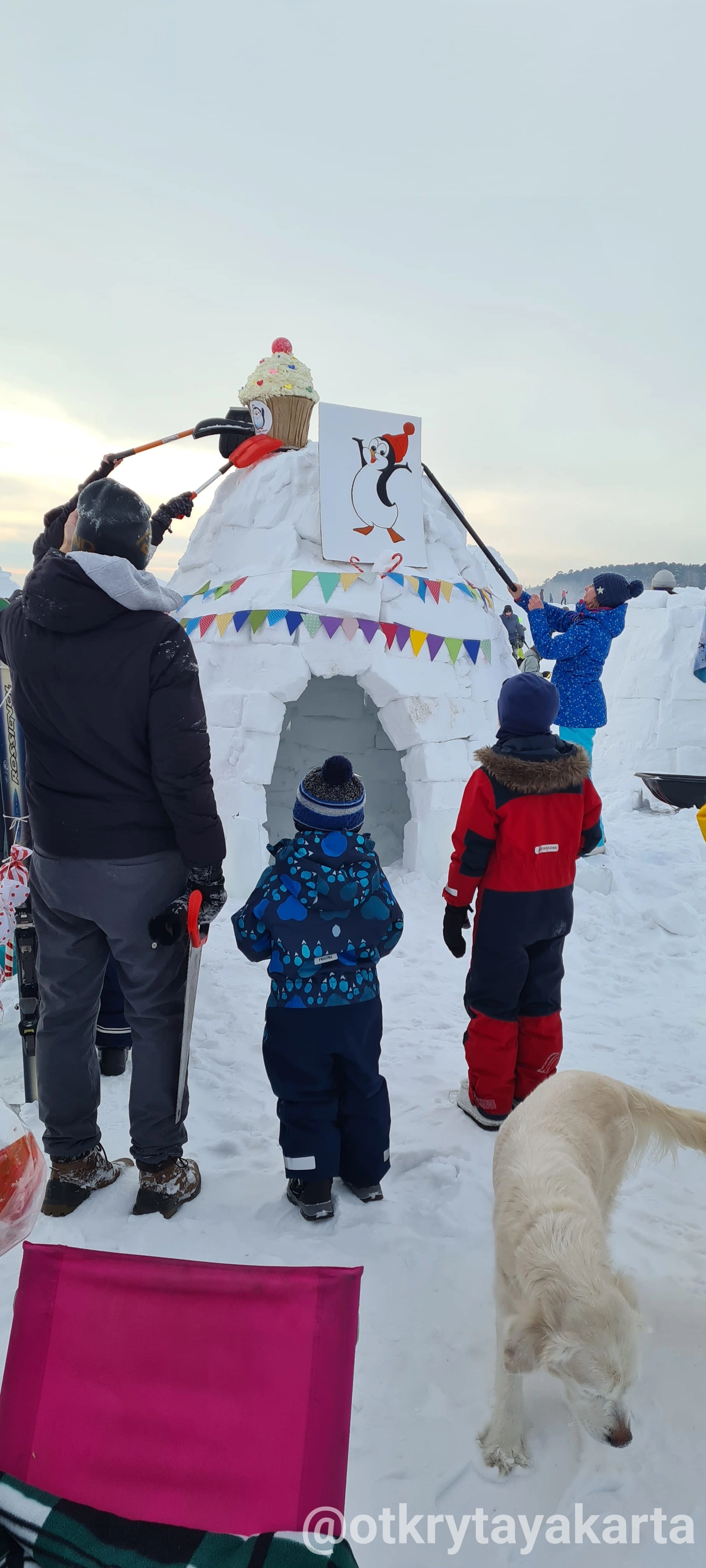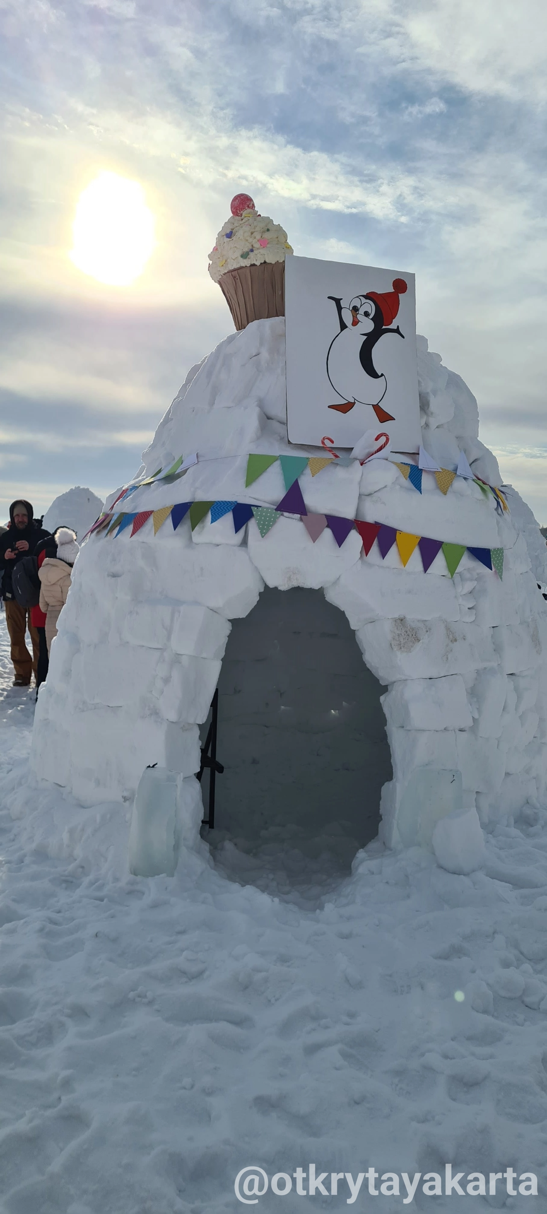 У наго иглу обвалилась крыша (зато небо видно, красиво) и никакое место мы не заняли. Зато у нас были самые красивые и вкусные соседи - кафе Пингви. Они прикольно строили своё иглу и все вокруг с замиранием следили, как ребята пирожное-купол устанавливают.