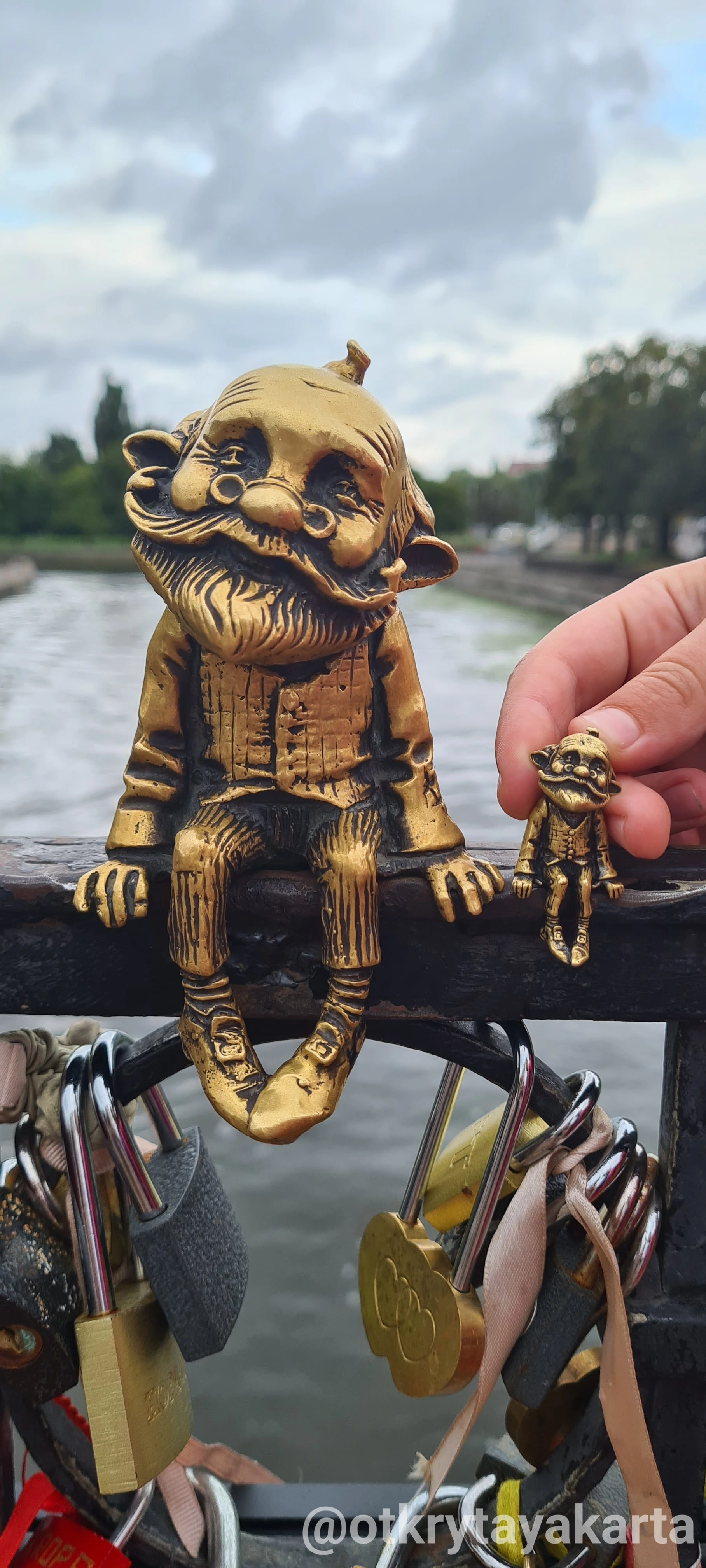 Самый известный аналог шишиг. Хомлинов придумала дизайнер и янтарщица Наталия Шевченко — сначала как персонажей для компьютерной игры. Но друг-скульптор слепил фигурку из пластилина, и идея переросла в установку бронзовых «домлинов» (от слов «дом» и «хомо»). По легенде, эти маленькие существа веками живут рядом с людьми, обрабатывают янтарь и черпают из него энергию. Сейчас хомлины «поселились» у Медового моста, в Амалиенау, у зоопарка и в других знаковых местах Калининграда. Они стали полноценным брендом города.