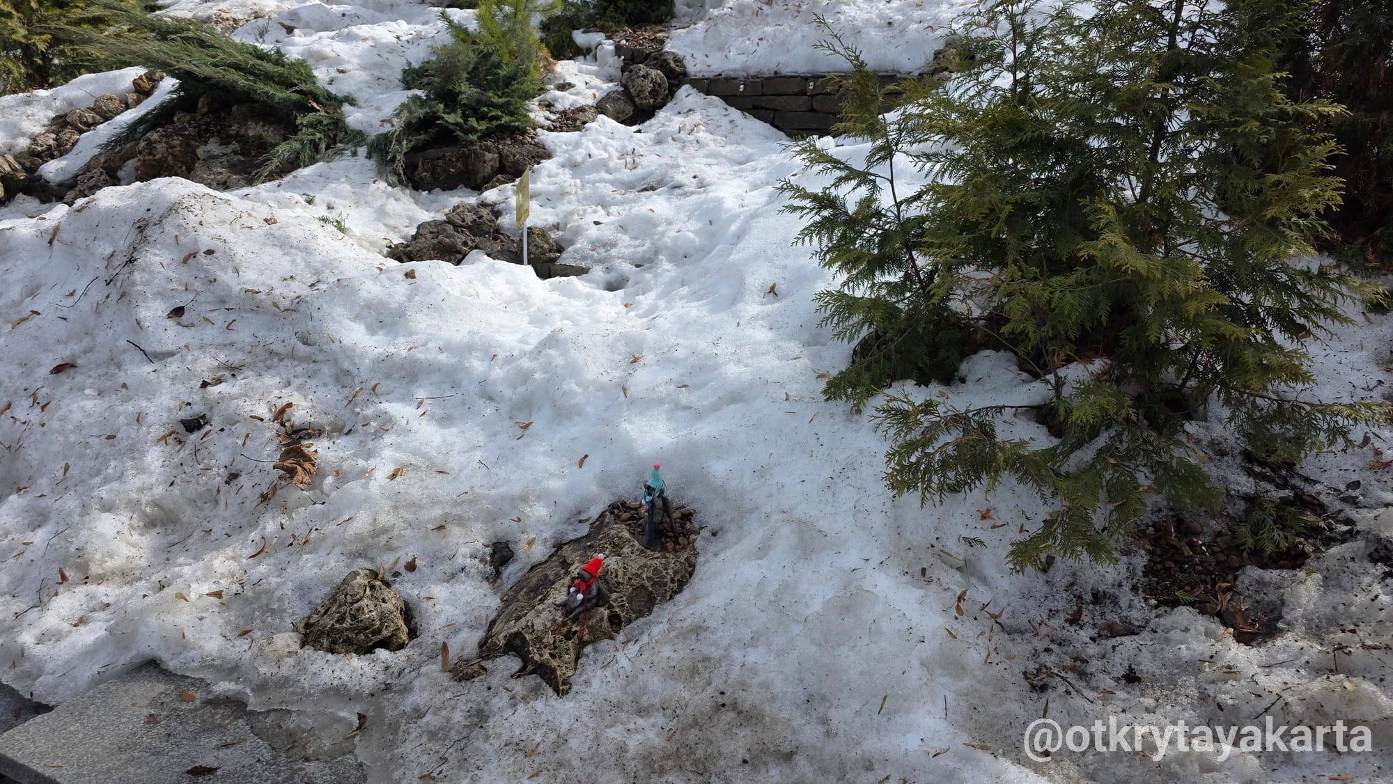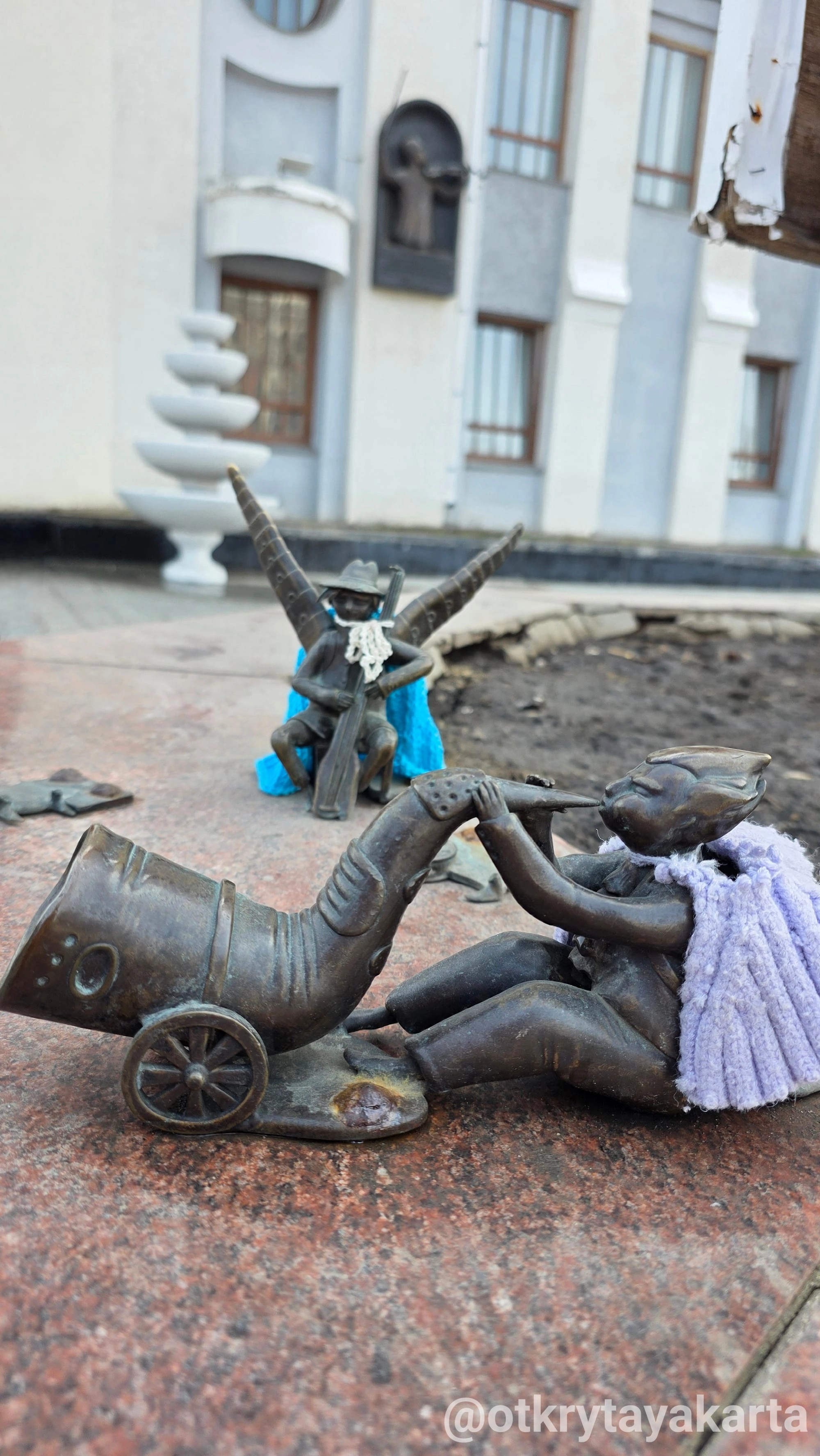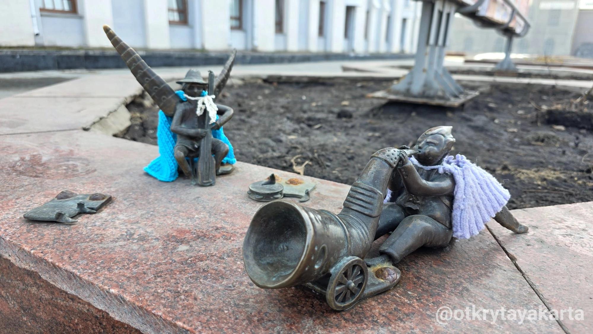 - 27 марта 2025 года. Снова площадь Славы. Одна фигурка сломана и украдена, вторая — повреждена.