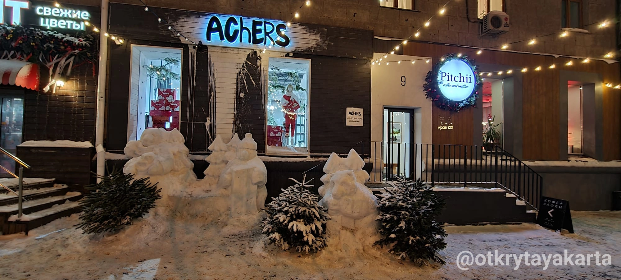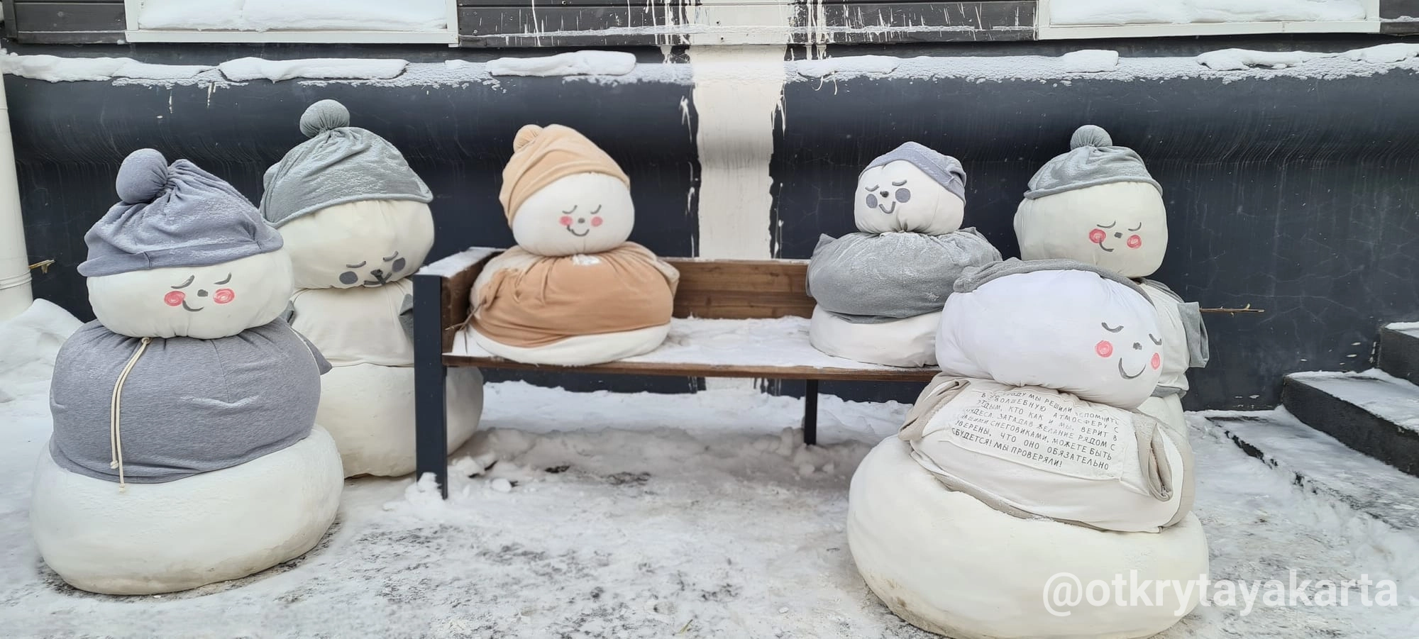 Тёплый hand-made от Achers: вначале не был таким тёплым, но затем появились гигантские вязаные снеговики, снегири и прочие персонажи.