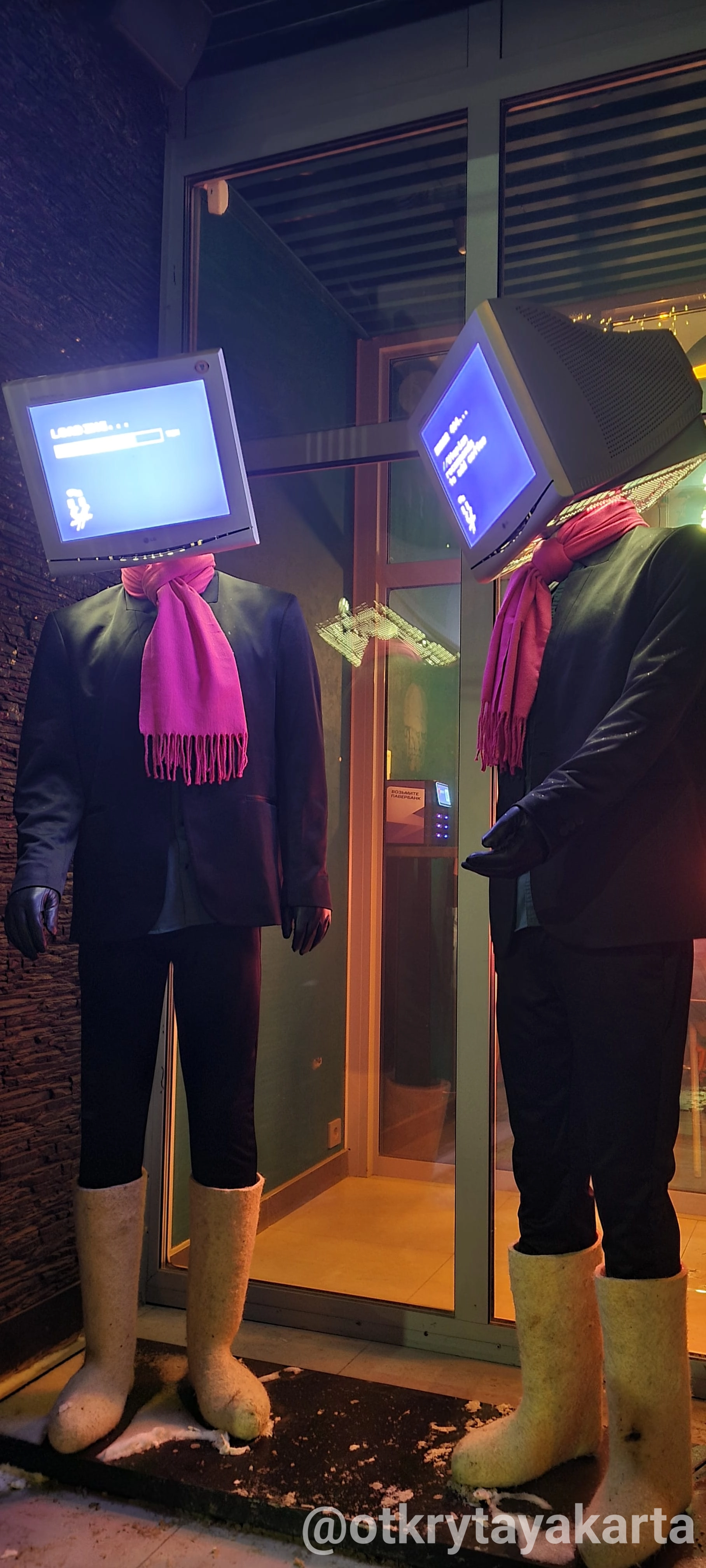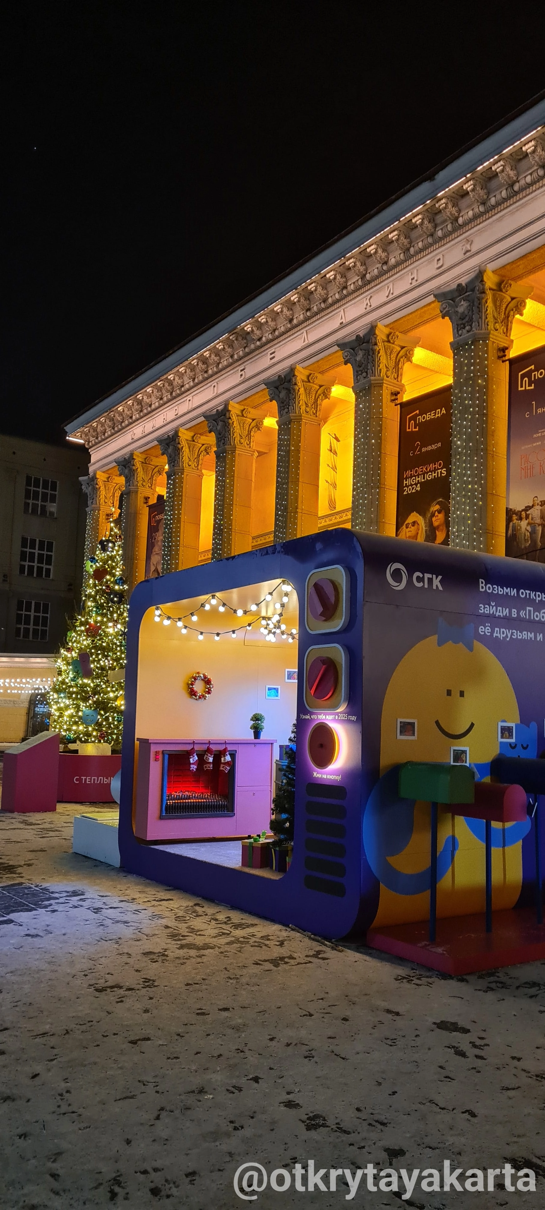 К 2025 году готовились ещё лучше и интереснее. И появилась мода на гигантские косички. Хочу заметить, что сушек и матрёшек не было видно ни у кого. А СГК уже думал о людях не только как о зрителях, но и как о гостях, устраивая фотозоны с подогревом и бесплатные почтовые поздравления. В домике-телевизоре даже диван стоял и ковер на стене висел.