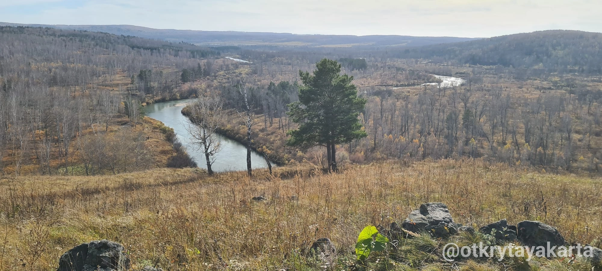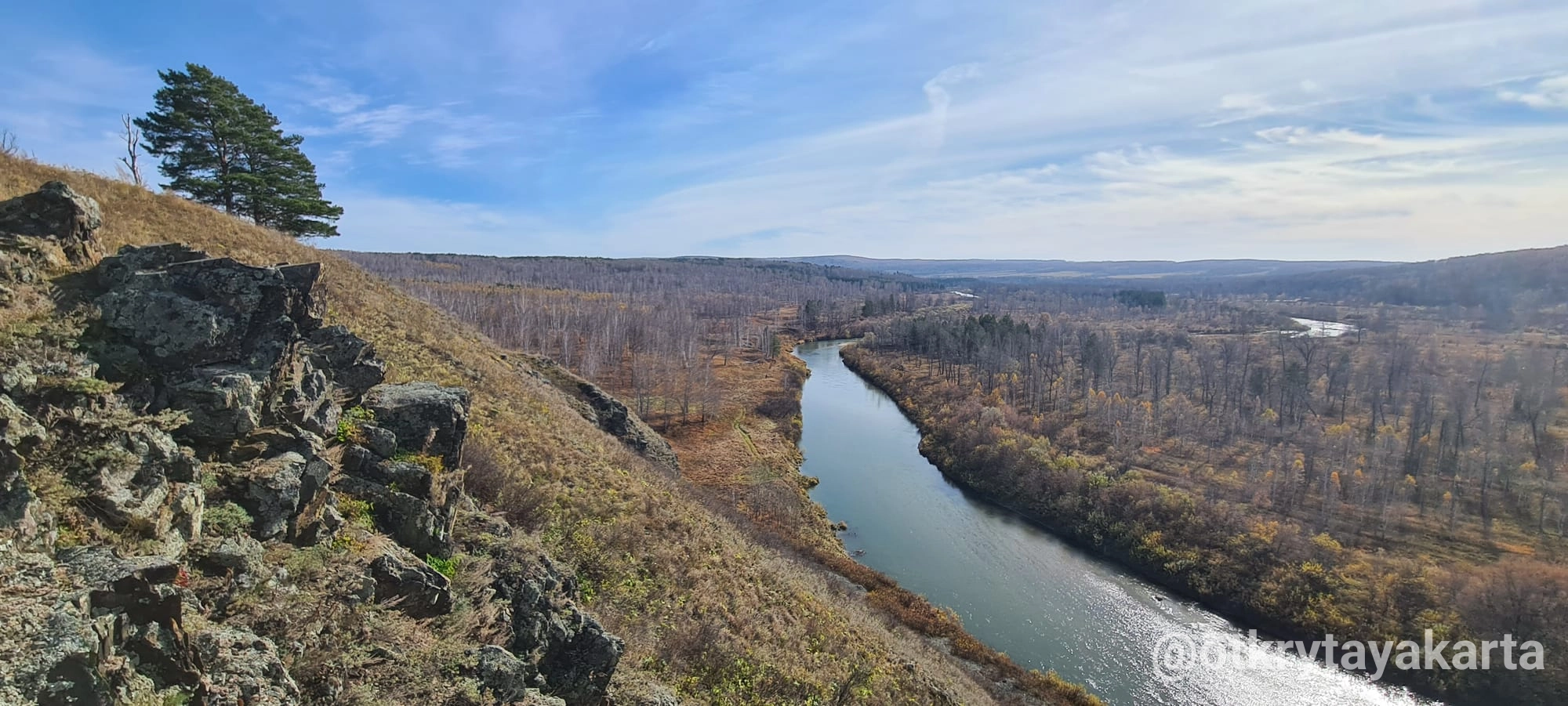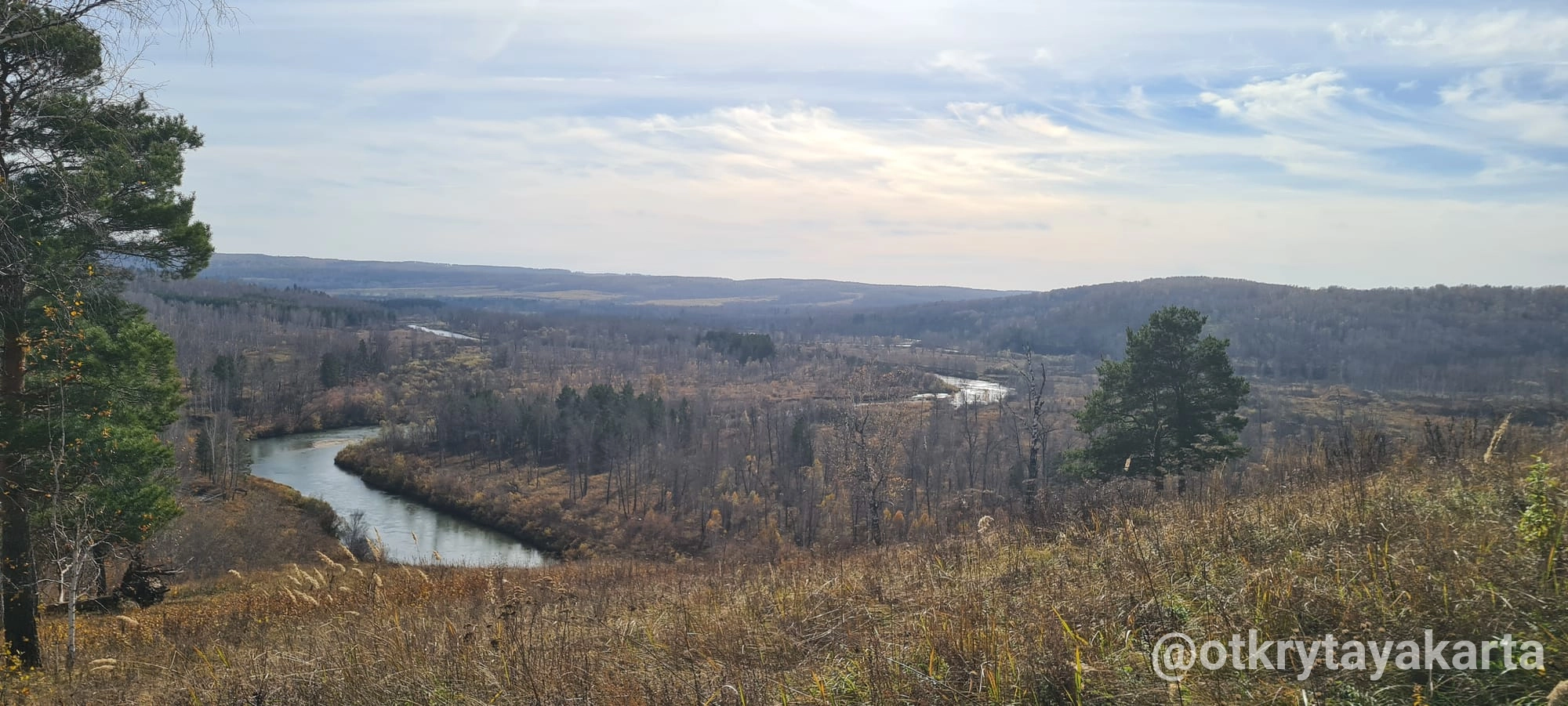 Лучшая точка для фото — единственный камень с плоским верхом, отполированный до блеска тысячами туристов. С него получаются самые эффектные кадры: вы словно стоите на краю земли, а внизу петляет Бердь и уходит вдаль сибирская тайга.