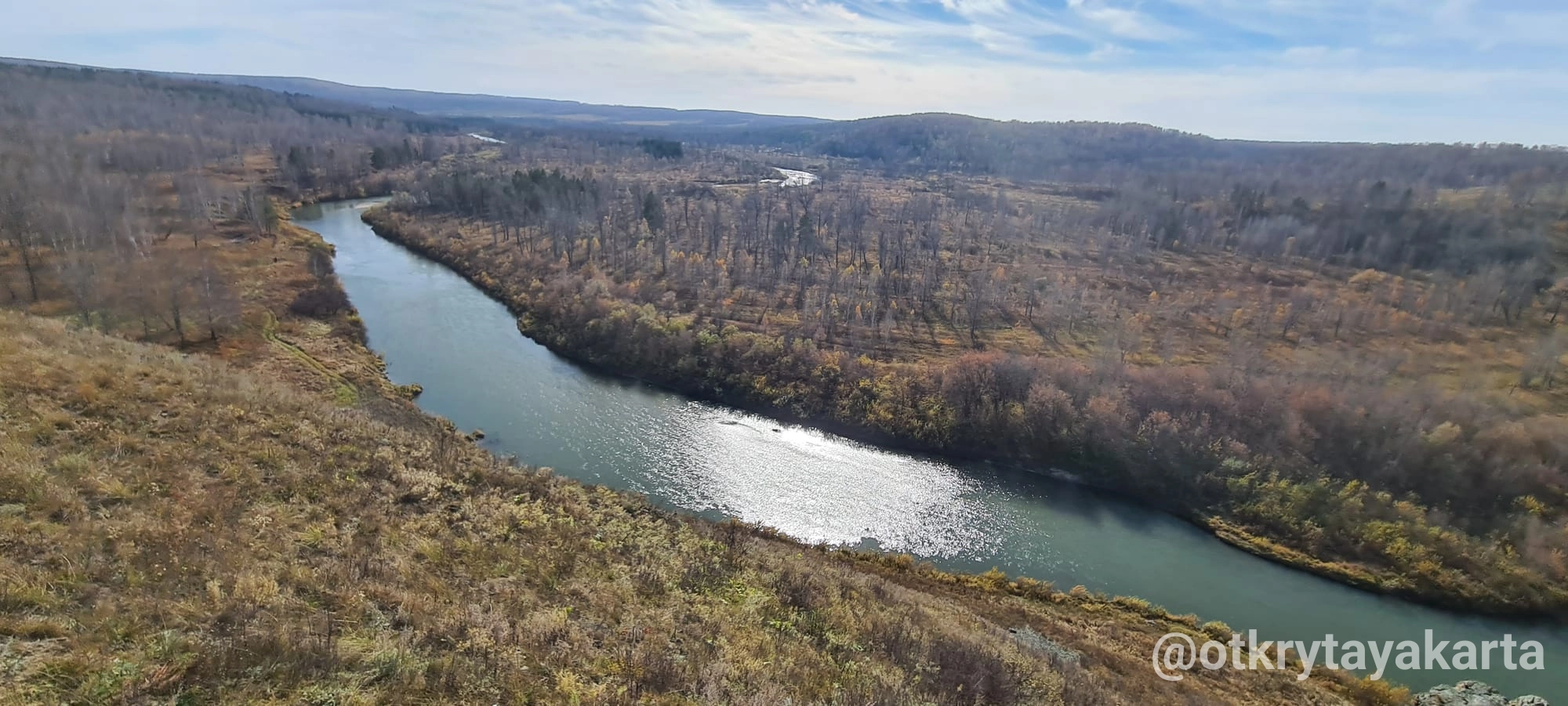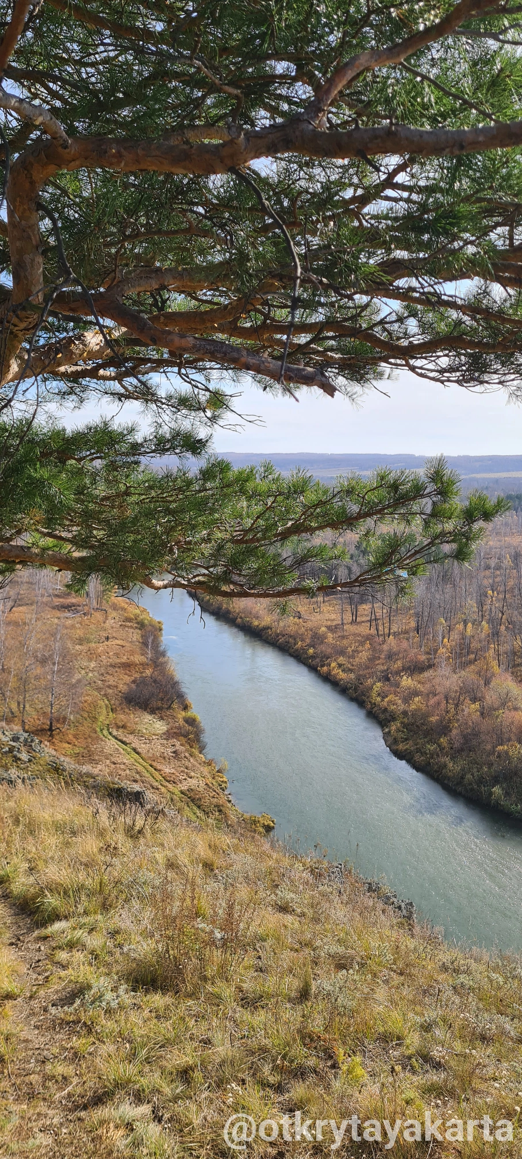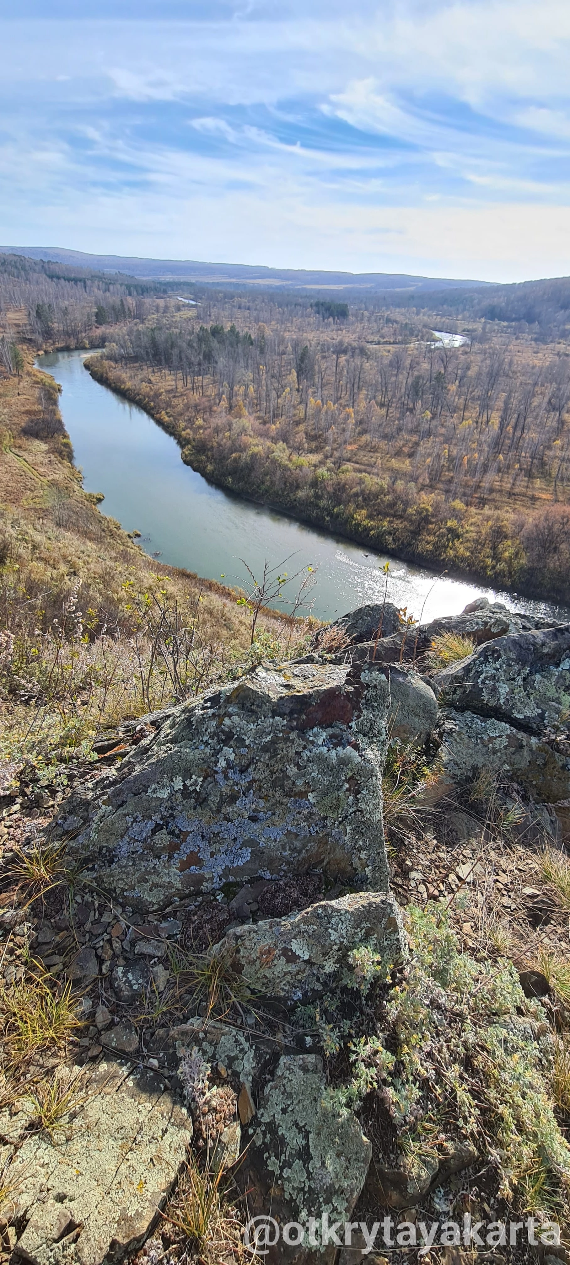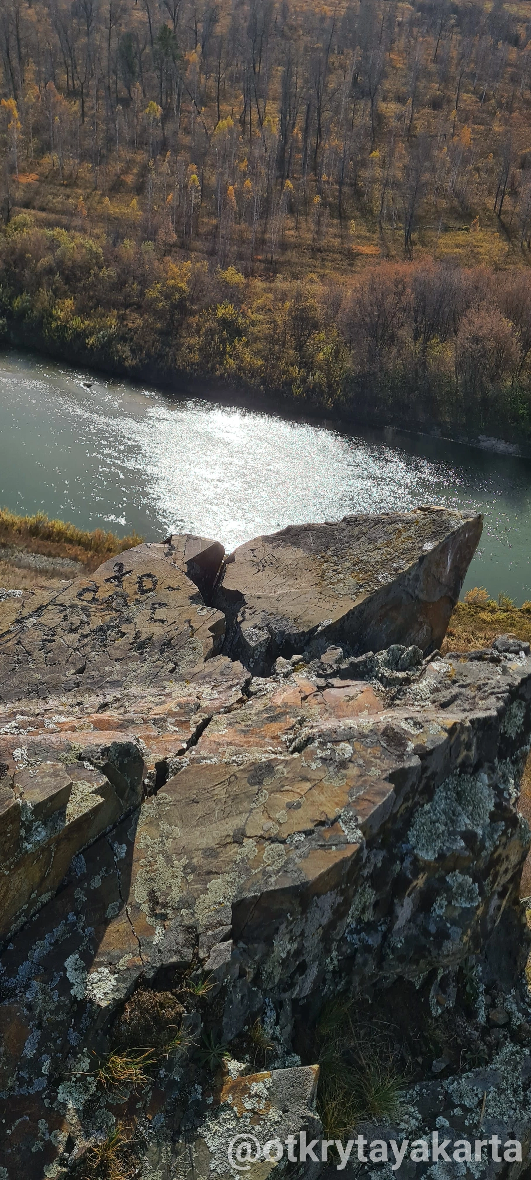 Лучшая точка для фото — единственный камень с плоским верхом, отполированный до блеска тысячами туристов. С него получаются самые эффектные кадры: вы словно стоите на краю земли, а внизу петляет Бердь и уходит вдаль сибирская тайга.